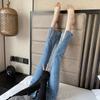 Pantalones capri ligeramente acampanados con abertura para mujer, nuevos de primavera y otoño, cintura alta adelgazantes, versátiles, para cuerpo pequeño, ajustados, pantalones casuales negros
