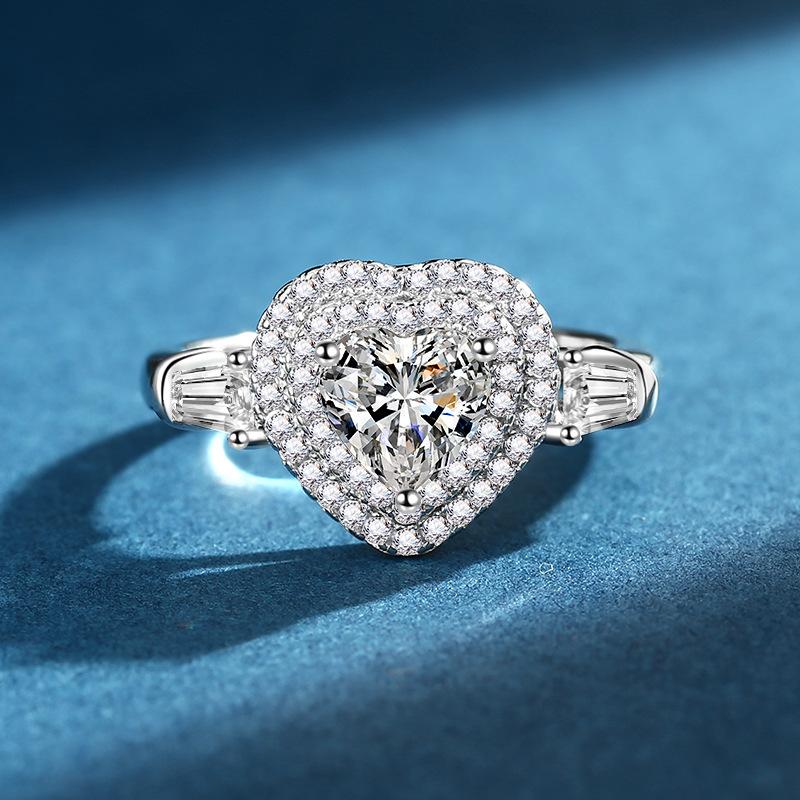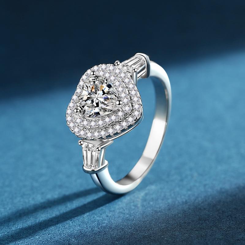 Anillo de plata de ley 925 para mujer, con forma de corazón de moissanita, chapado en oro PT950, para boda, venta al por mayor.