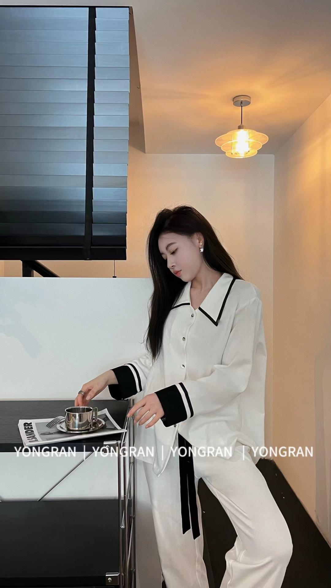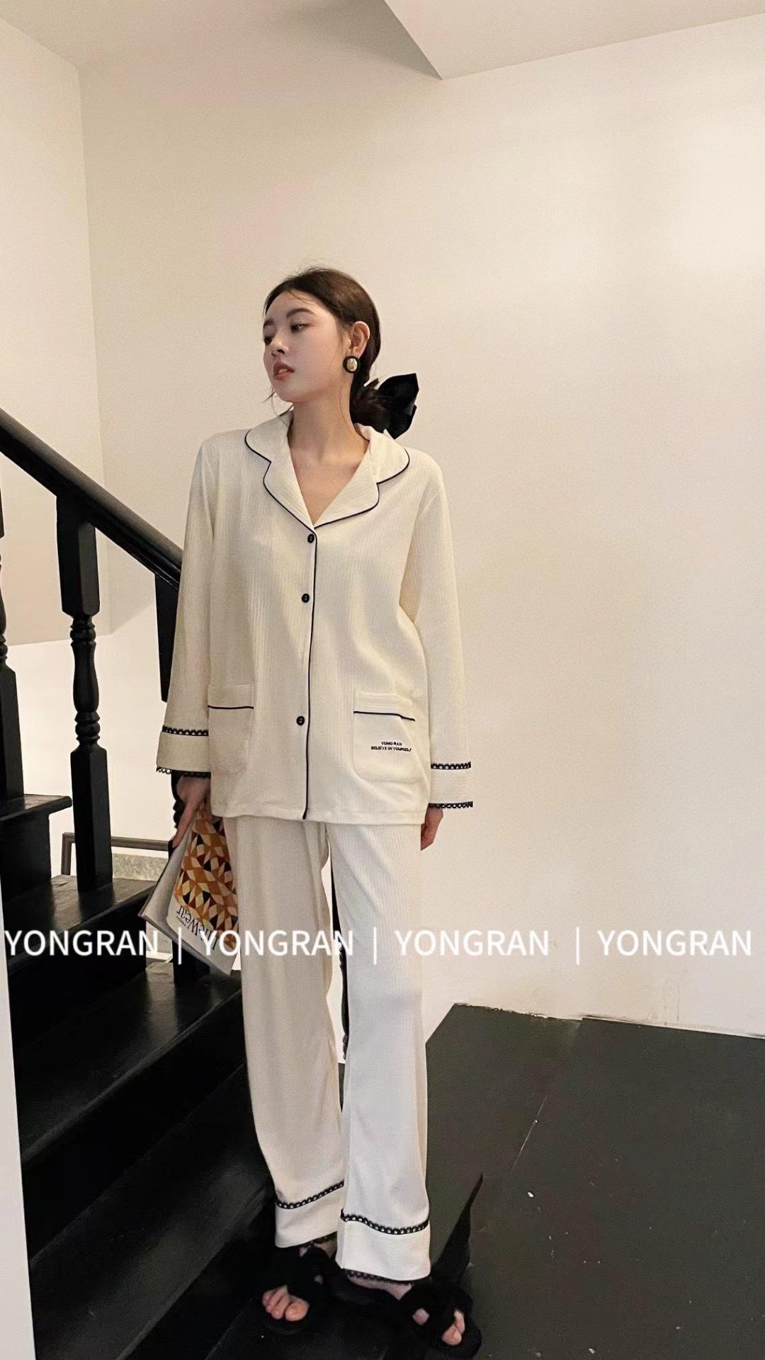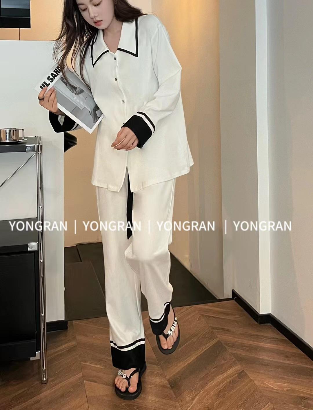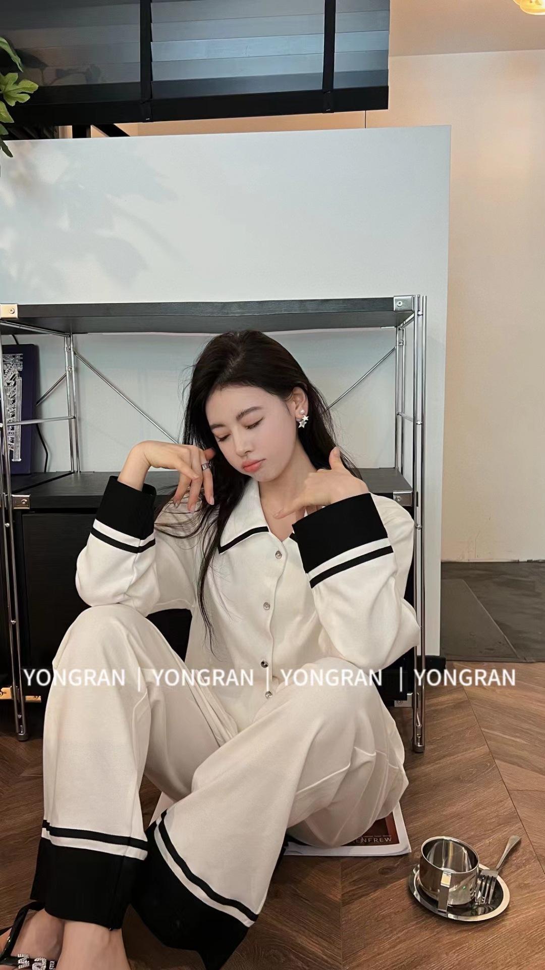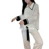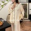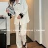 Pantalones estilo Chanel de otoño, nuevos, color a juego, solapa, pijama para casa, cárdigan informal, sencillo, color sólido, ropa de abrigo para el hogar