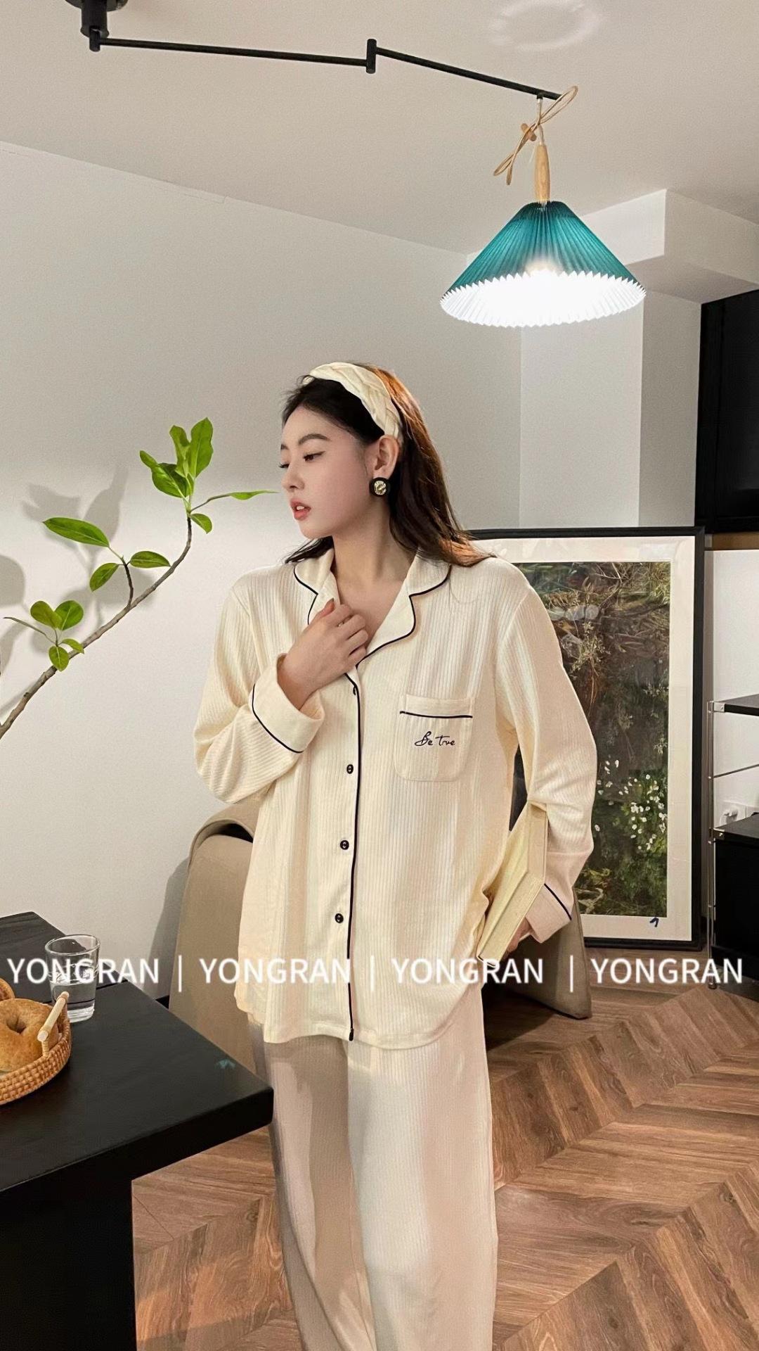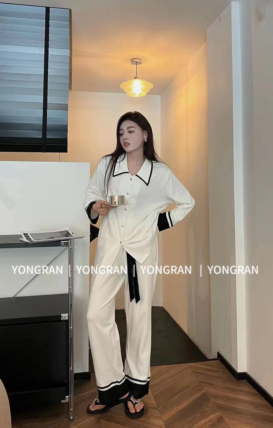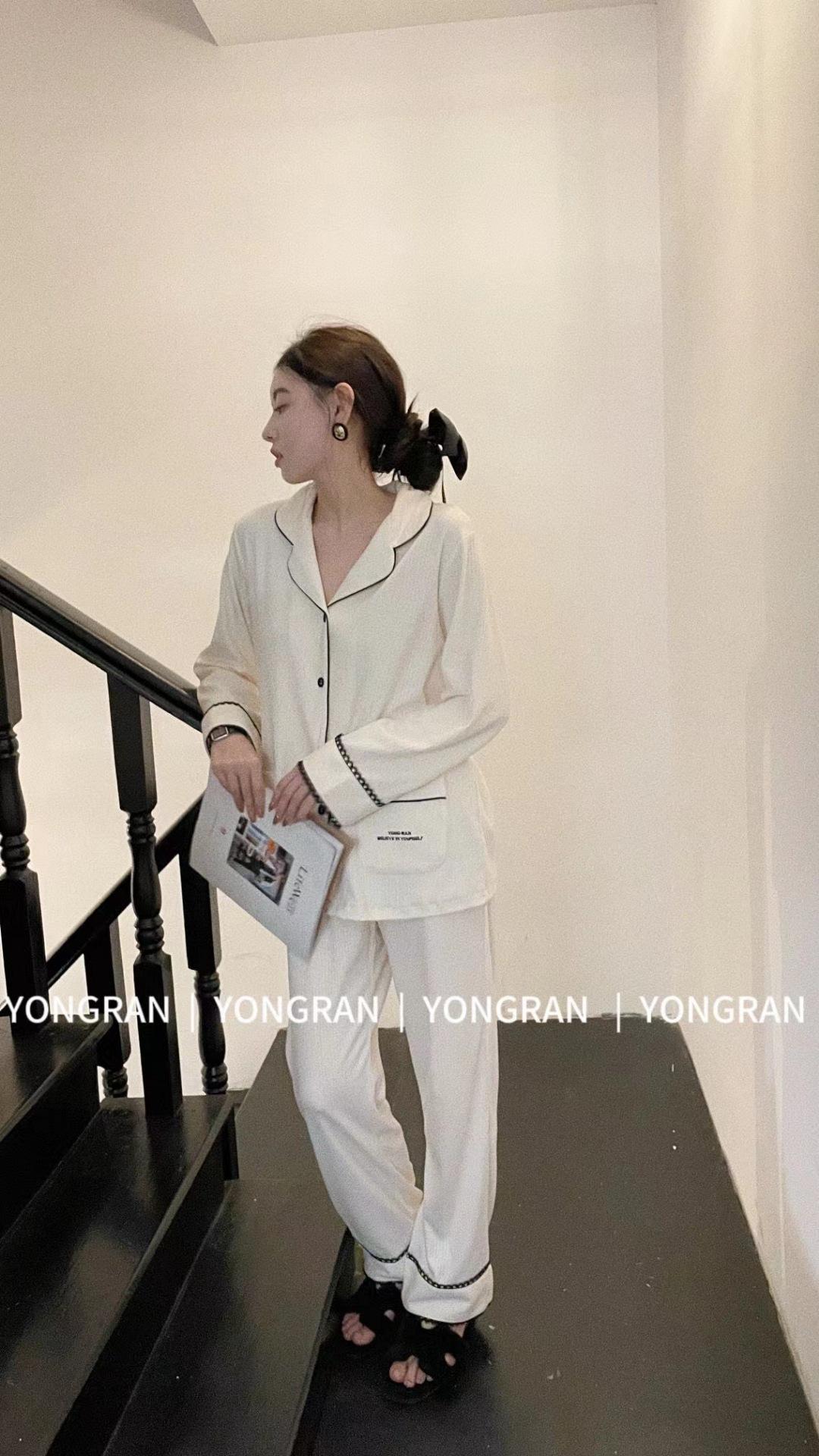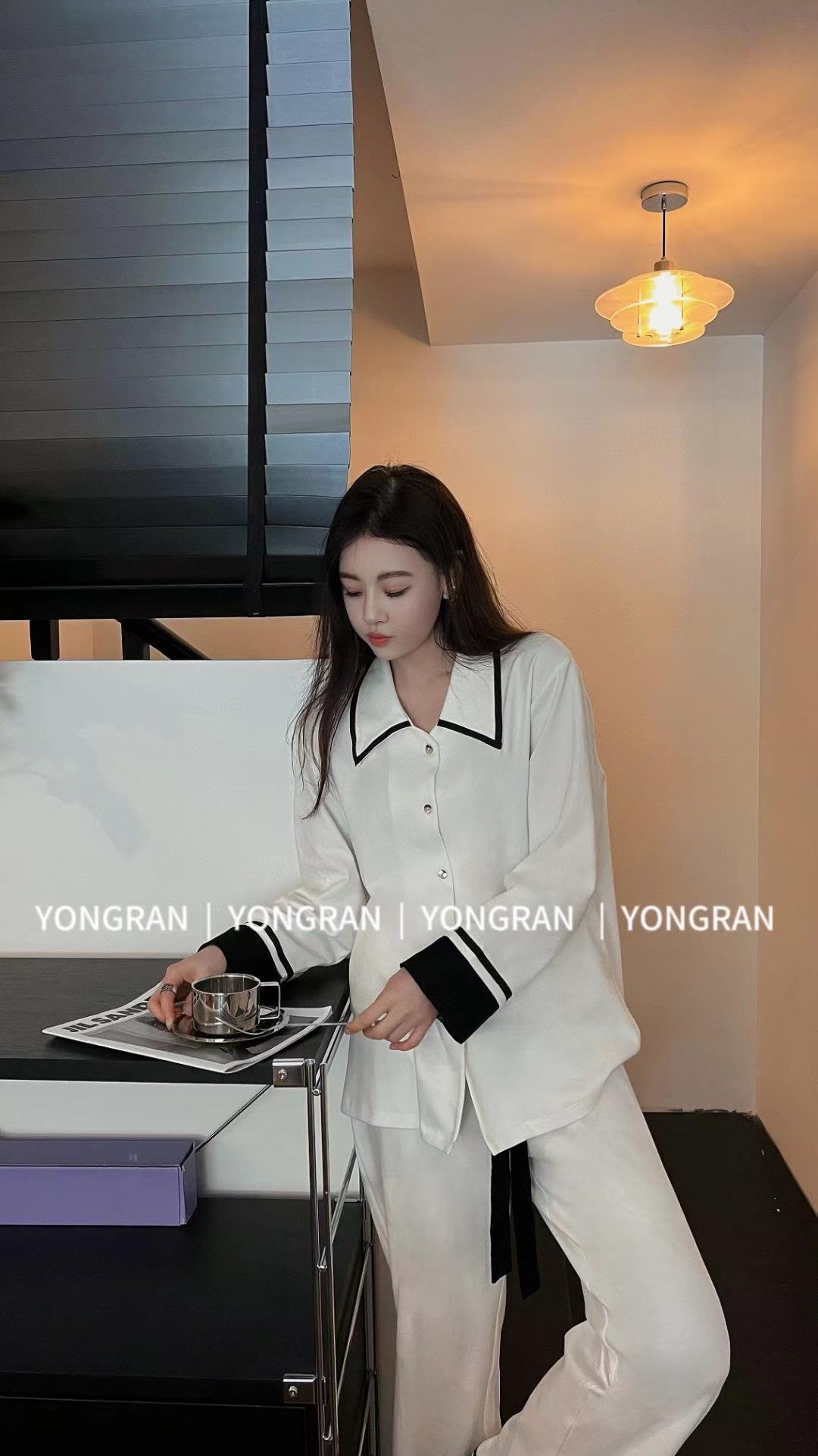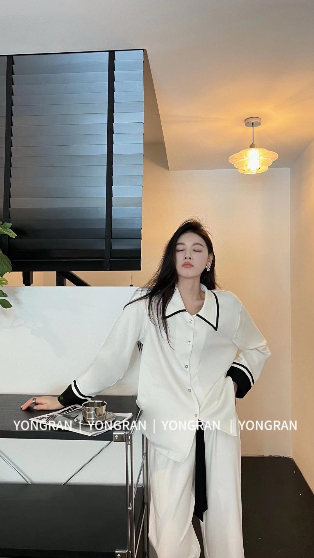 Pantalones estilo Chanel de otoño, nuevos, color a juego, solapa, pijama para casa, cárdigan informal, sencillo, color sólido, ropa de abrigo para el hogar