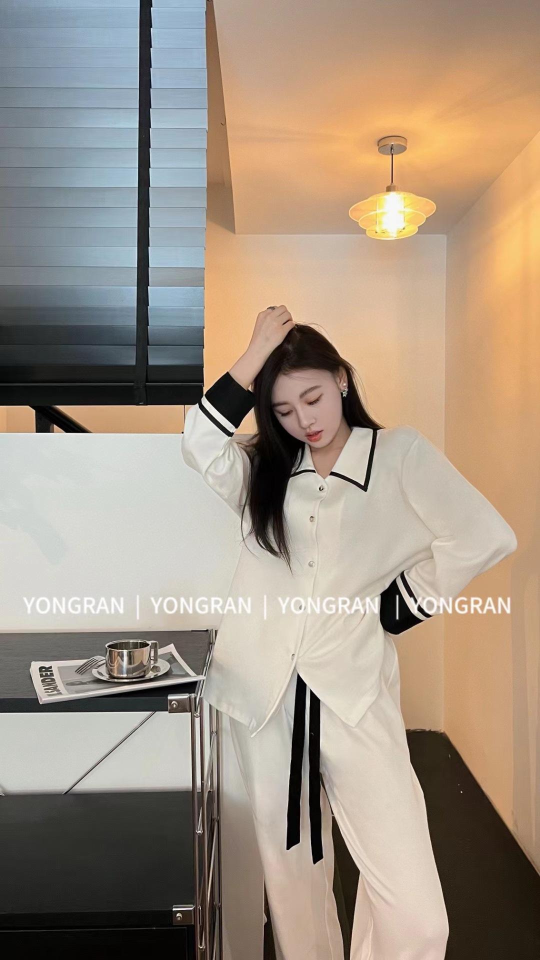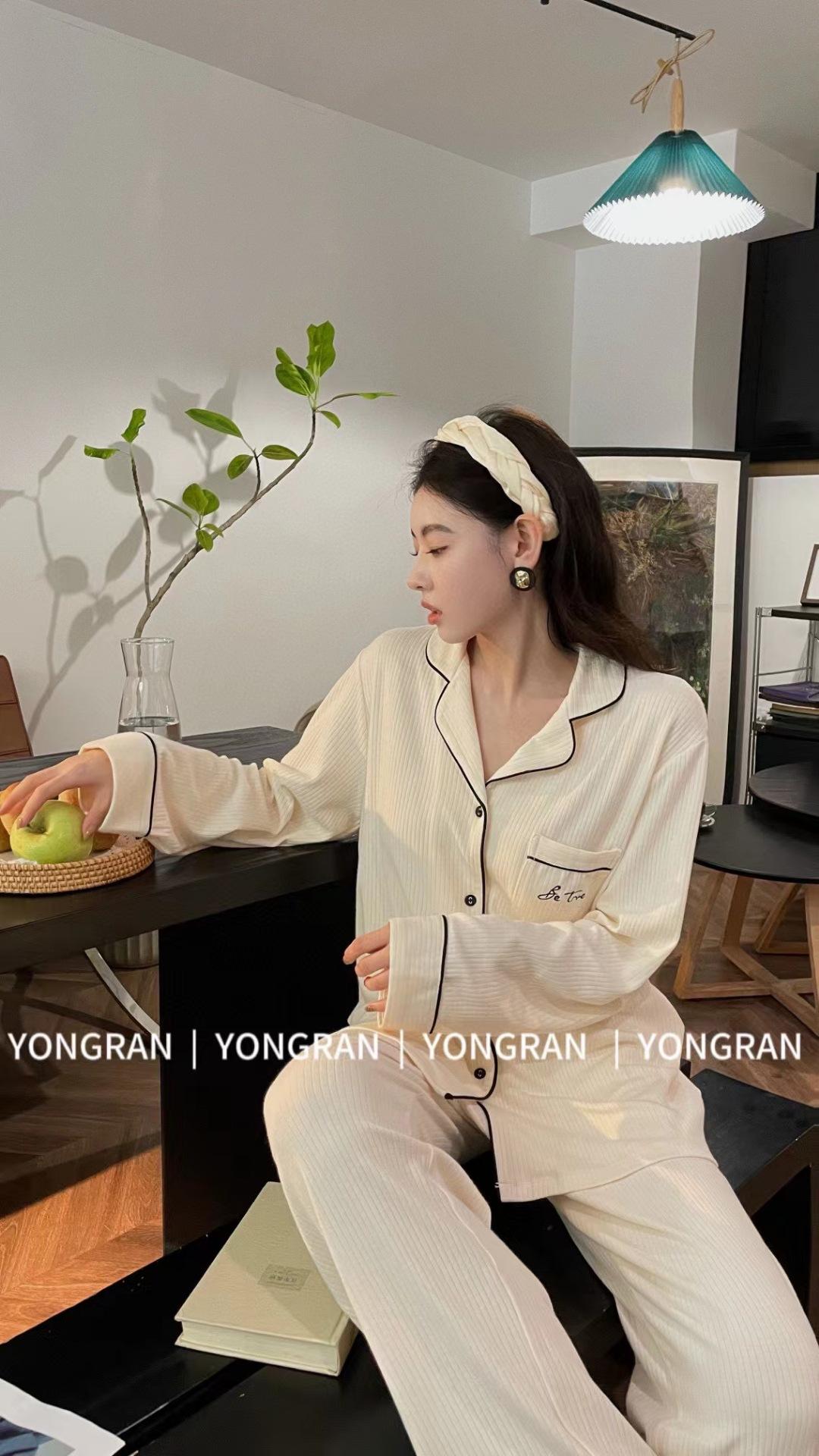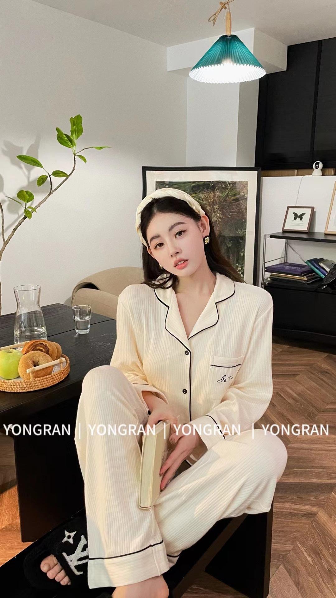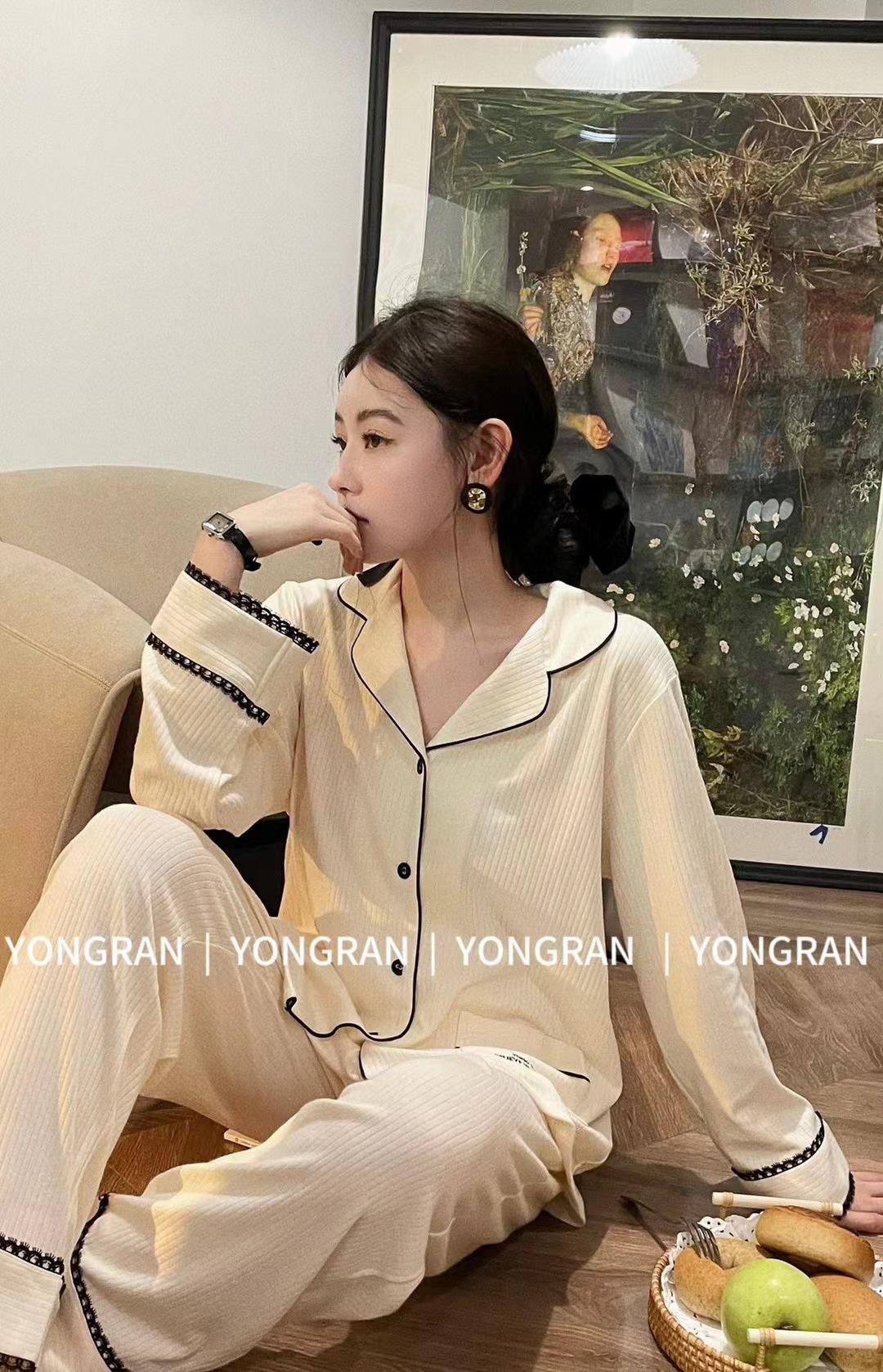 Pantalones estilo Chanel de otoño, nuevos, color a juego, solapa, pijama para casa, cárdigan informal, sencillo, color sólido, ropa de abrigo para el hogar
