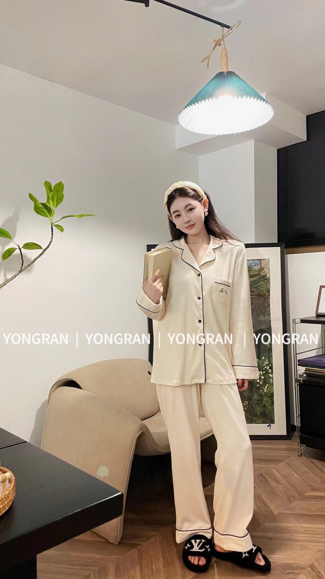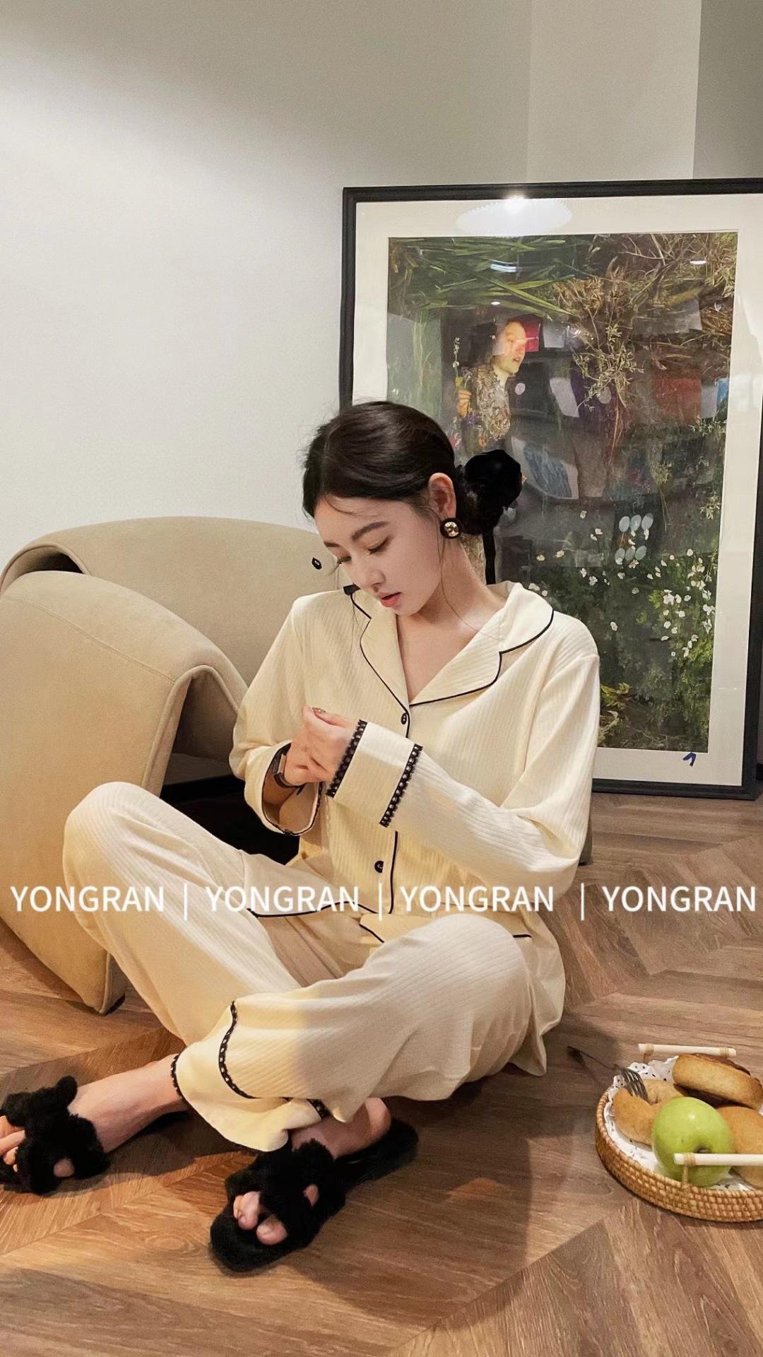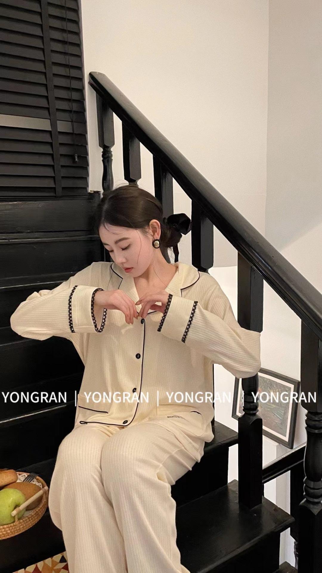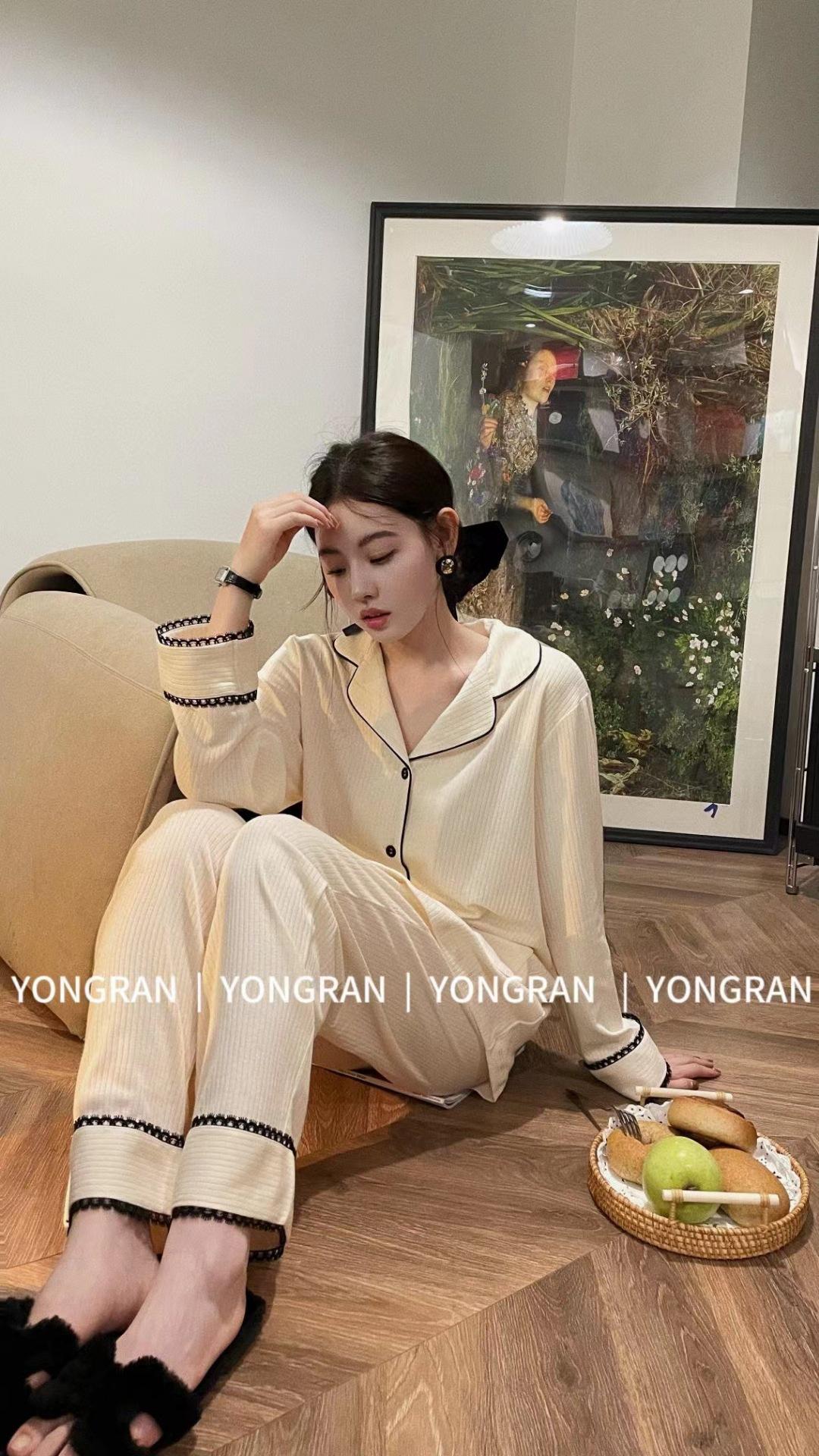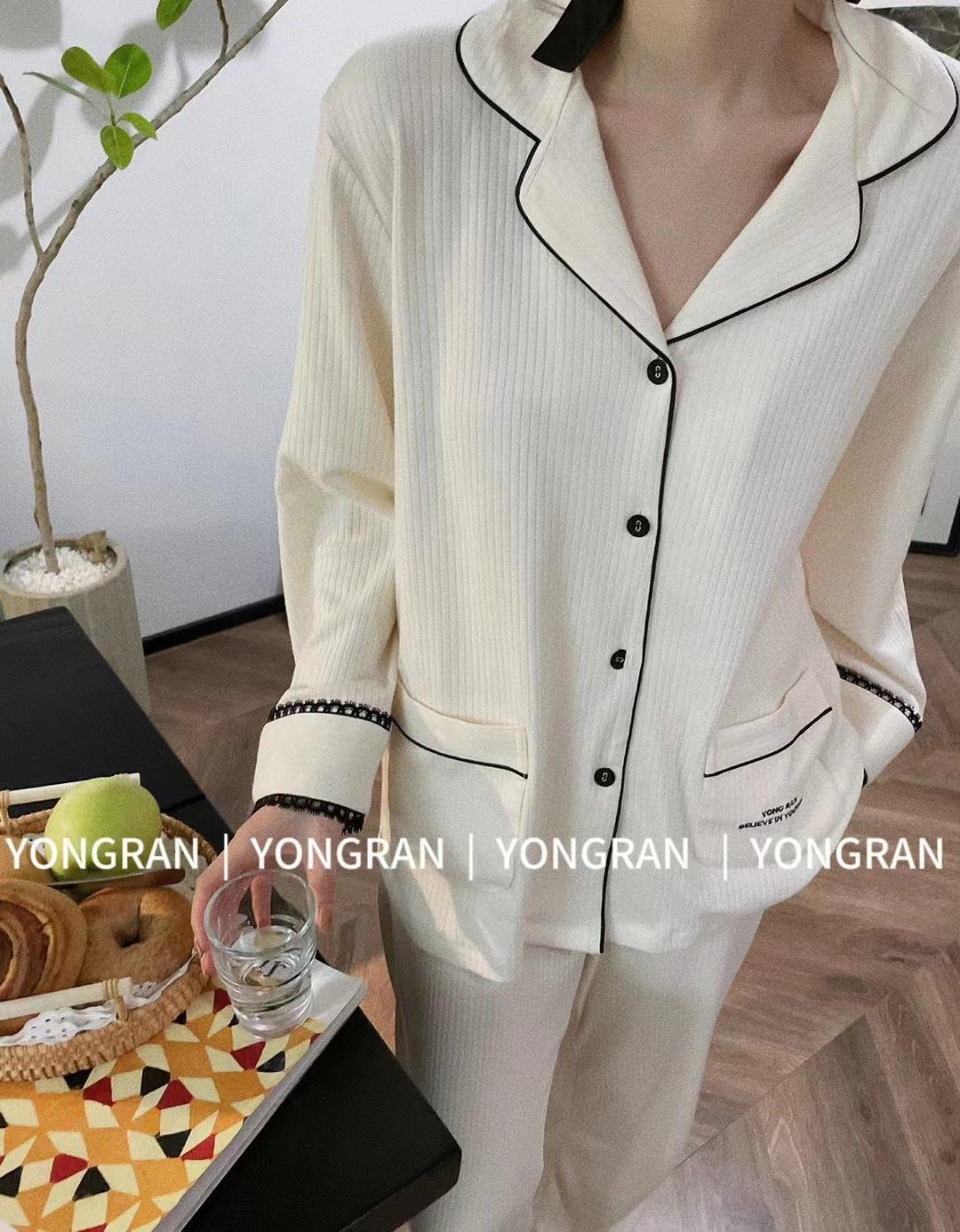 Pantalones estilo Chanel de otoño, nuevos, color a juego, solapa, pijama para casa, cárdigan informal, sencillo, color sólido, ropa de abrigo para el hogar