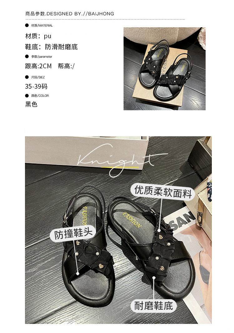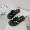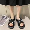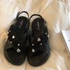 Verano Nuevas Sandalias Planas Cómodas Estilo Coreano Moda Zapatos de Mujer Zapatos de Playa Encaje Accesorios Metálicos Romanas Secado Rápido