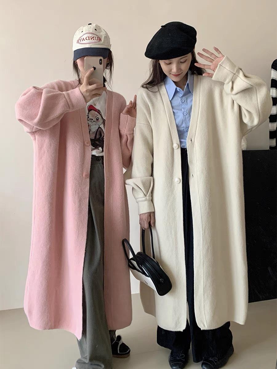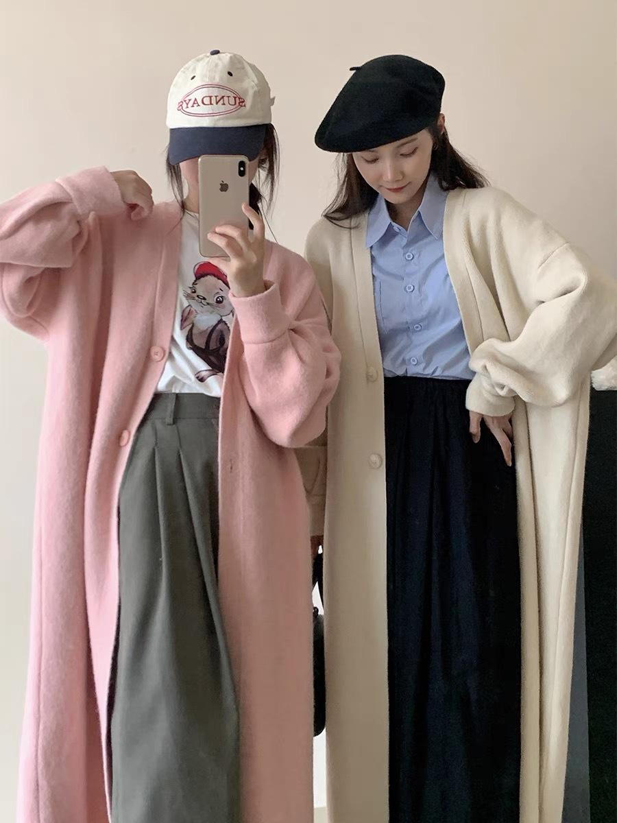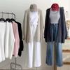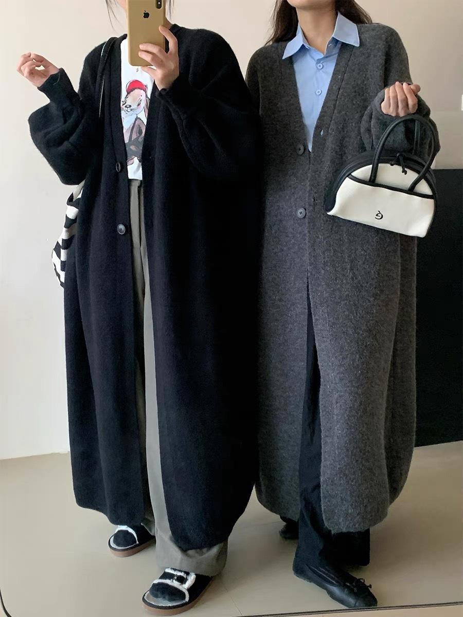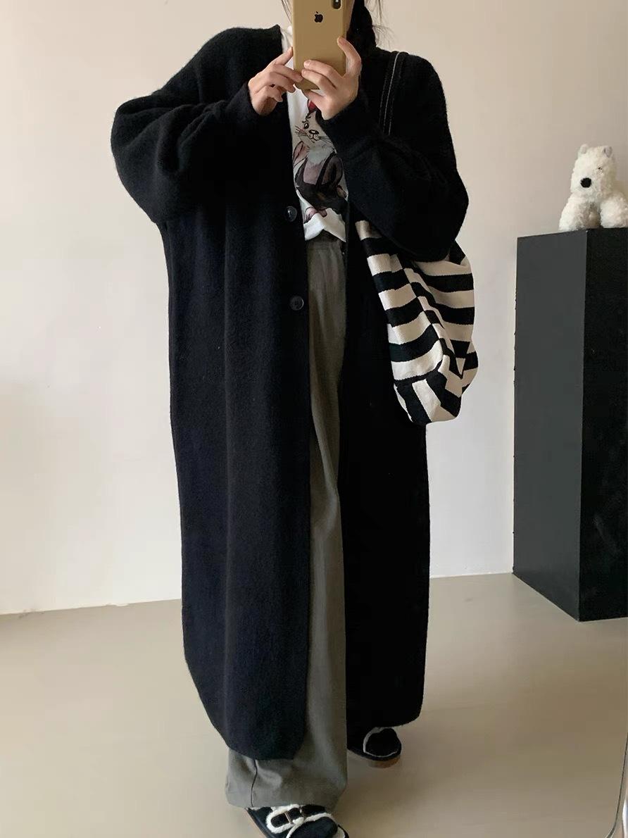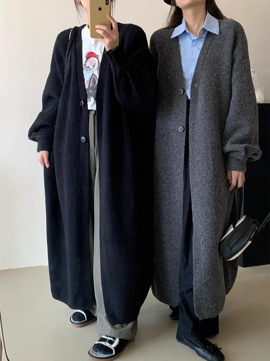 Suéter de longitud media para mujer, holgado, grueso, de punto, de color liso, para otoño e invierno