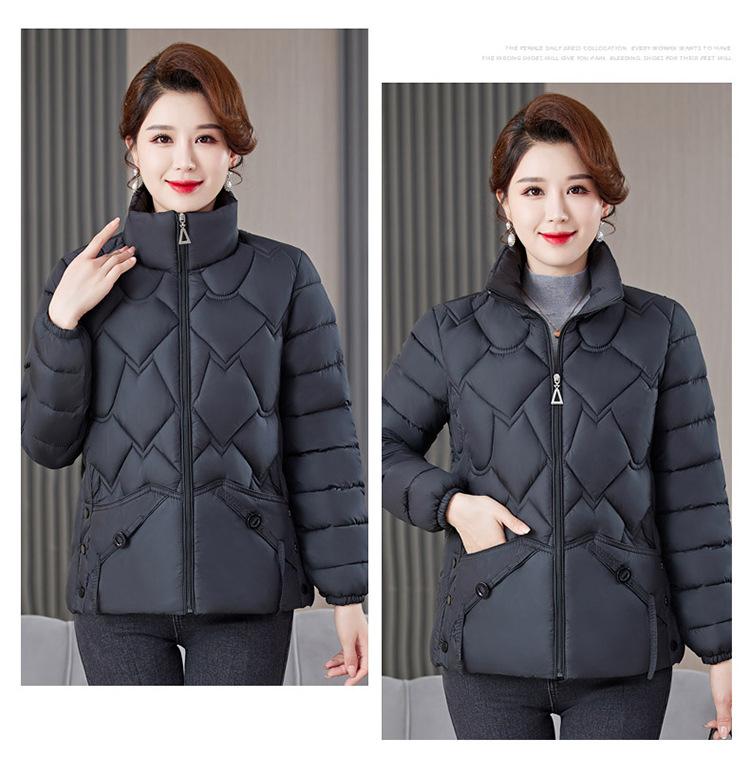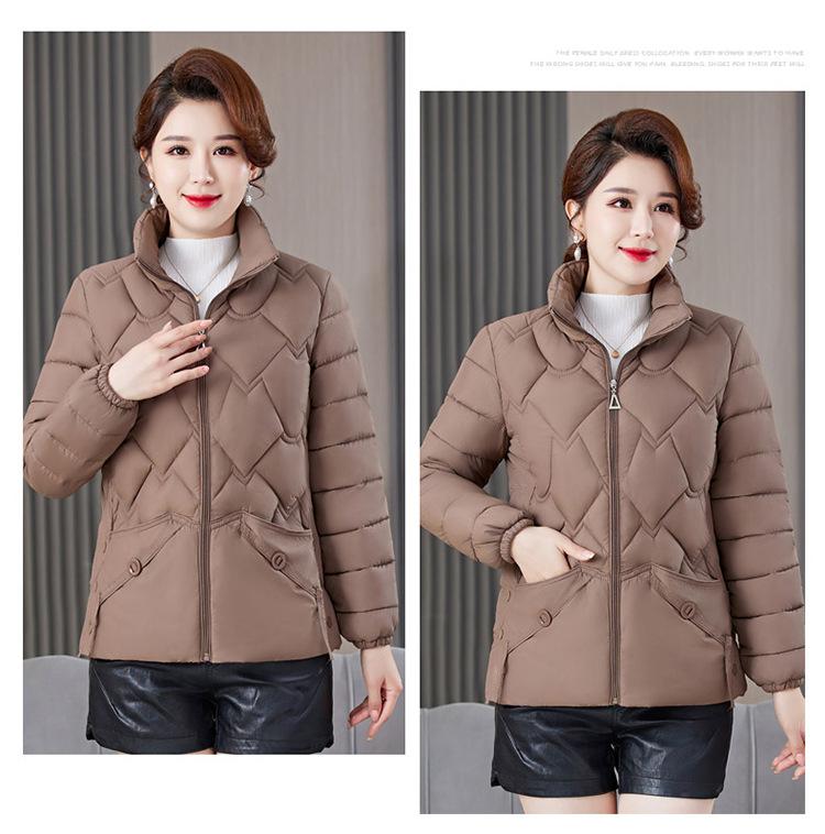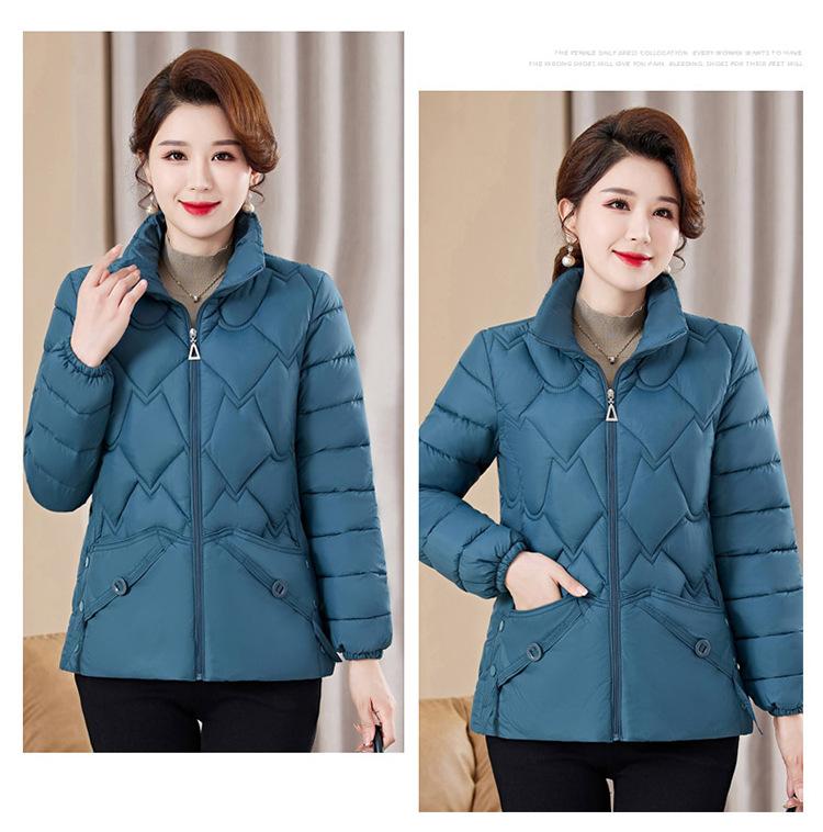 2023 nuevo otoño e invierno color puro moderno chaqueta acolchada de algodón para mamá de mediana edad estilo occidental simple abrigo corto delgado chaqueta de plumón