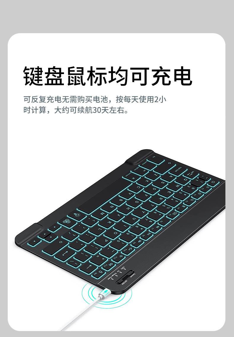[Qingshan Dai] Tablet Protective Cover 7 Colored Lights Light Keyboard and Mouse