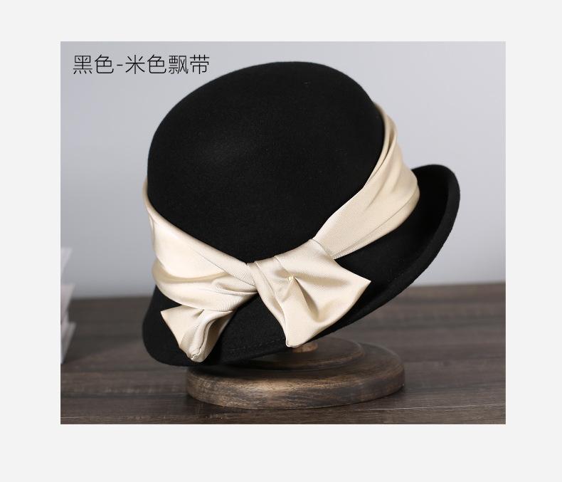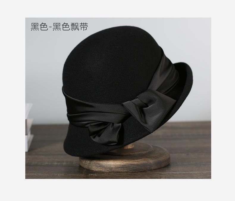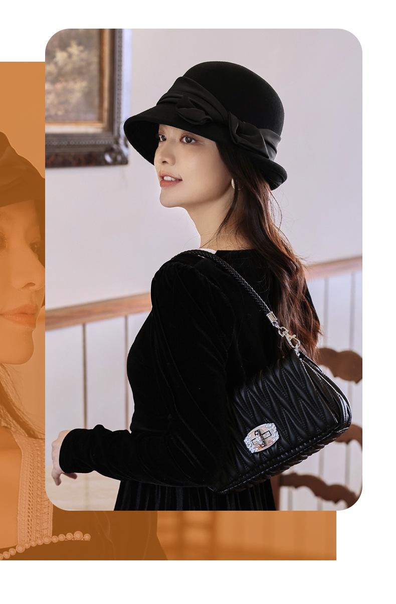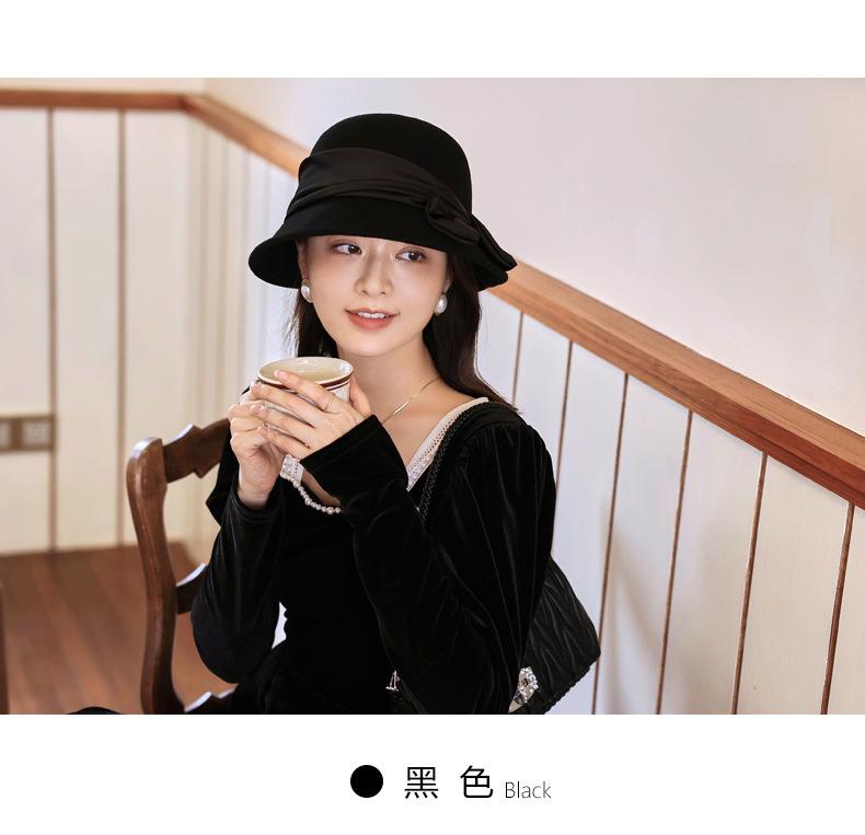 Sombrero de fieltro para mujer otoño e invierno lana nuevo sombrero negro moda retro Joker sombrero de pescador sombrero de fieltro de lana venta al por mayor