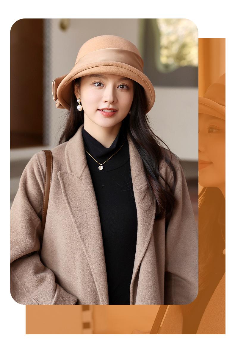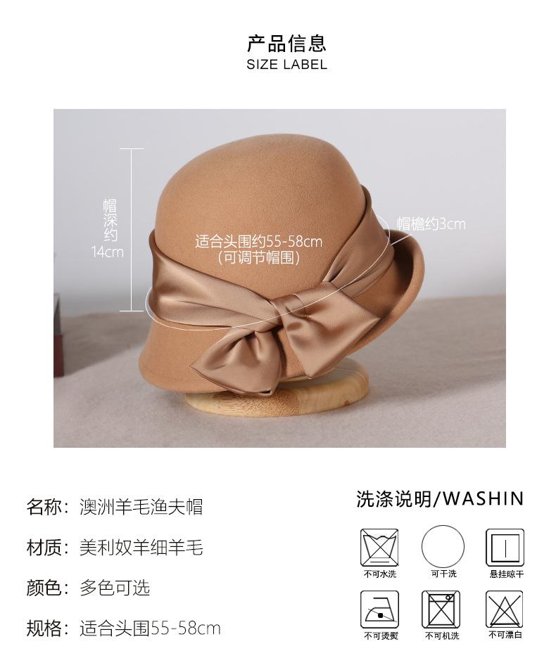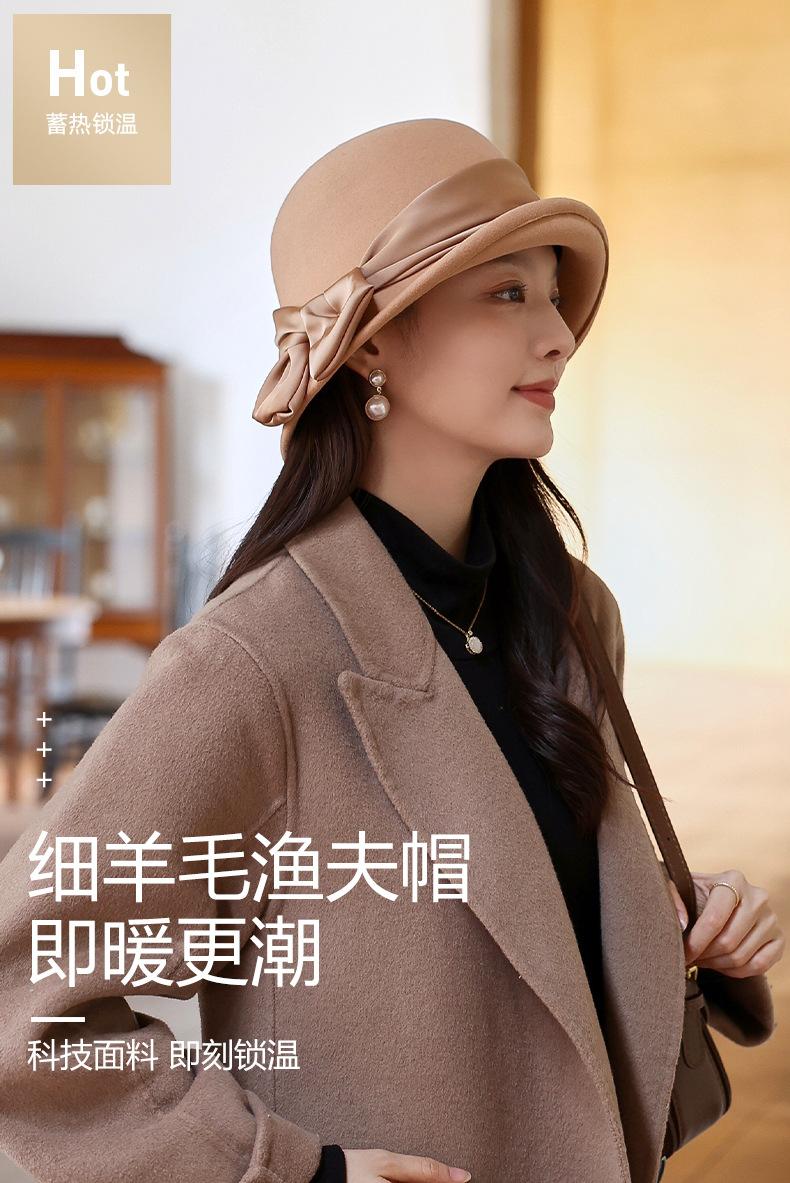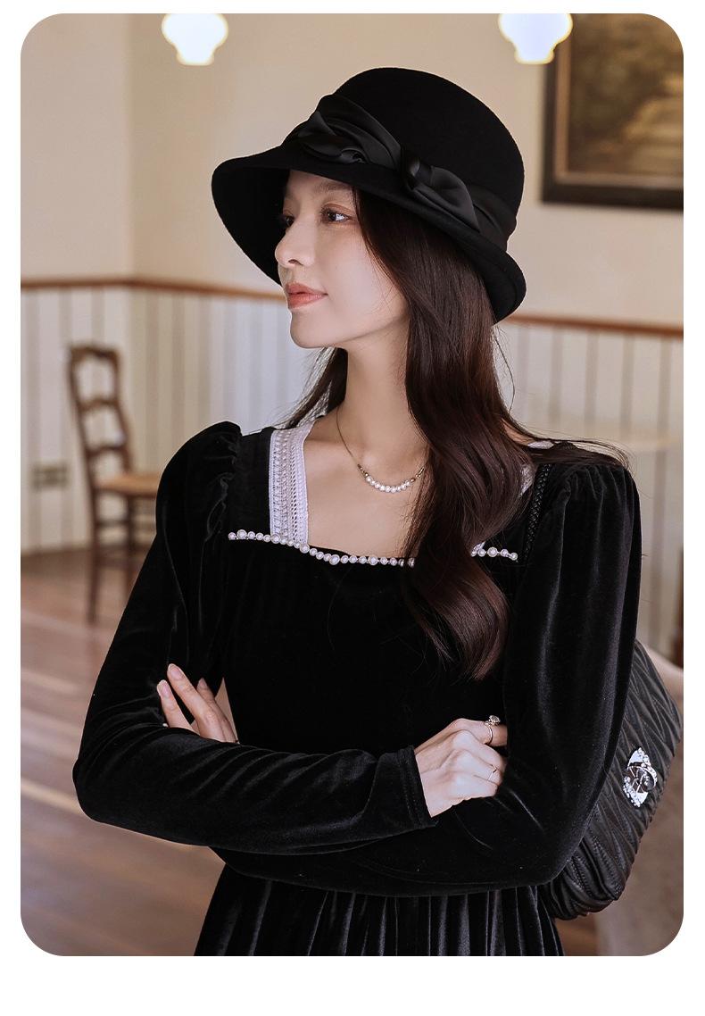 Sombrero de fieltro para mujer otoño e invierno lana nuevo sombrero negro moda retro Joker sombrero de pescador sombrero de fieltro de lana venta al por mayor