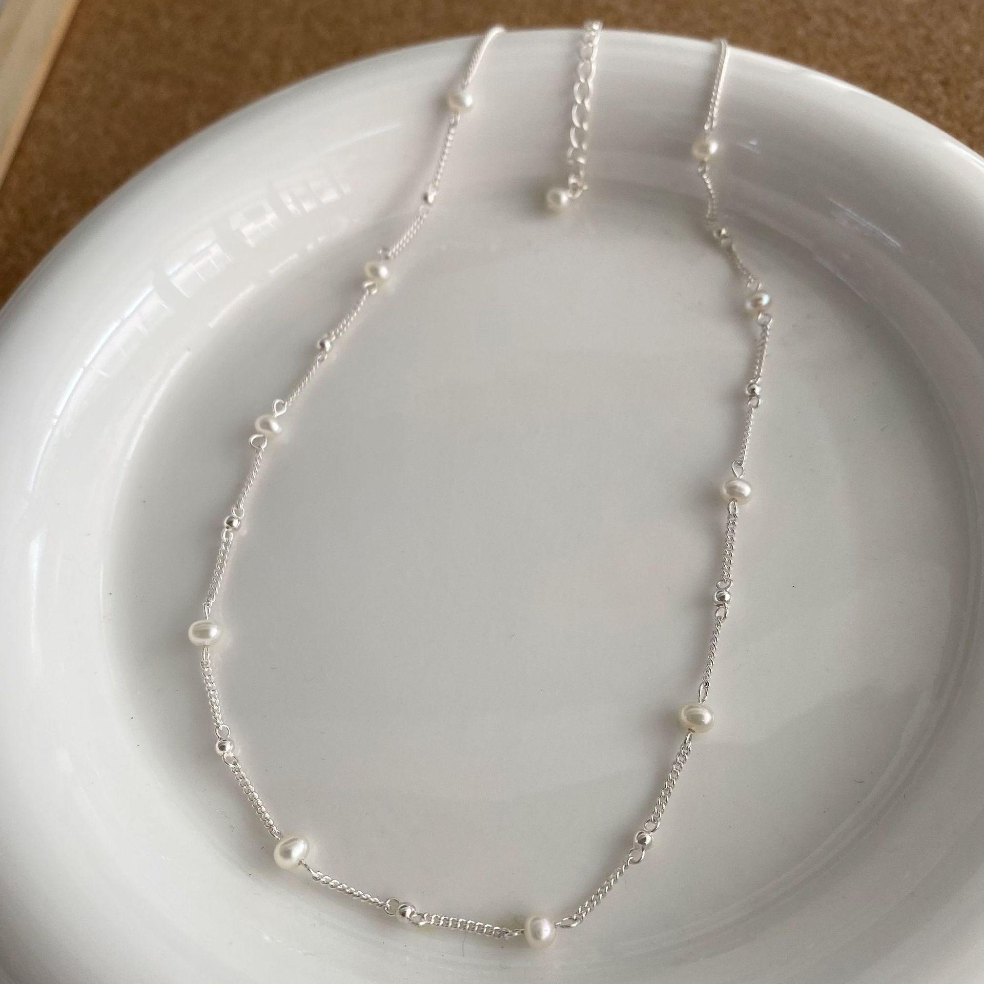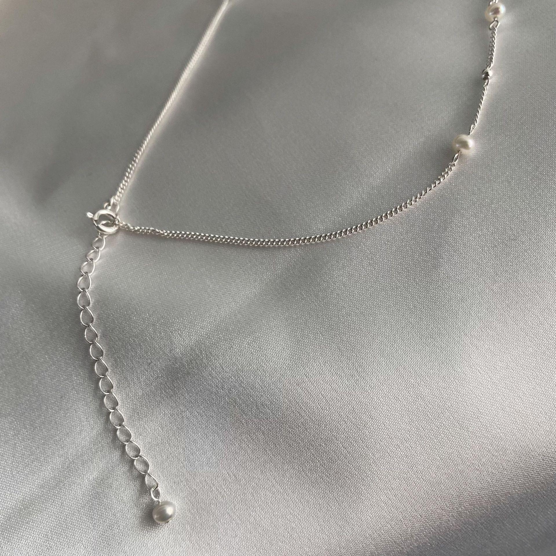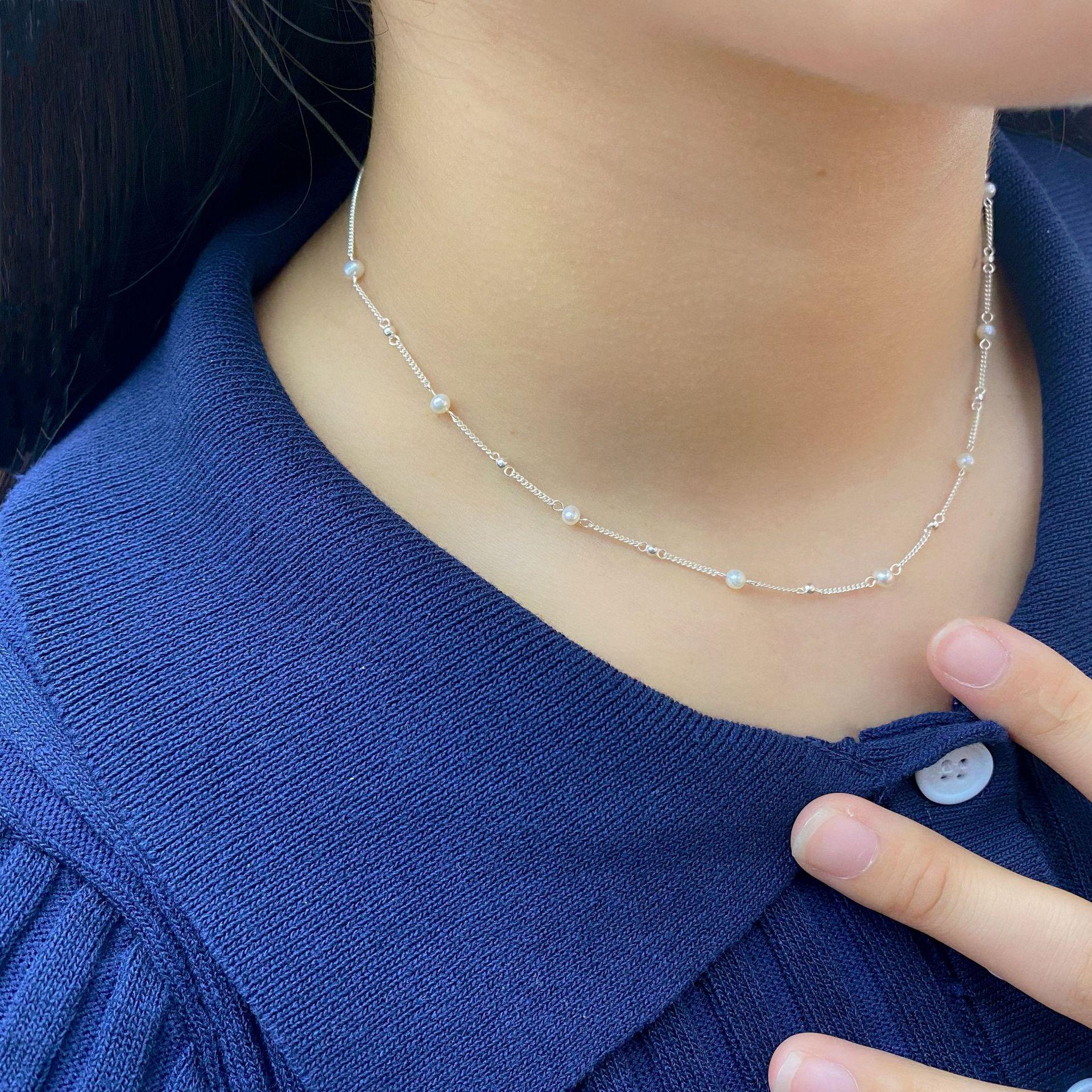 Collar Minimalista de Perlas de Plata Esterlina S925 Cadena Nuda Minimalista Versátil Moda