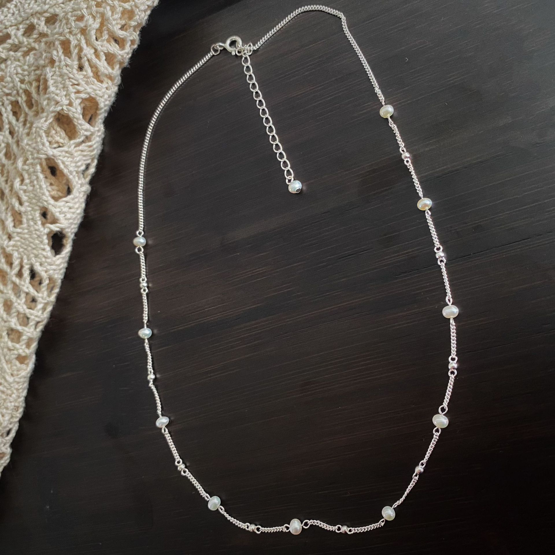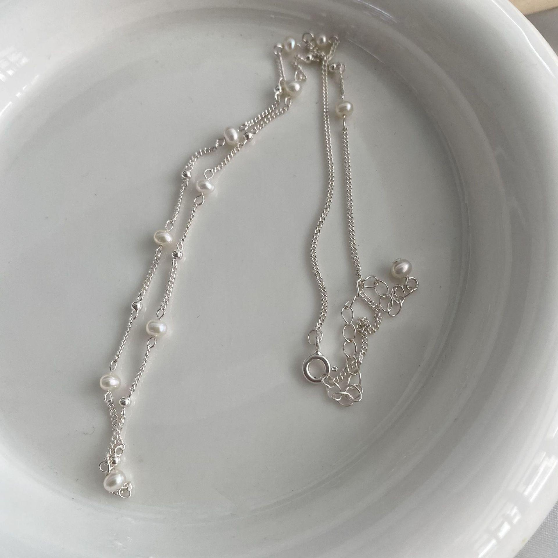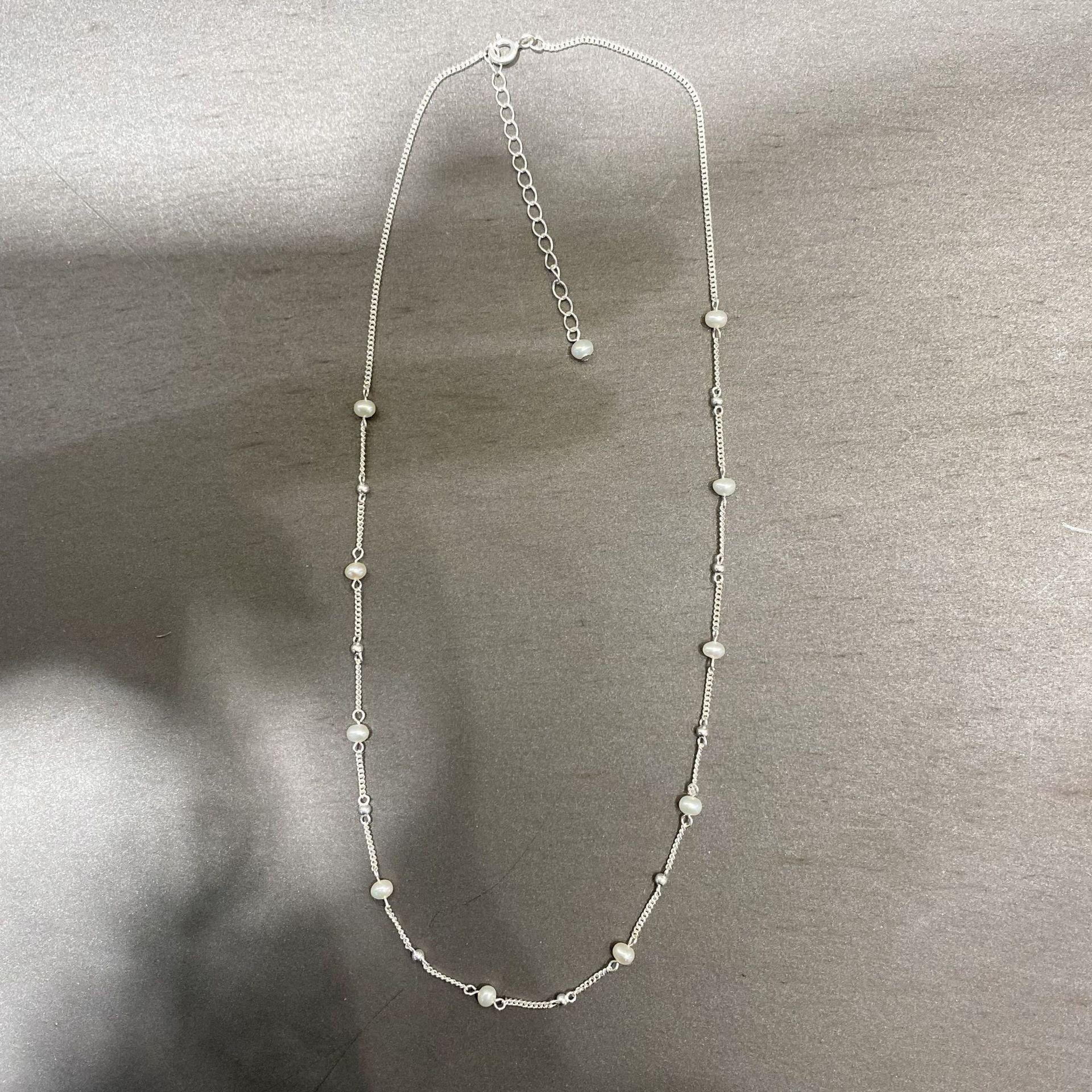 Collar Minimalista de Perlas de Plata Esterlina S925 Cadena Nuda Minimalista Versátil Moda