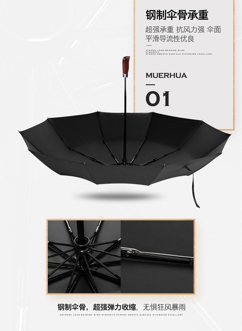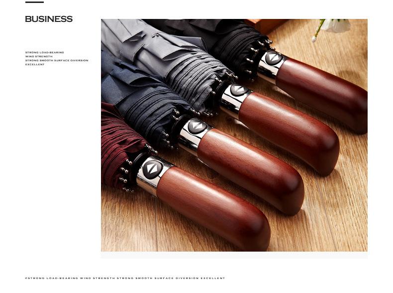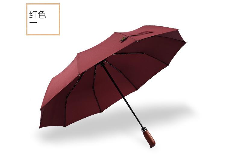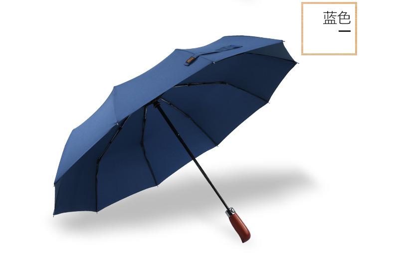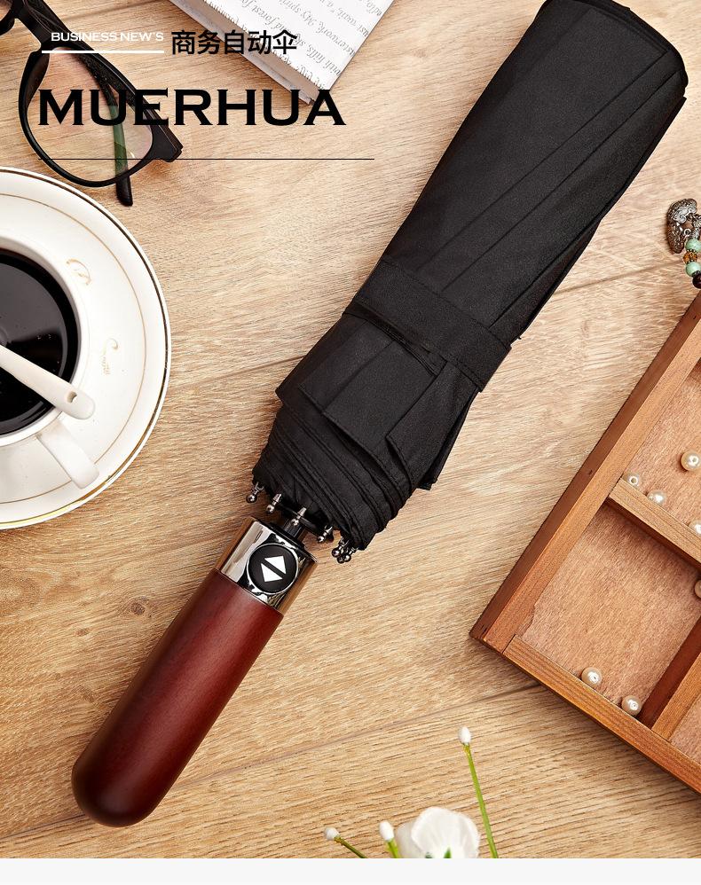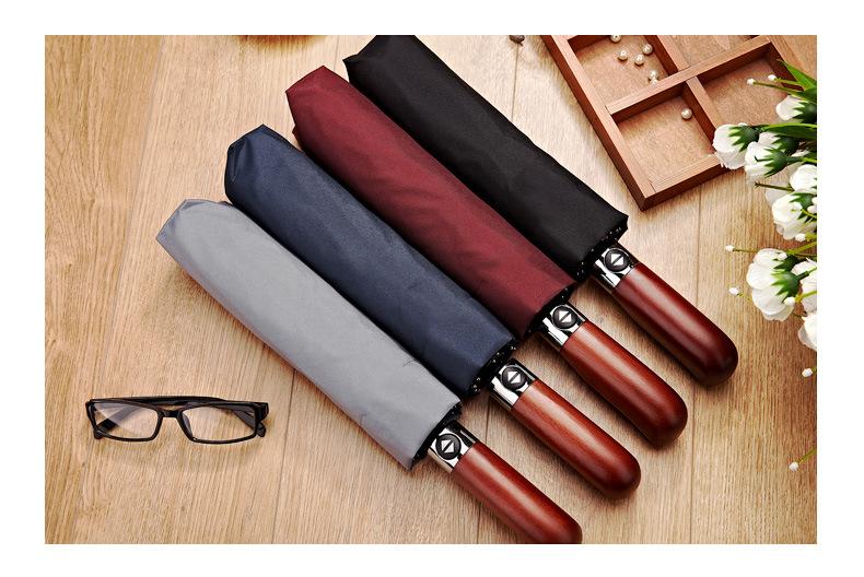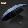 Paraguas totalmente automático reforzado resistente al viento grande para negocios de aspecto elegante para hombres estudiantes mango de madera paraguas plegable paraguas de doble uso para sol y lluvia