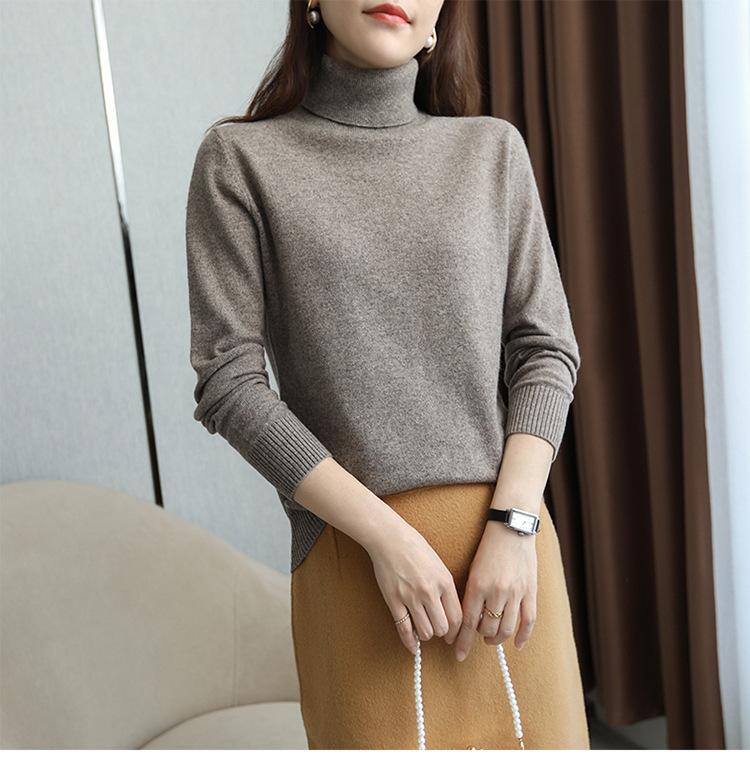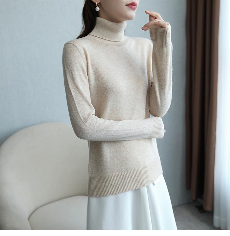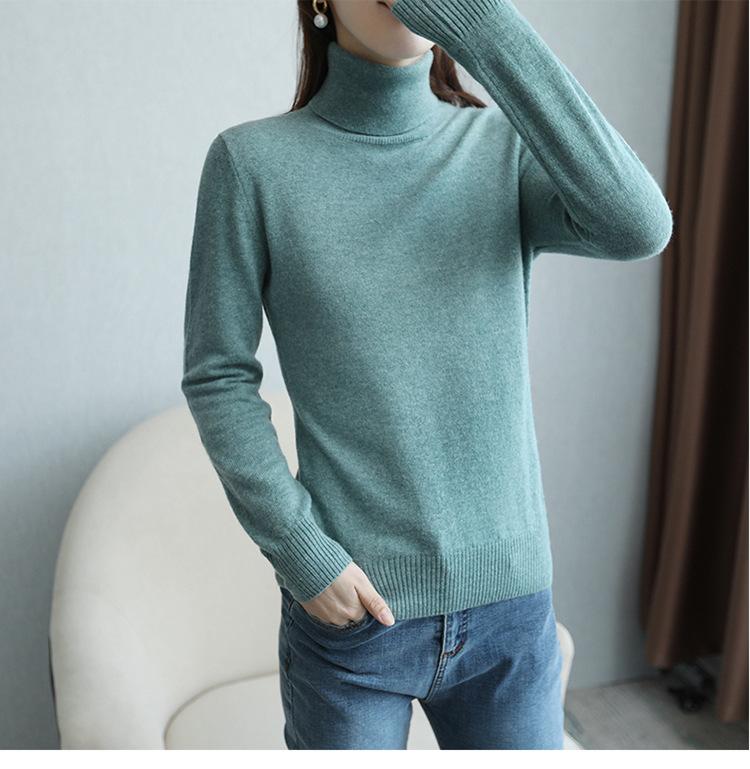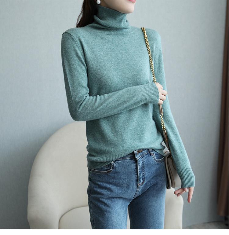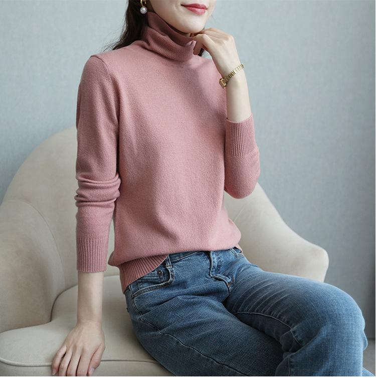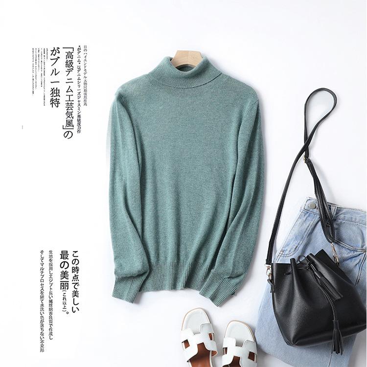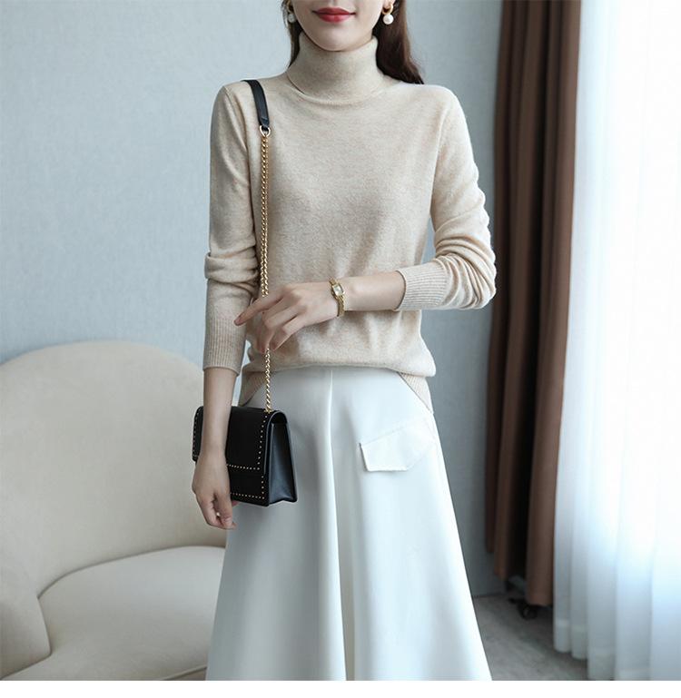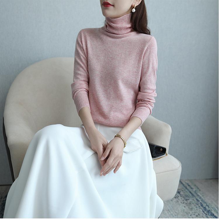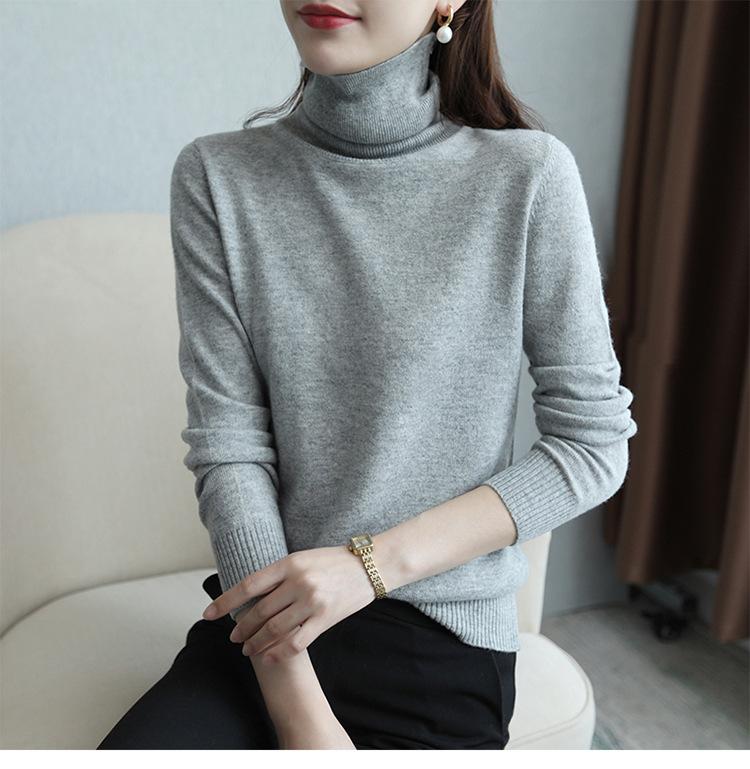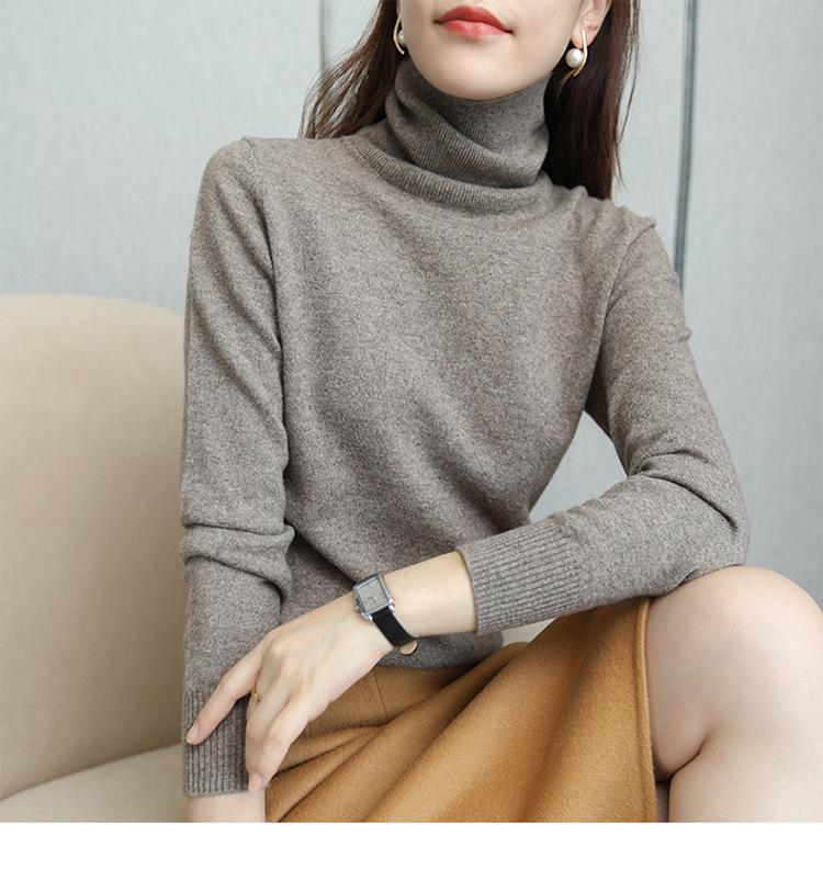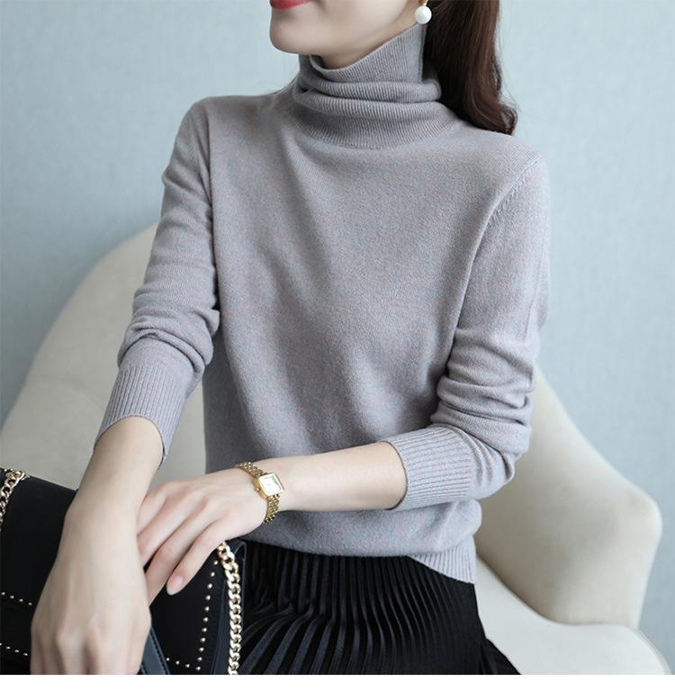 Suéter de cachemira de solapa alta para mujer de otoño e invierno, suéter de punto, corte entallado, camisa interior abrigada y adelgazante, talla grande, estilo coreano, temperamento