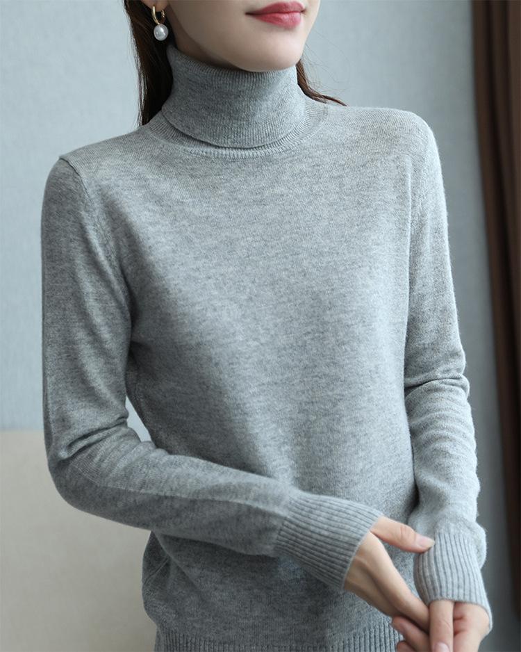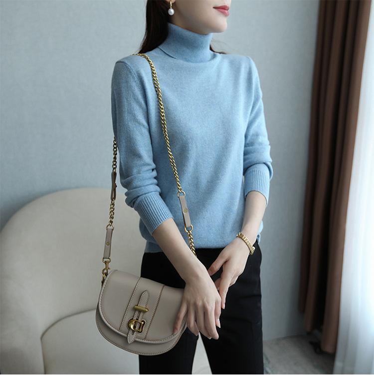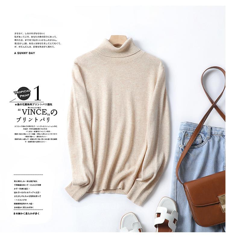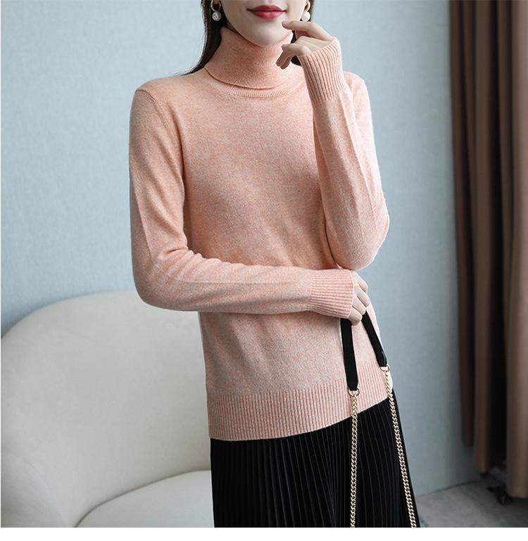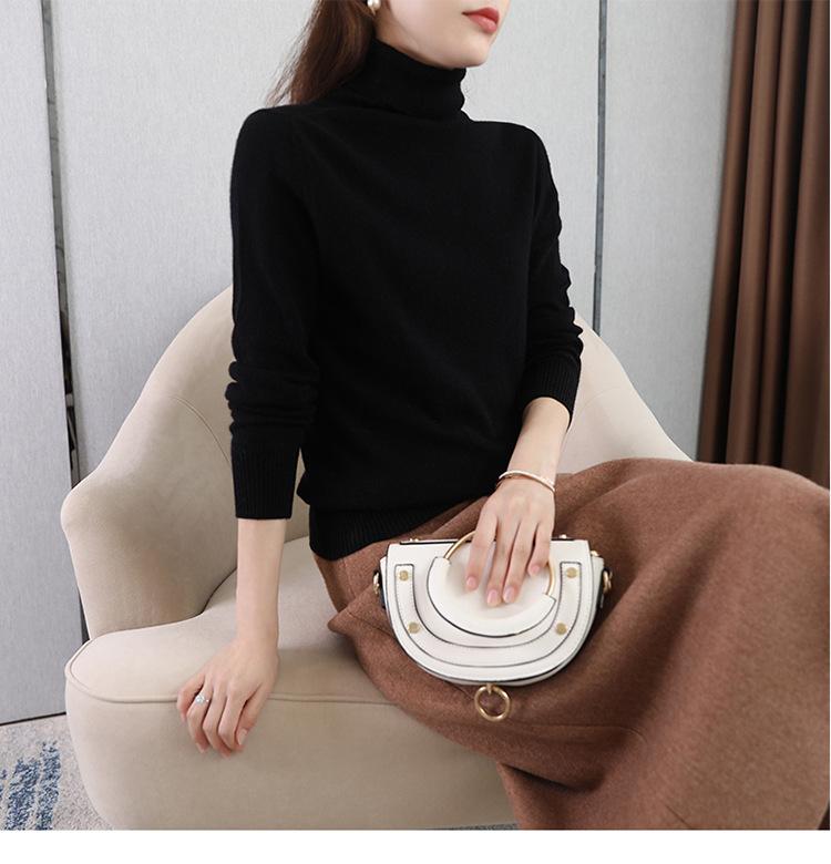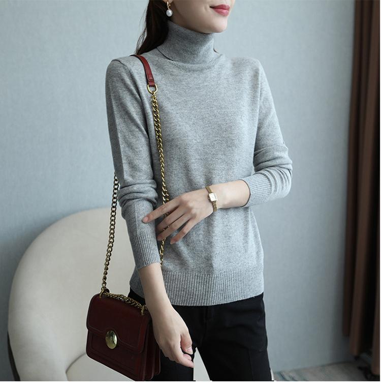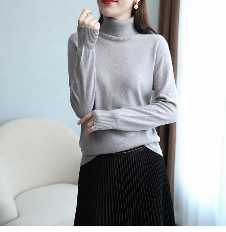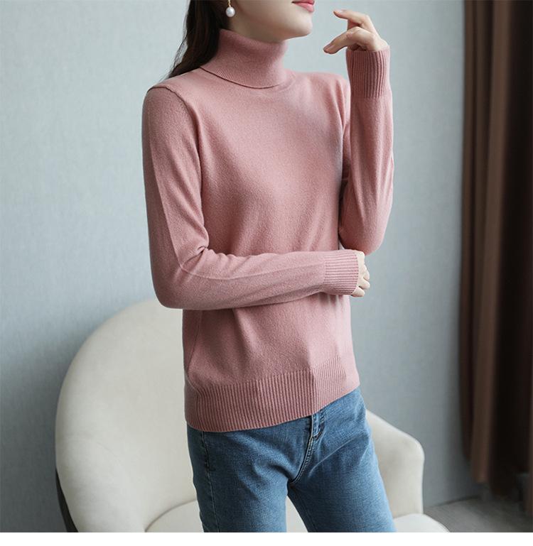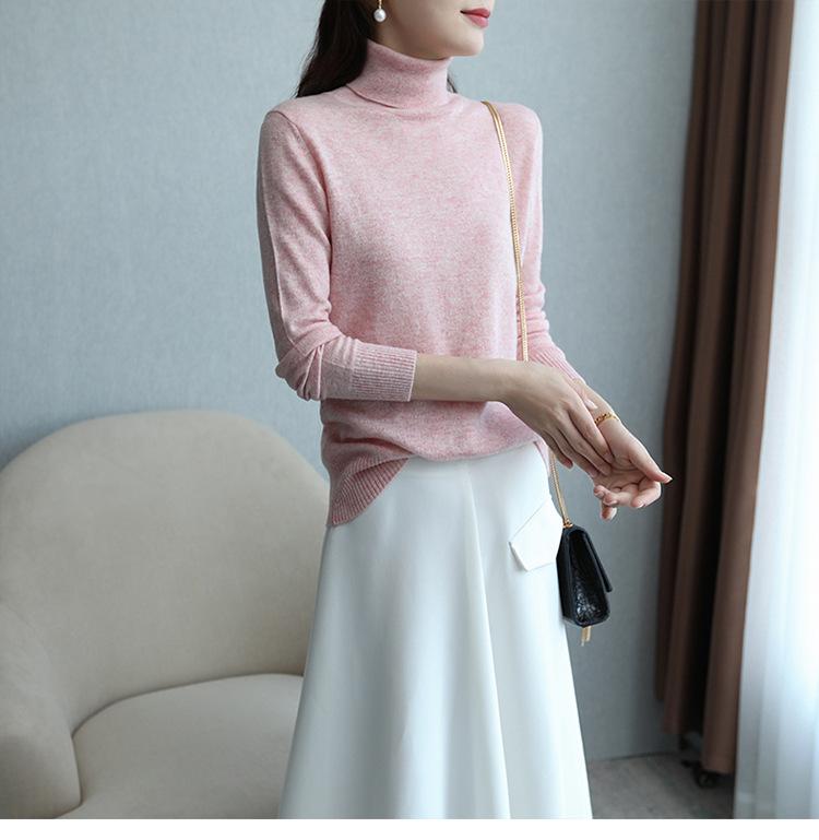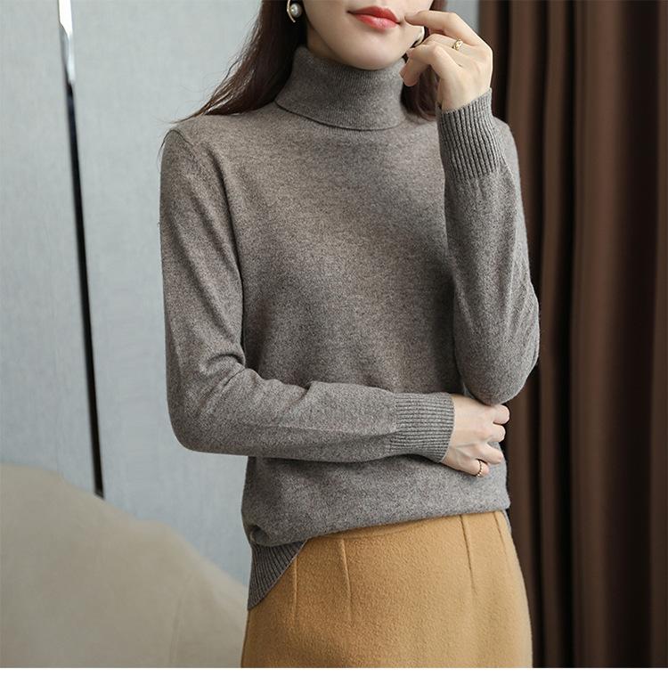 Suéter de cachemira de solapa alta para mujer de otoño e invierno, suéter de punto, corte entallado, camisa interior abrigada y adelgazante, talla grande, estilo coreano, temperamento