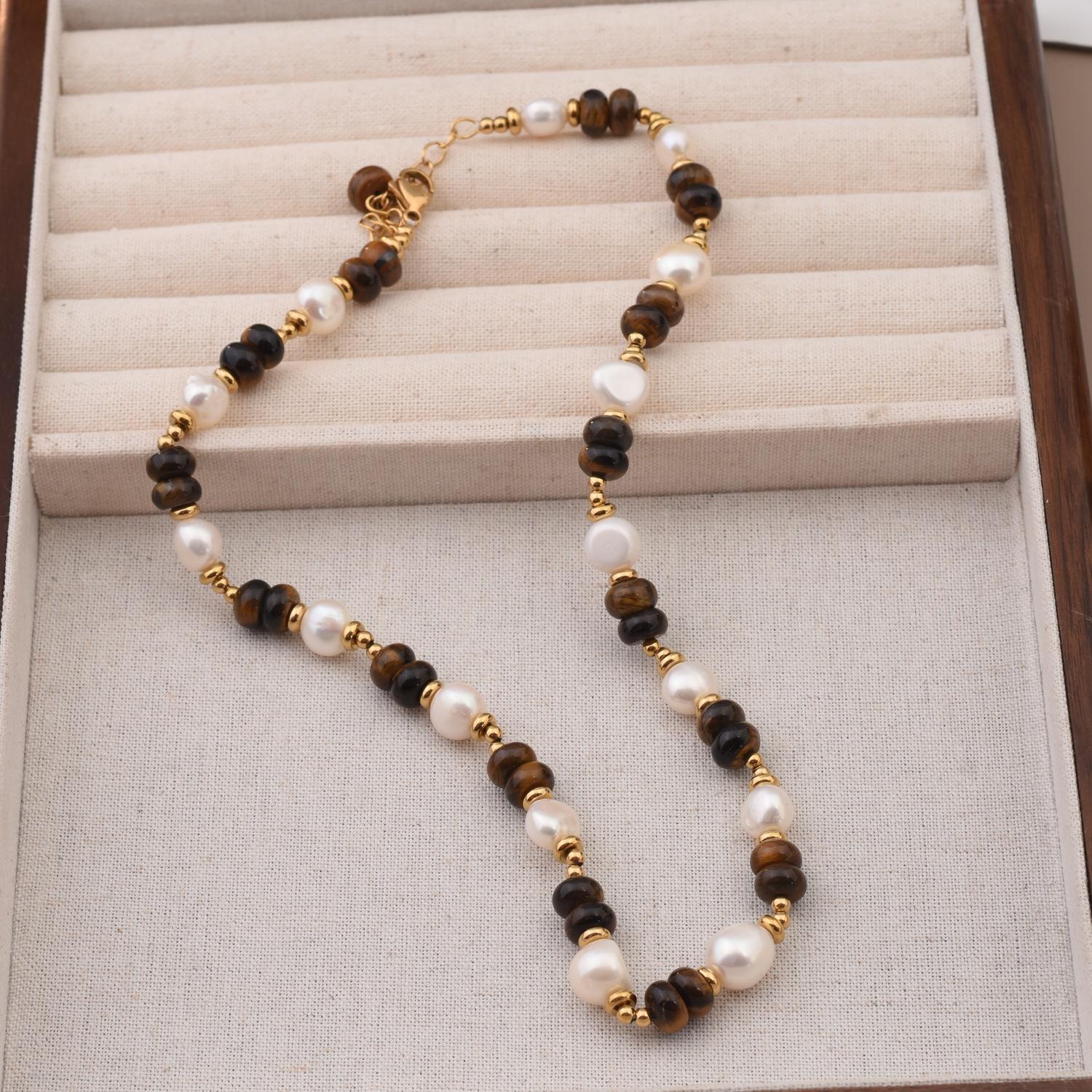Collar de cuentas de ojo de tigre Maillard para mujer, ligero y lujoso, con cadena de nicho, accesorios retro de alta gama para el verano.