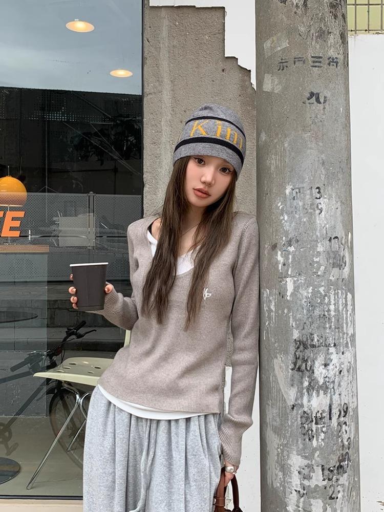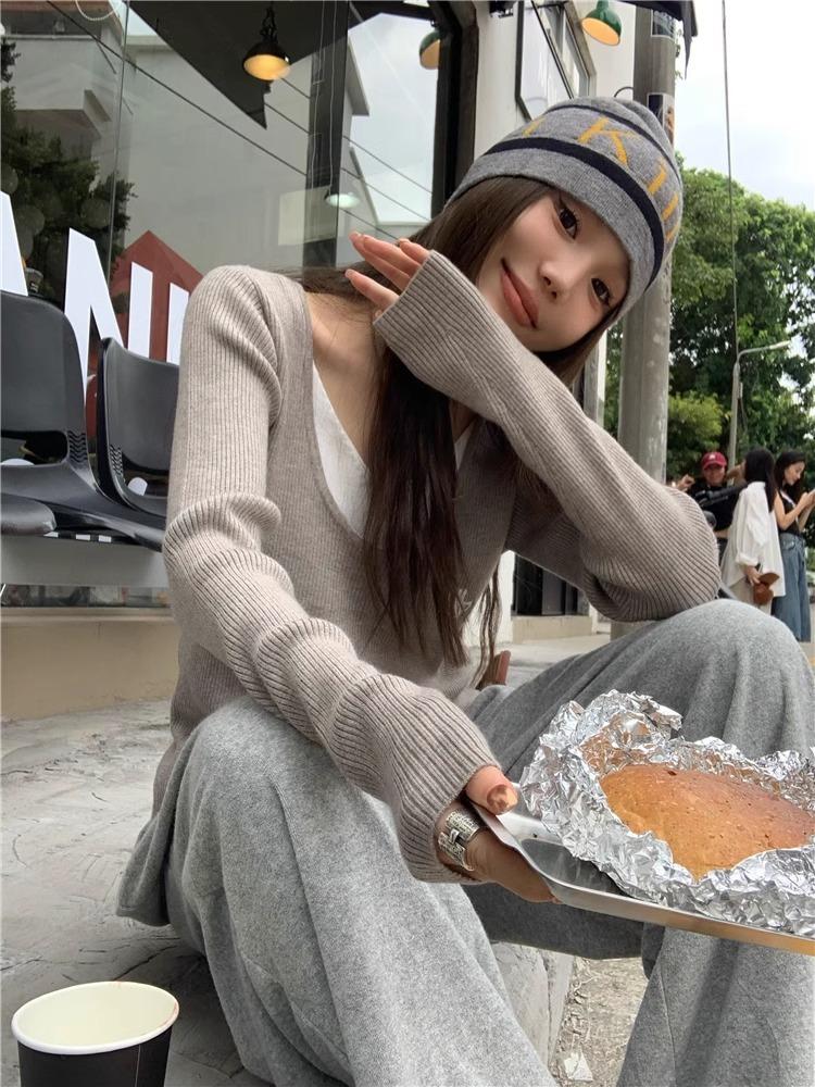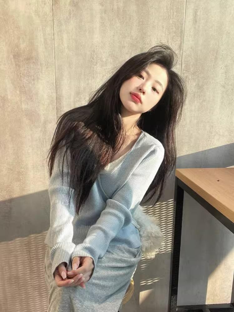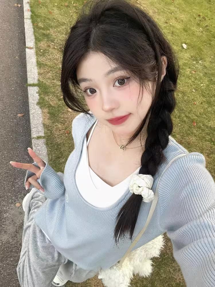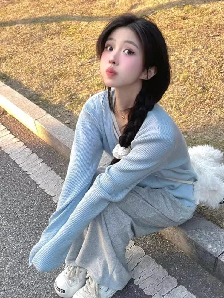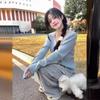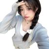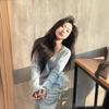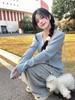 Suéter de terciopelo azul hilo falso de dos piezas para mujer Primavera Otoño e Invierno estilo suave base interior diseño slim manga larga