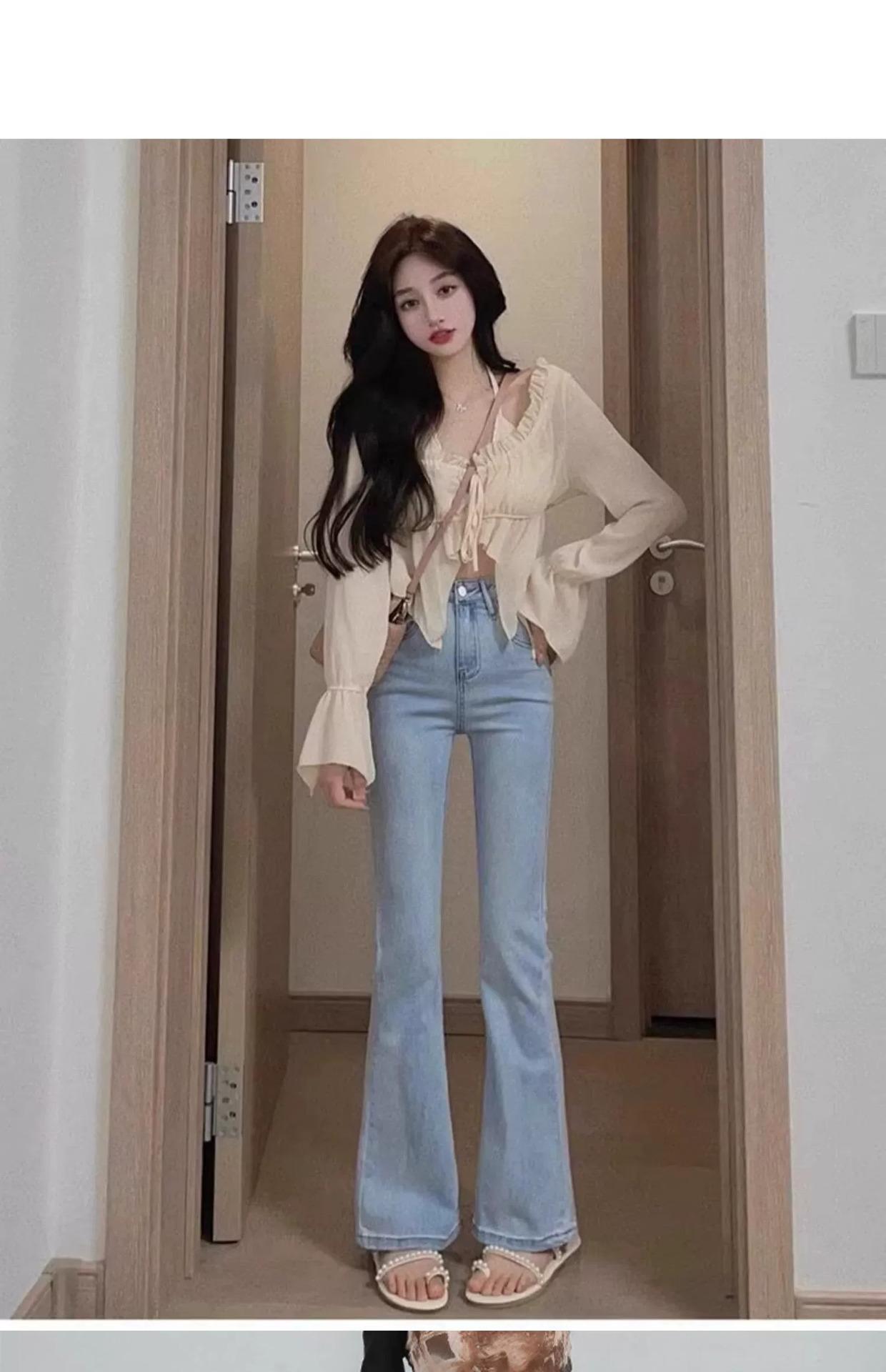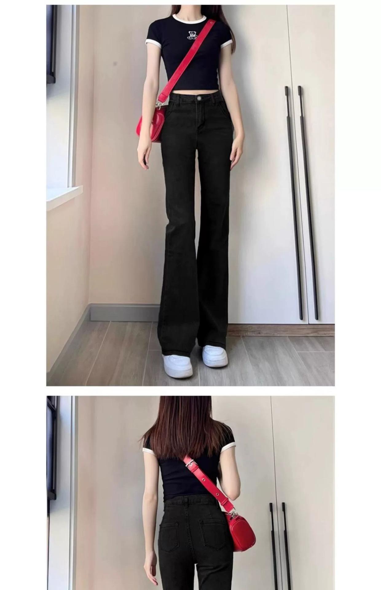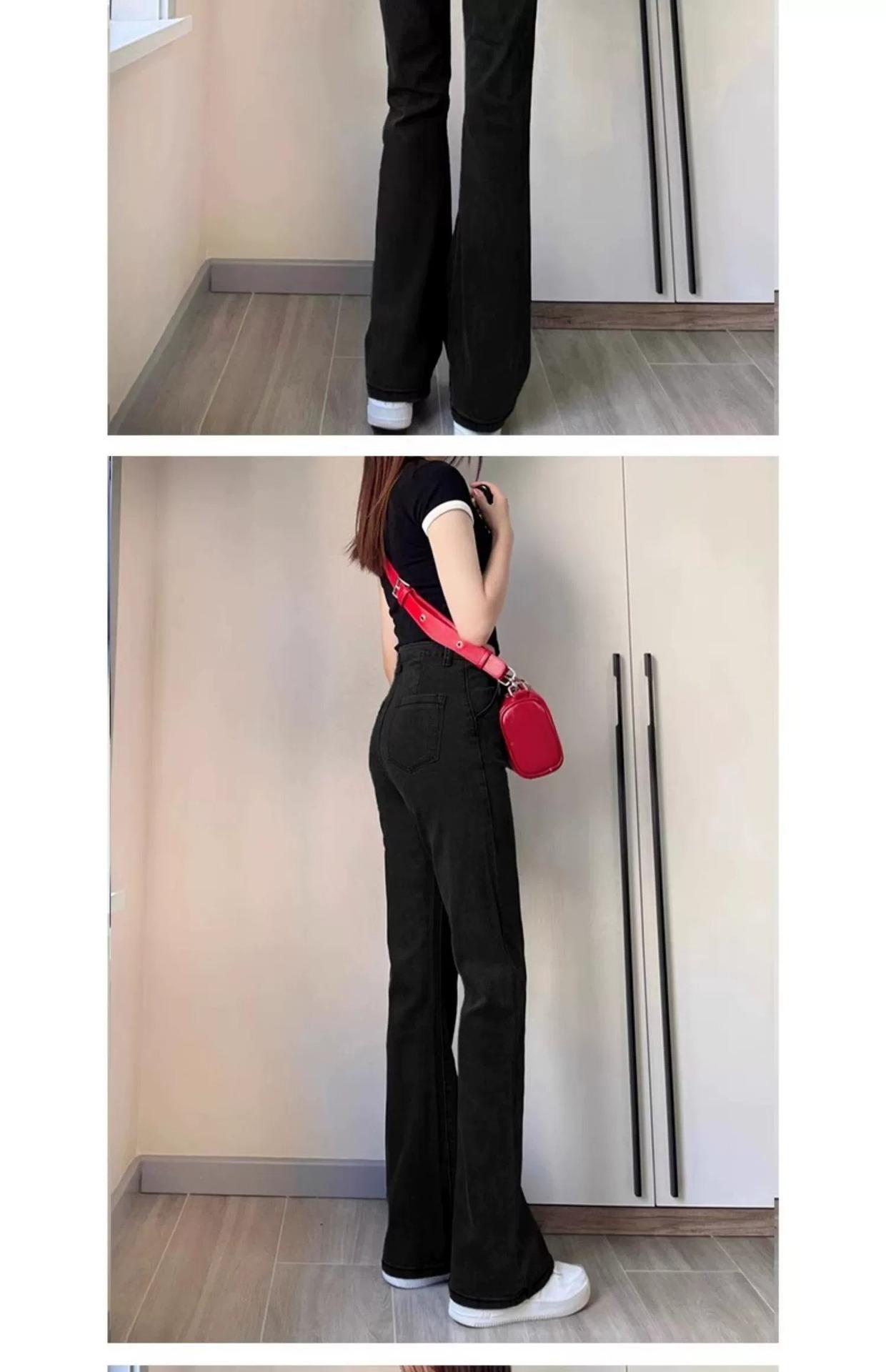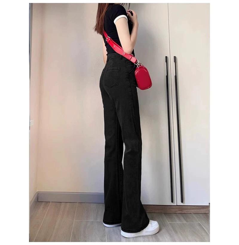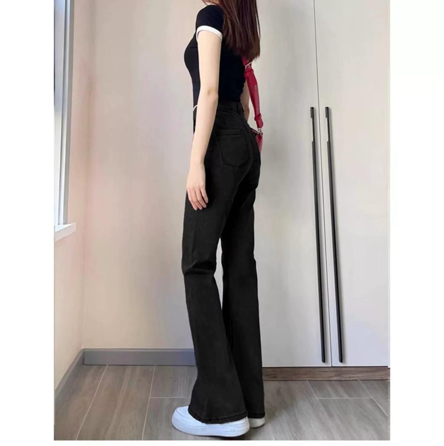 Jeans Acampanados Negros de Cintura Alta para Mujer, Otoño 2025 Nuevo Elásticos Ajustados Cuerpo Forma de Pera Pantalones Acampanados