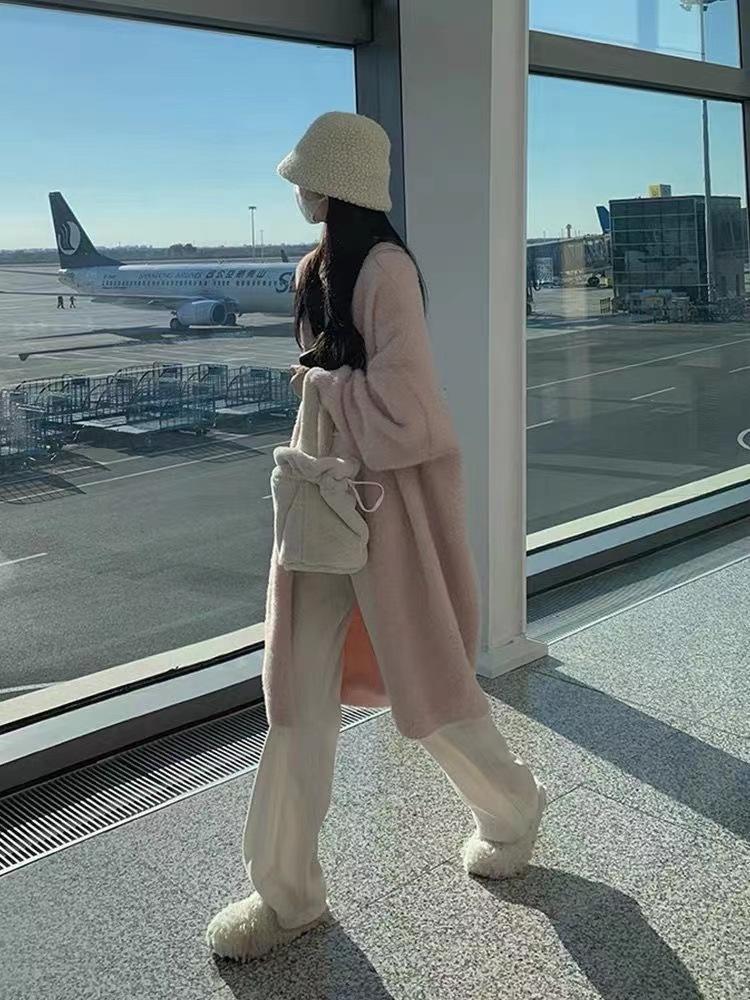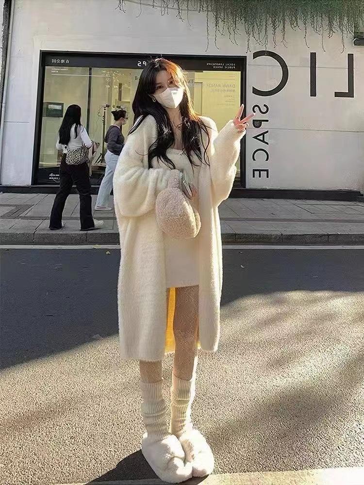 Chaqueta tipo cárdigan de primavera y otoño 2023, holgada, por encima de la rodilla, de longitud media, gruesa, de terciopelo de imitación de visón puro, suave y encerada, para mujer