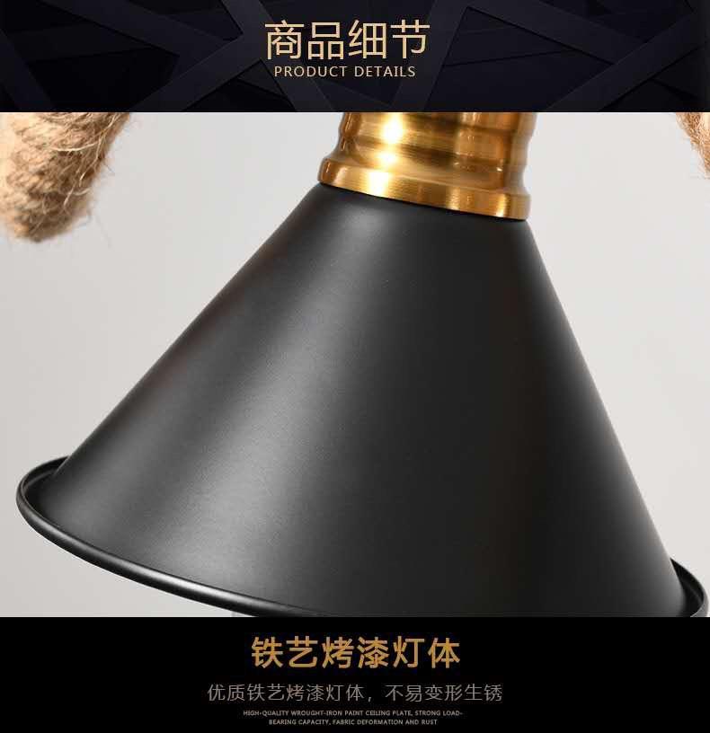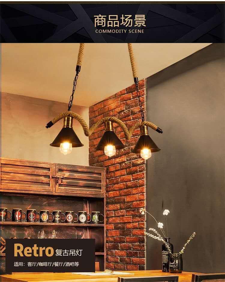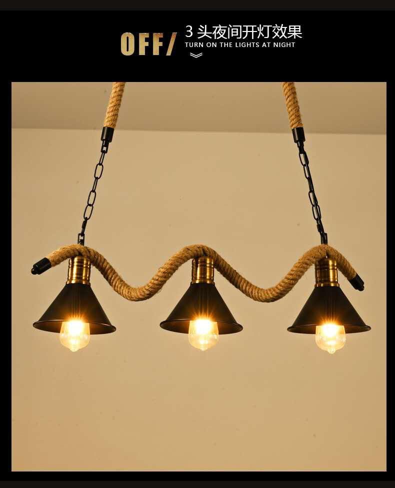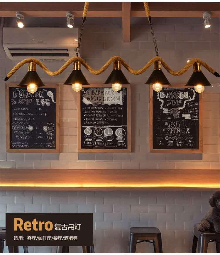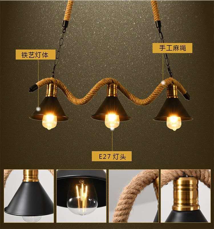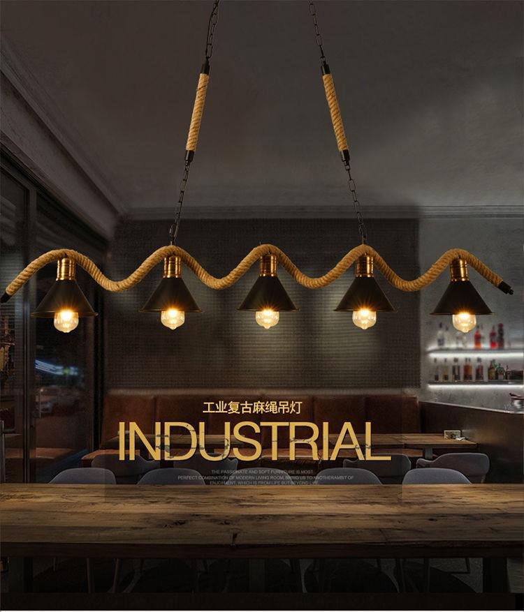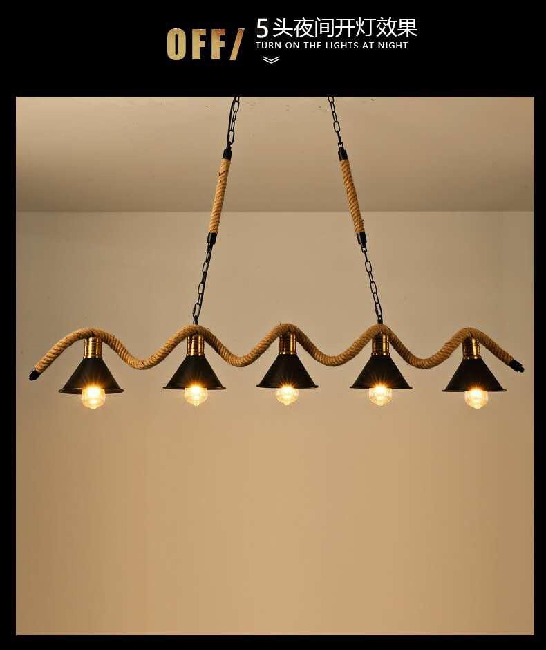 Lámpara de araña de cuerda de cáñamo retro americana, personalizada, creativa, para tienda de ropa, restaurante, bar, cibercafé.