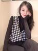 Gejia Ropa Nueva para Mujer 2024 Primavera y Otoño Versátil Cuello en V Pata de Gallo Blanco y Negro Sin Mangas Lana Tejido Chaleco Chaleco para Mujer