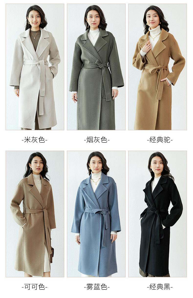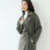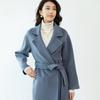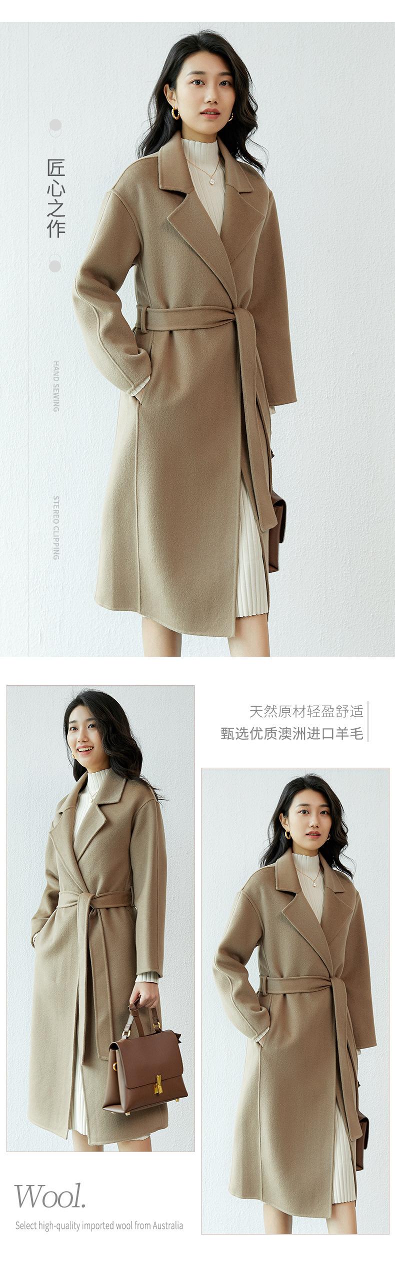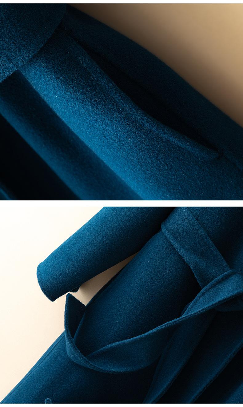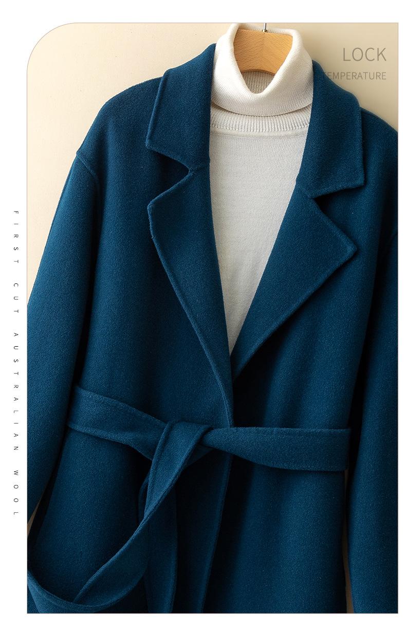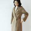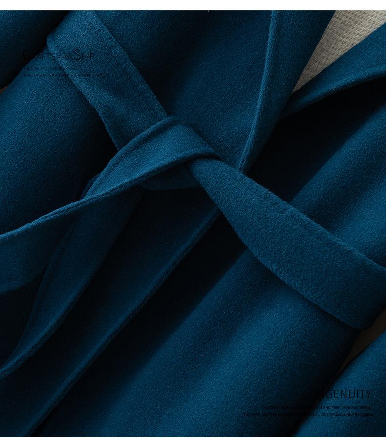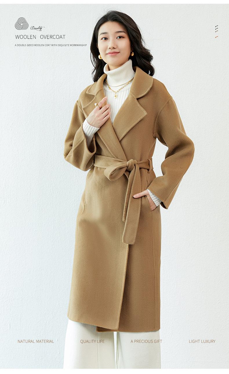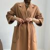 Invierno Nuevo Abrigo de Lana de Doble Vista Largo con Cordones Sobre la Rodilla Cuello Sastre Moderno Casual Elegante Chaqueta para Viajar