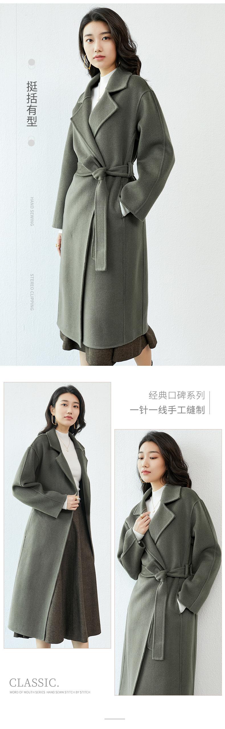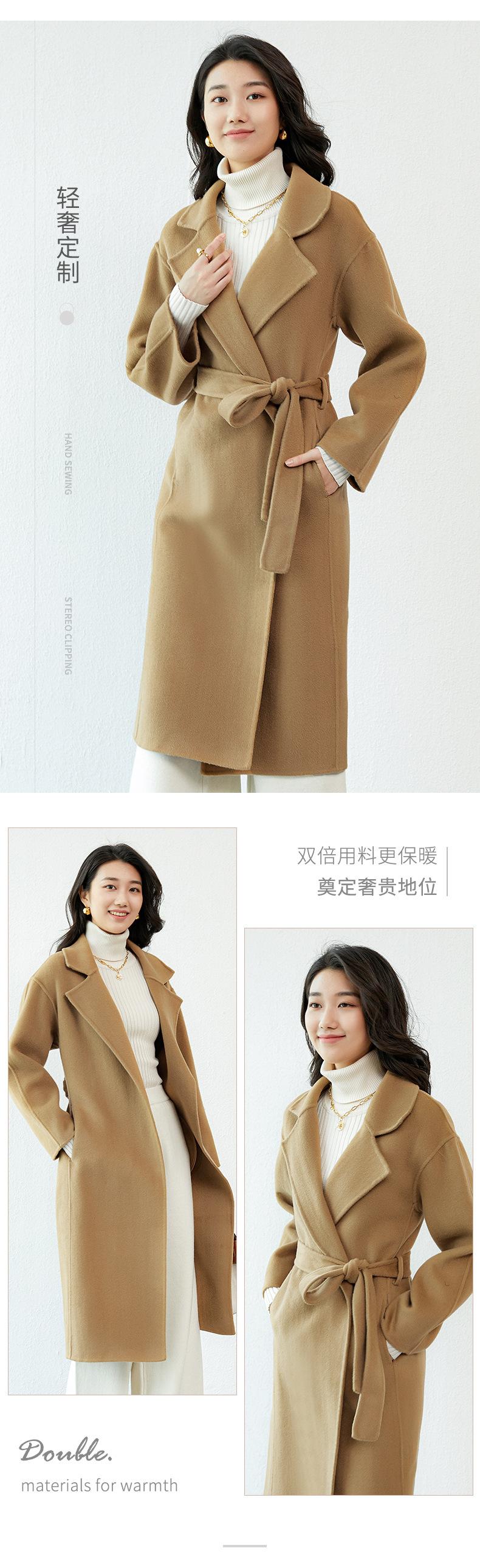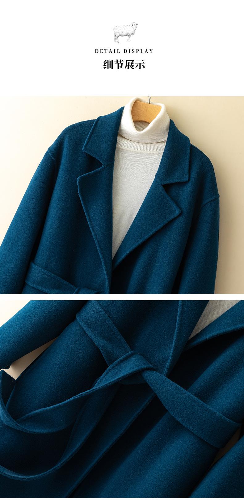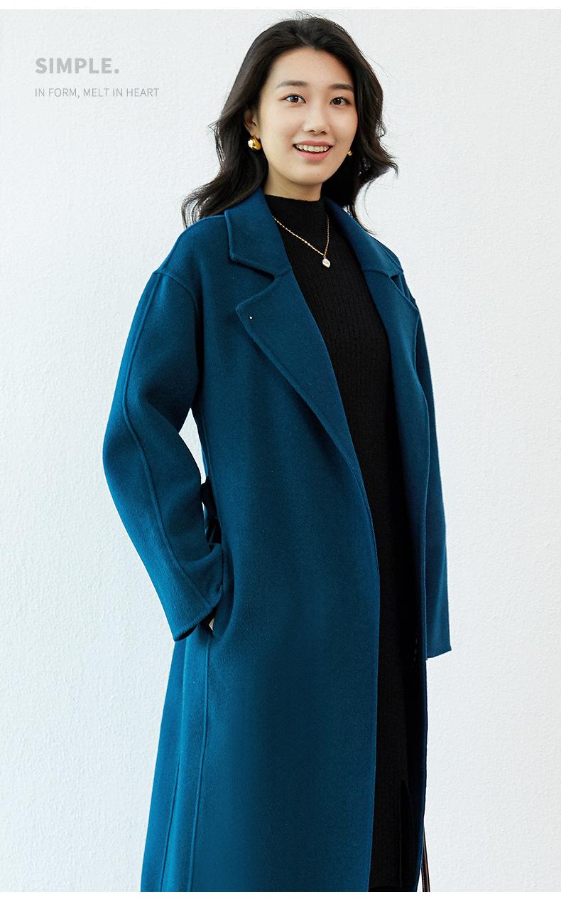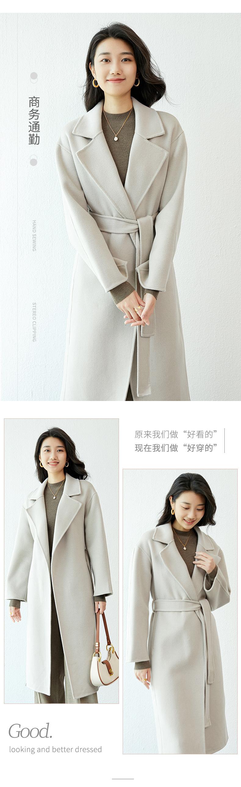 Invierno Nuevo Abrigo de Lana de Doble Vista Largo con Cordones Sobre la Rodilla Cuello Sastre Moderno Casual Elegante Chaqueta para Viajar