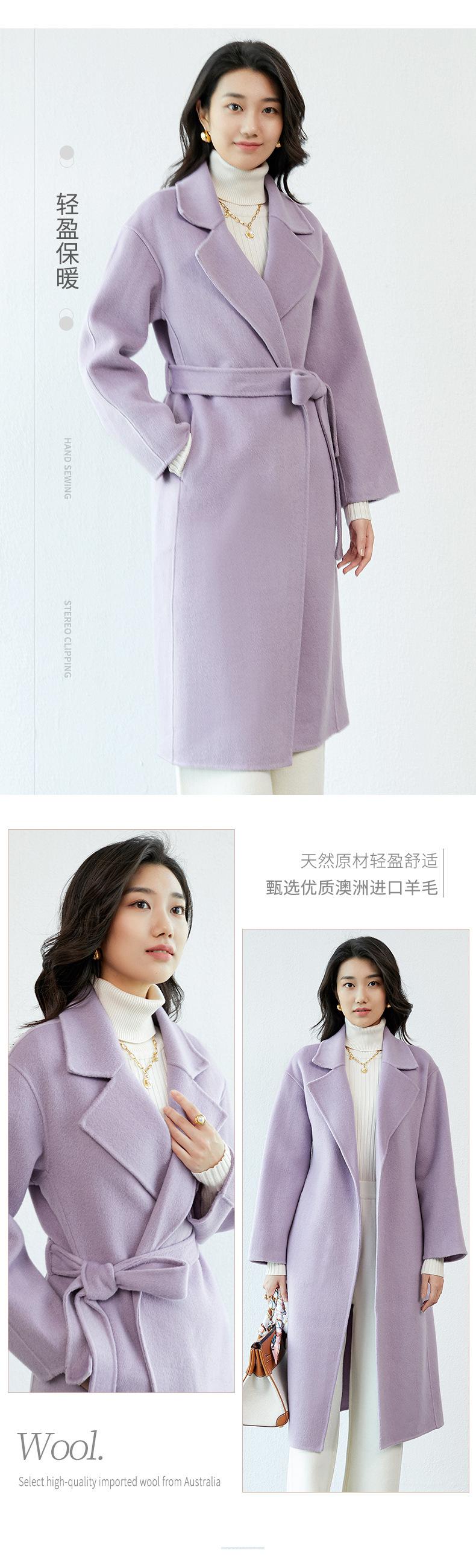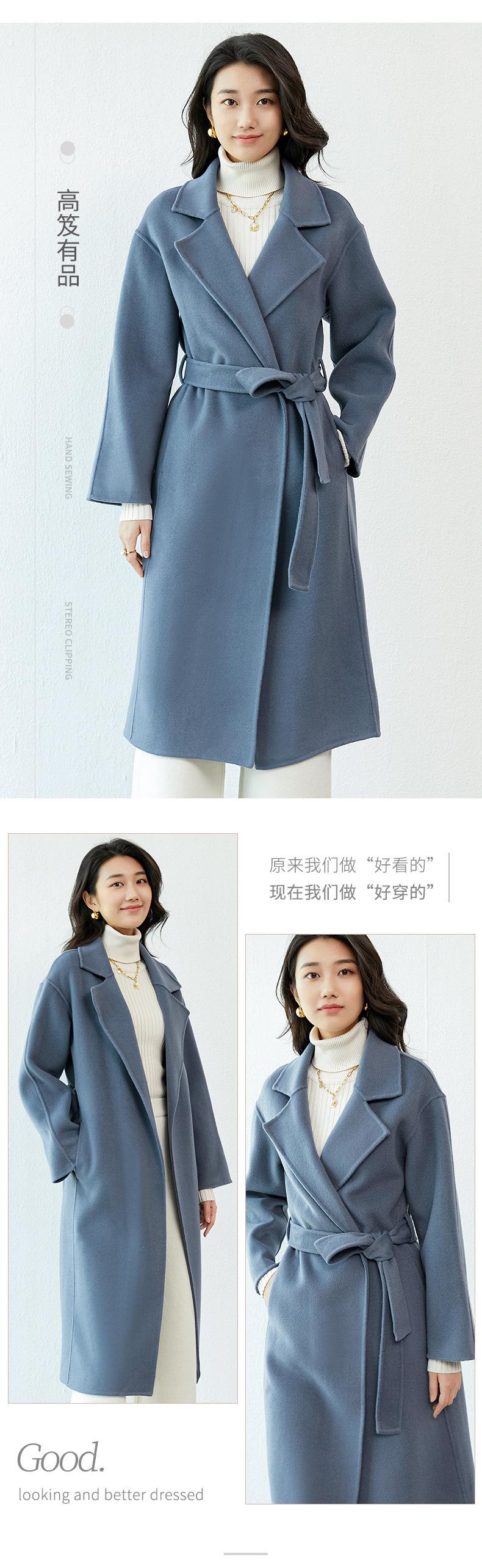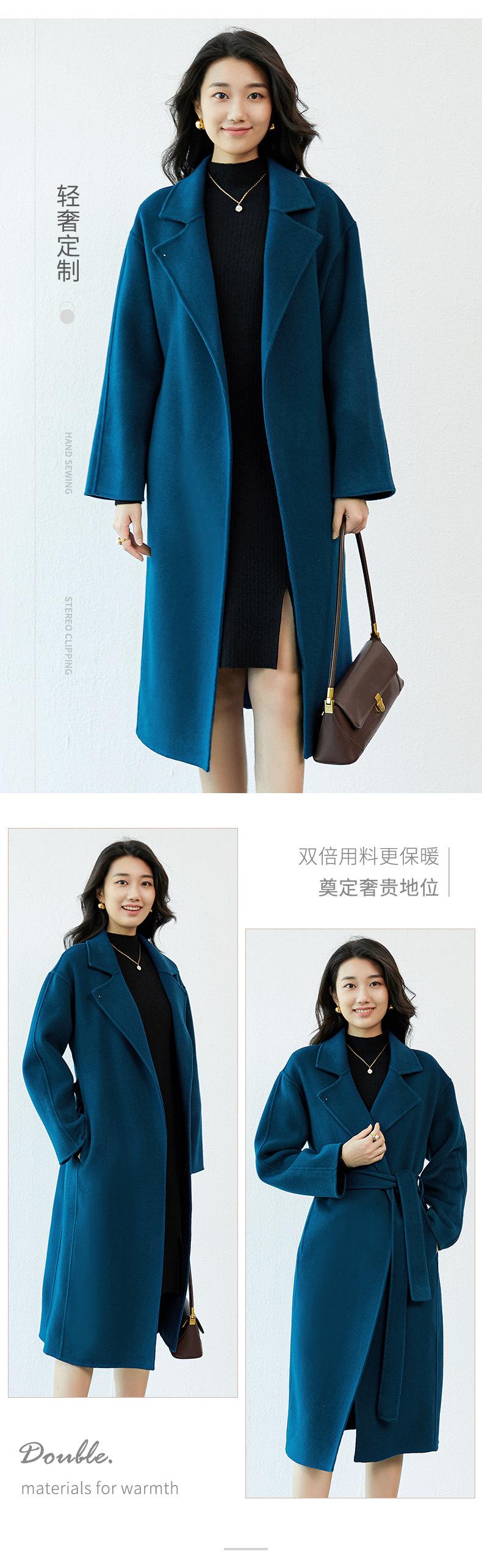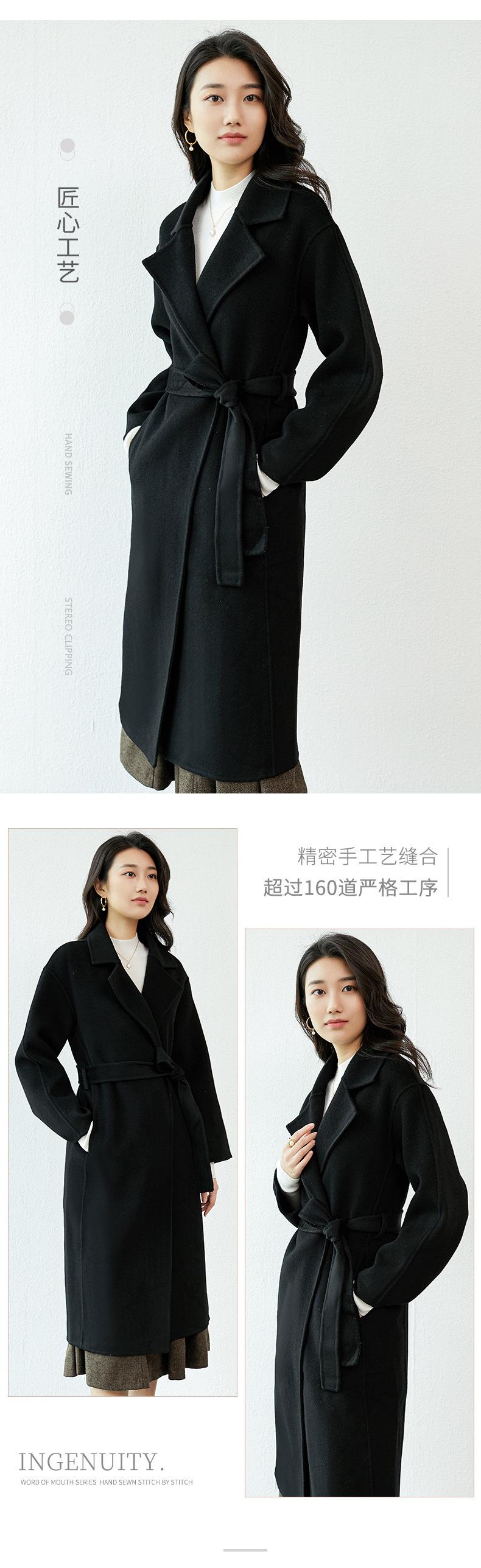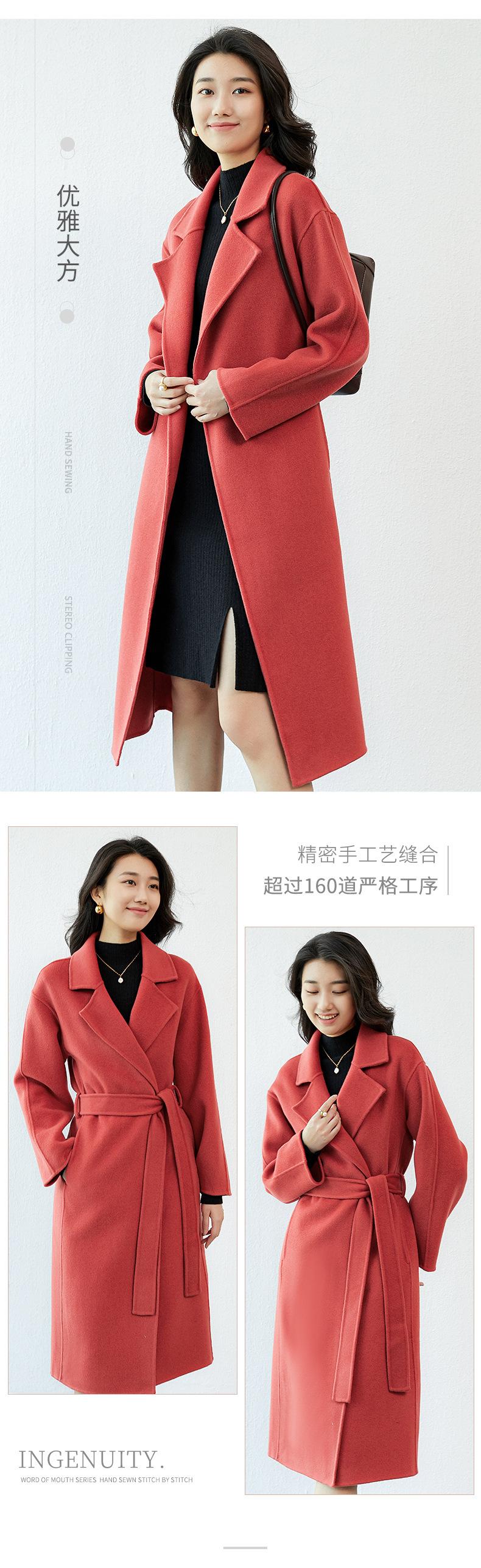 Invierno Nuevo Abrigo de Lana de Doble Vista Largo con Cordones Sobre la Rodilla Cuello Sastre Moderno Casual Elegante Chaqueta para Viajar