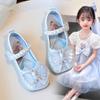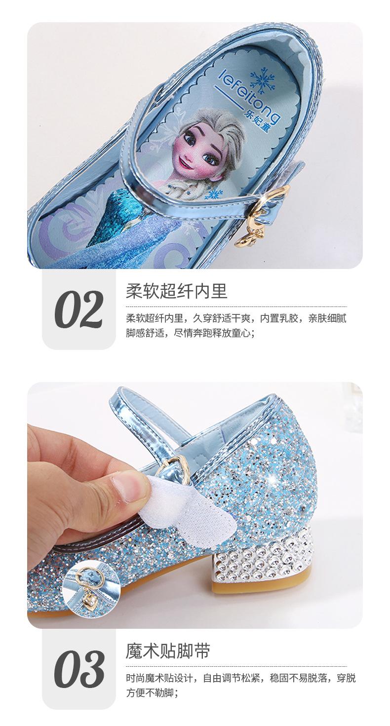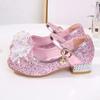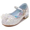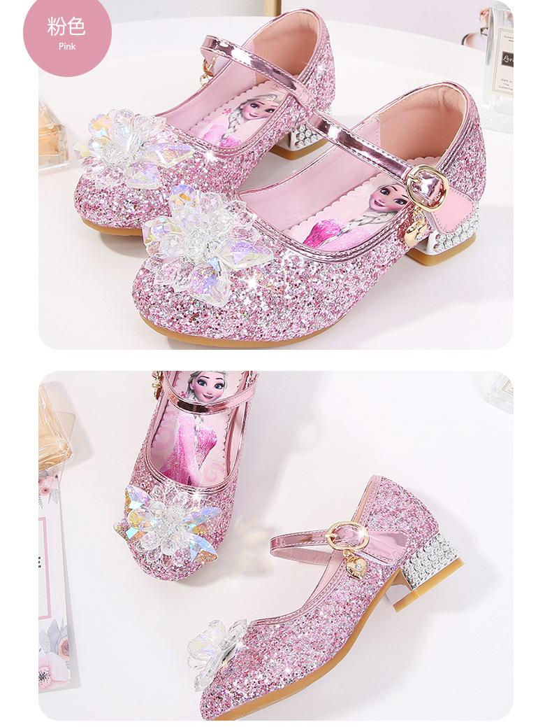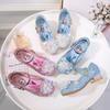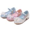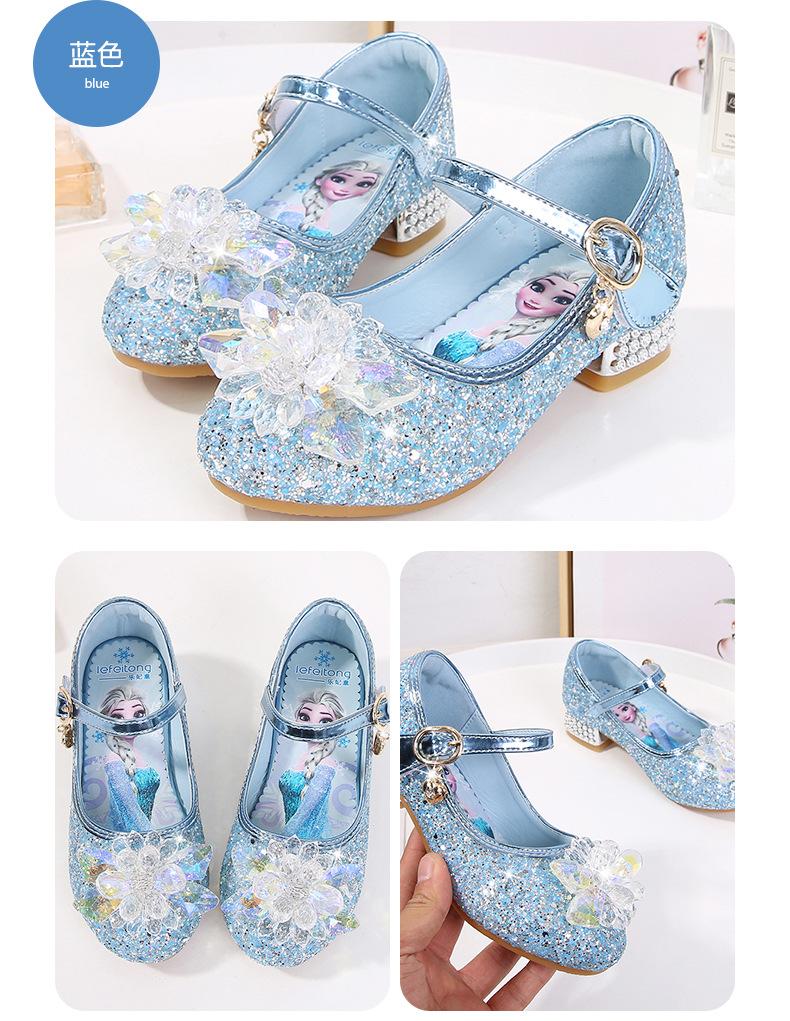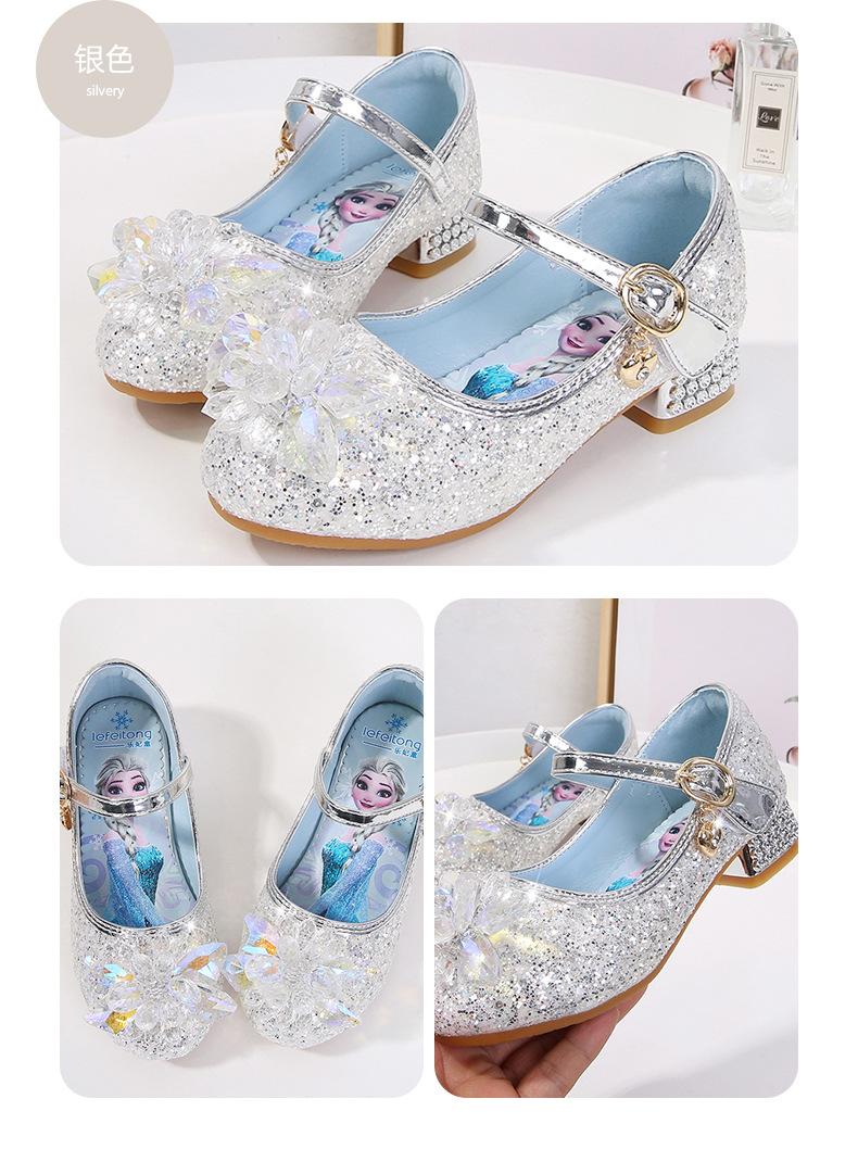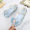 Zapatos de princesa de cristal de moda para niña pequeña, zapatos de baile de espectáculo, zapatos de tacón grueso para niña, zapatos de princesa con lentejuelas y velcro de Elsa