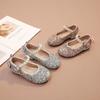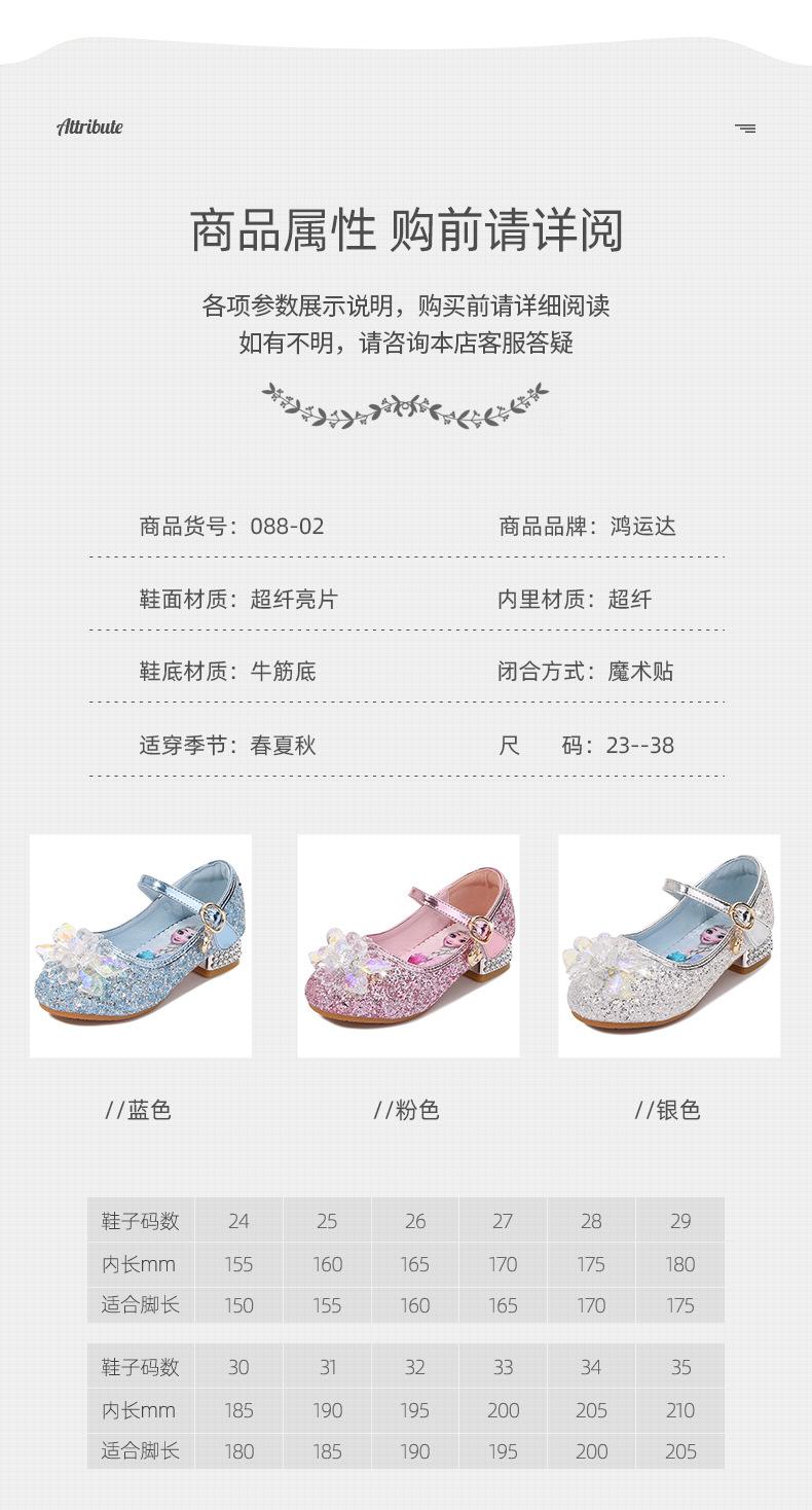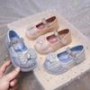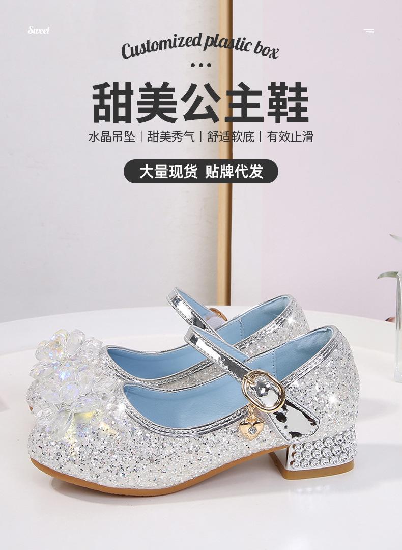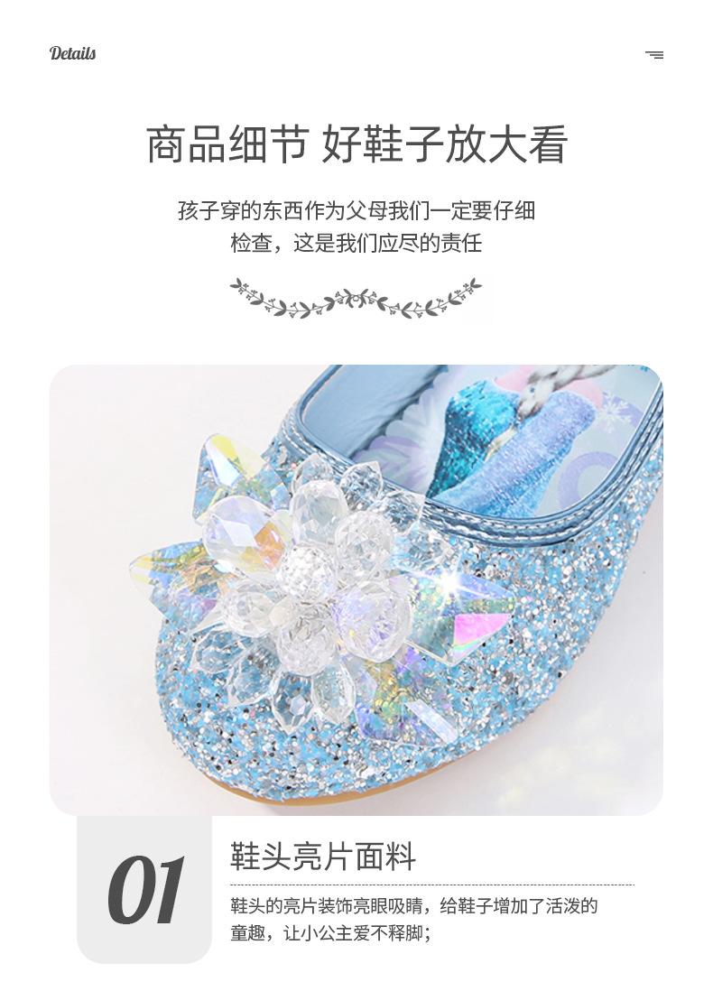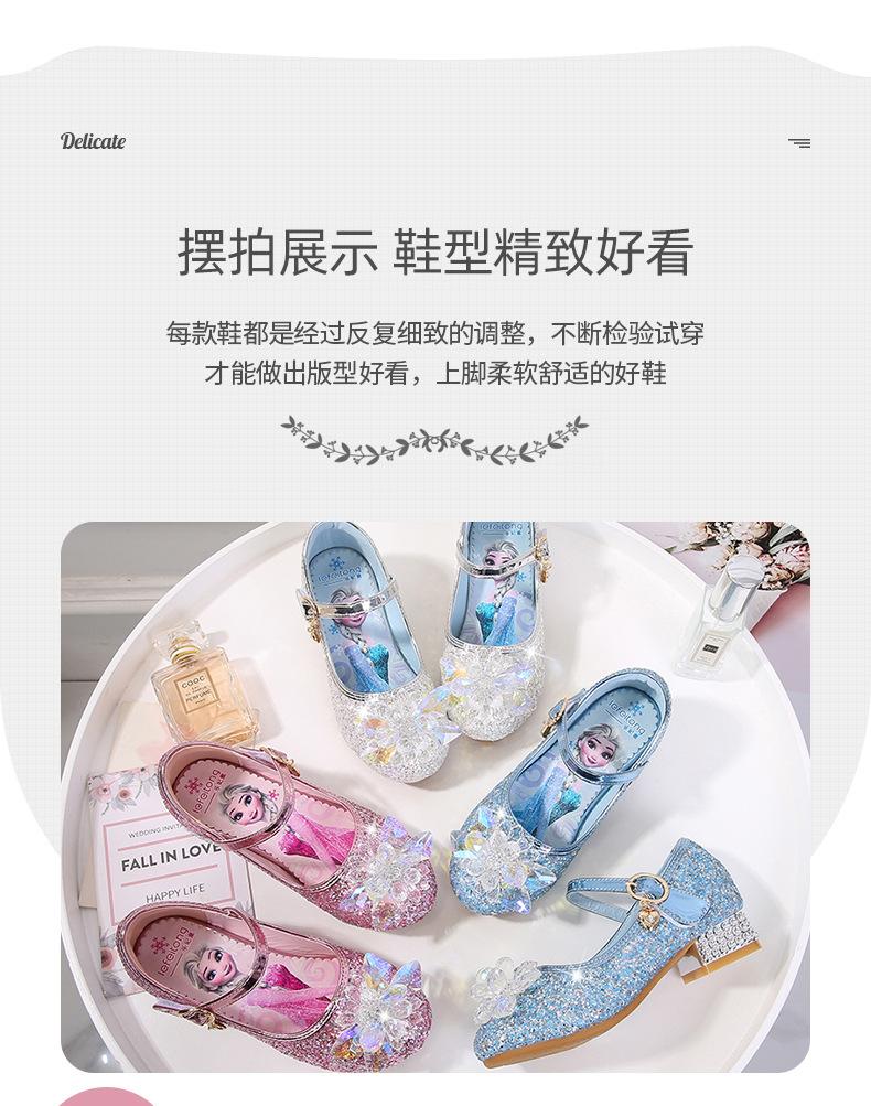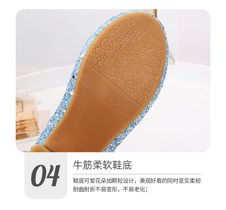 Zapatos de princesa de cristal de moda para niña pequeña, zapatos de baile de espectáculo, zapatos de tacón grueso para niña, zapatos de princesa con lentejuelas y velcro de Elsa