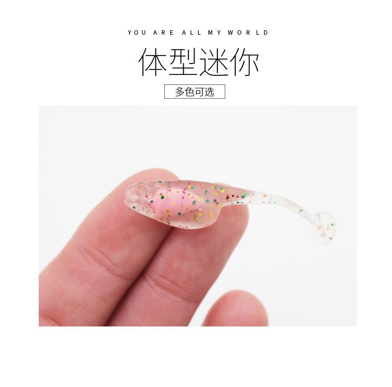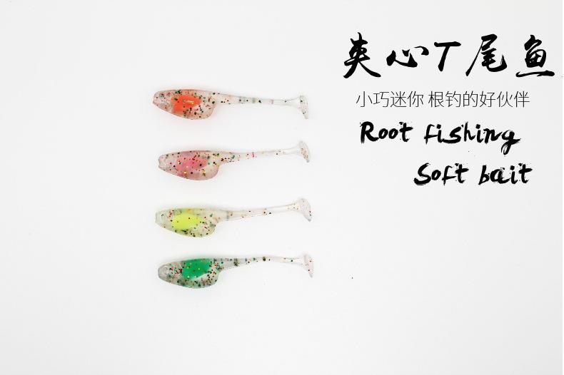 Cebo de luya para pesca de raíces pequeñas transfronterizas, cebo flotante de agua dulce, cebo blando tipo sándwich TPE, cebo falso con cola en T, cebo falso para pesca en el mar, venta al por mayor
