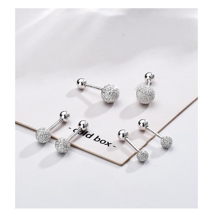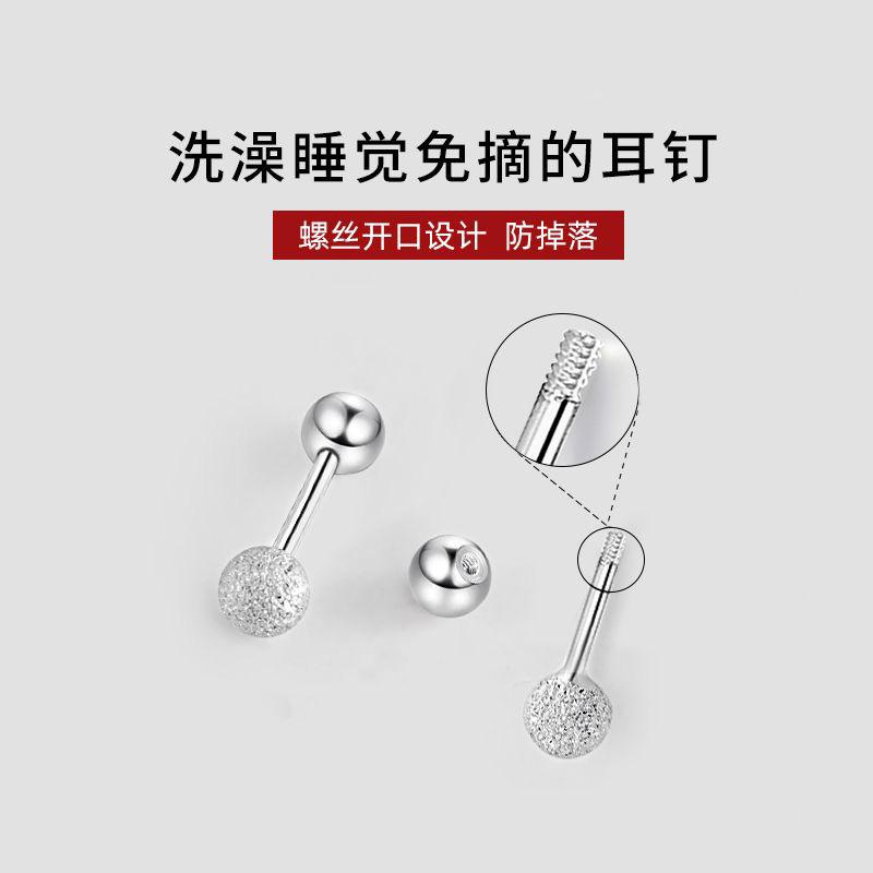 Pendientes de plata S925 con forma de oreja, con diseño de clavos esmerilados, con hebilla de tornillo para mujer, con doble cabeza, para dormir y sin dolor.