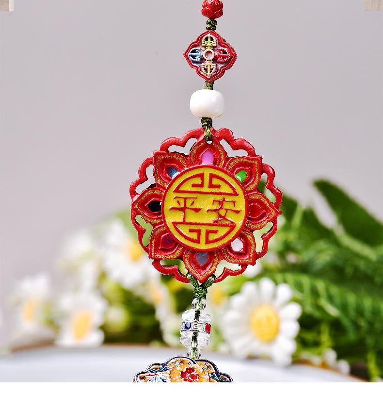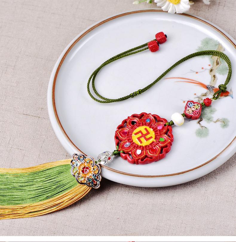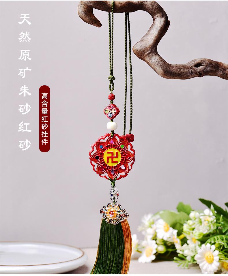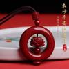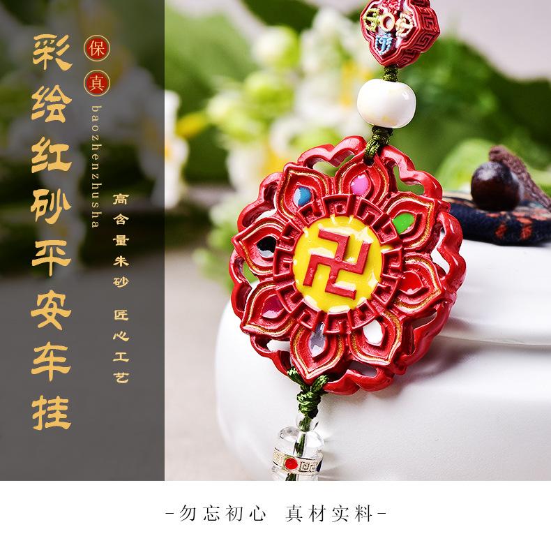 Colgante de Cinabrio de Mineral Bruto Natural con un Diseño de Loto Pintado con Arena Roja para Viajes Seguros
