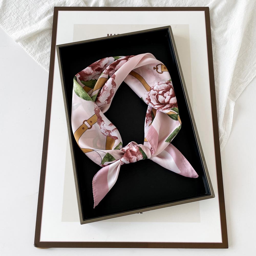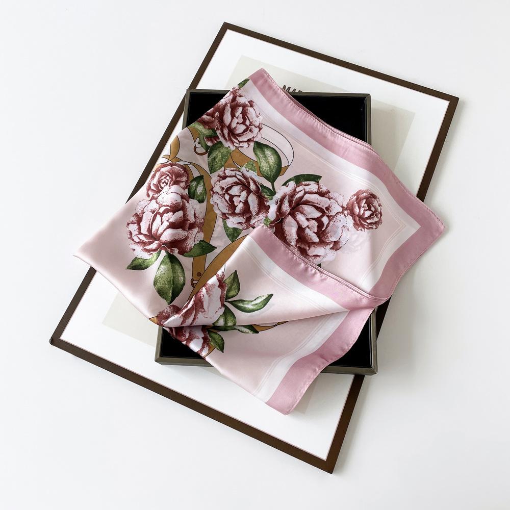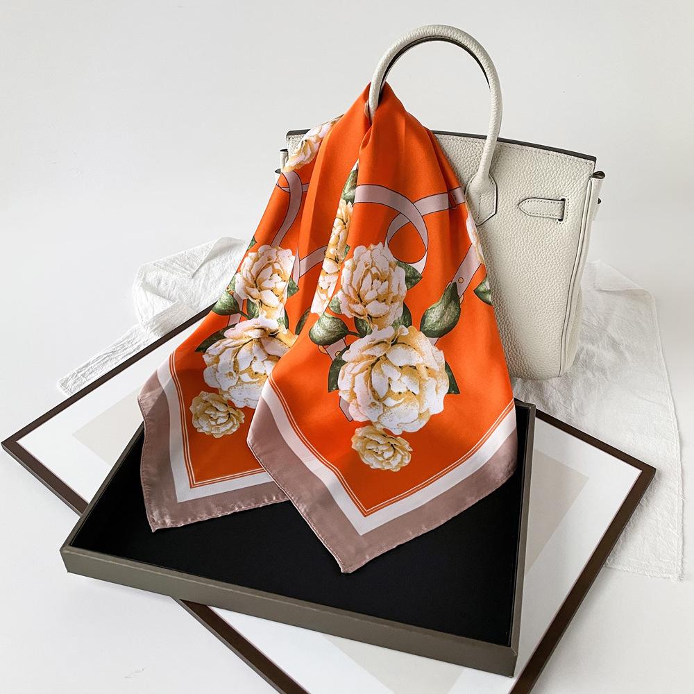 Nuevo Pañuelo de Flores de Seda Imitación Satén para Mujer Estampado Colorido de Flores Pañuelo Cuadrado Pequeño Delgado Pañuelo para la Cabeza Banda para el Cabello Venta al por Mayor