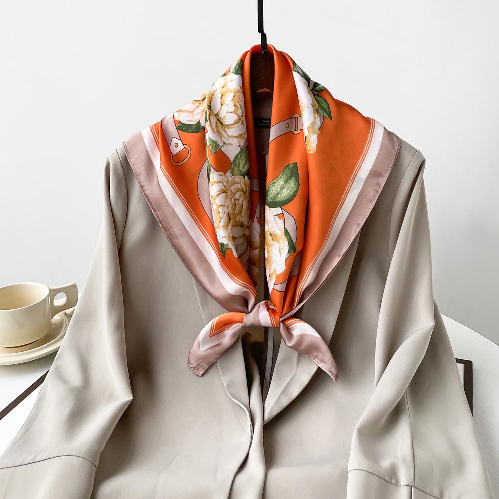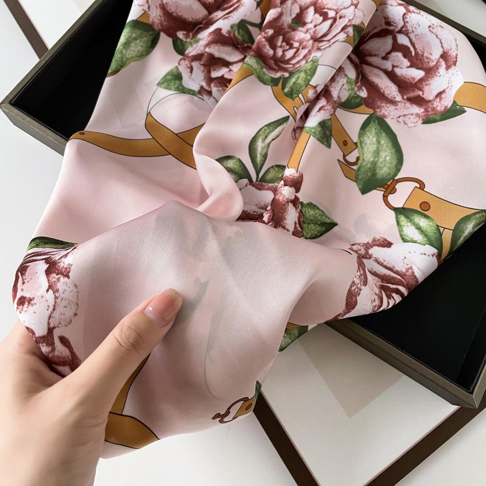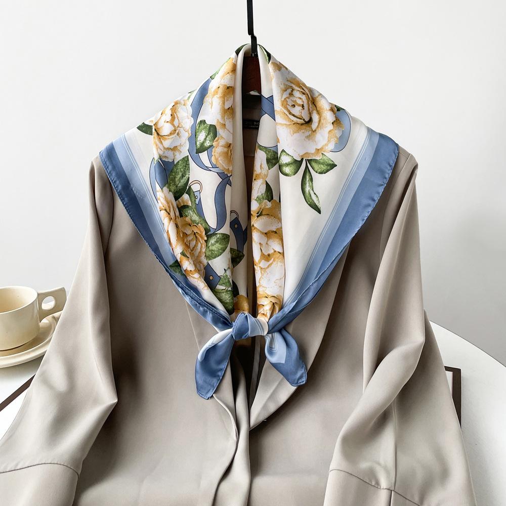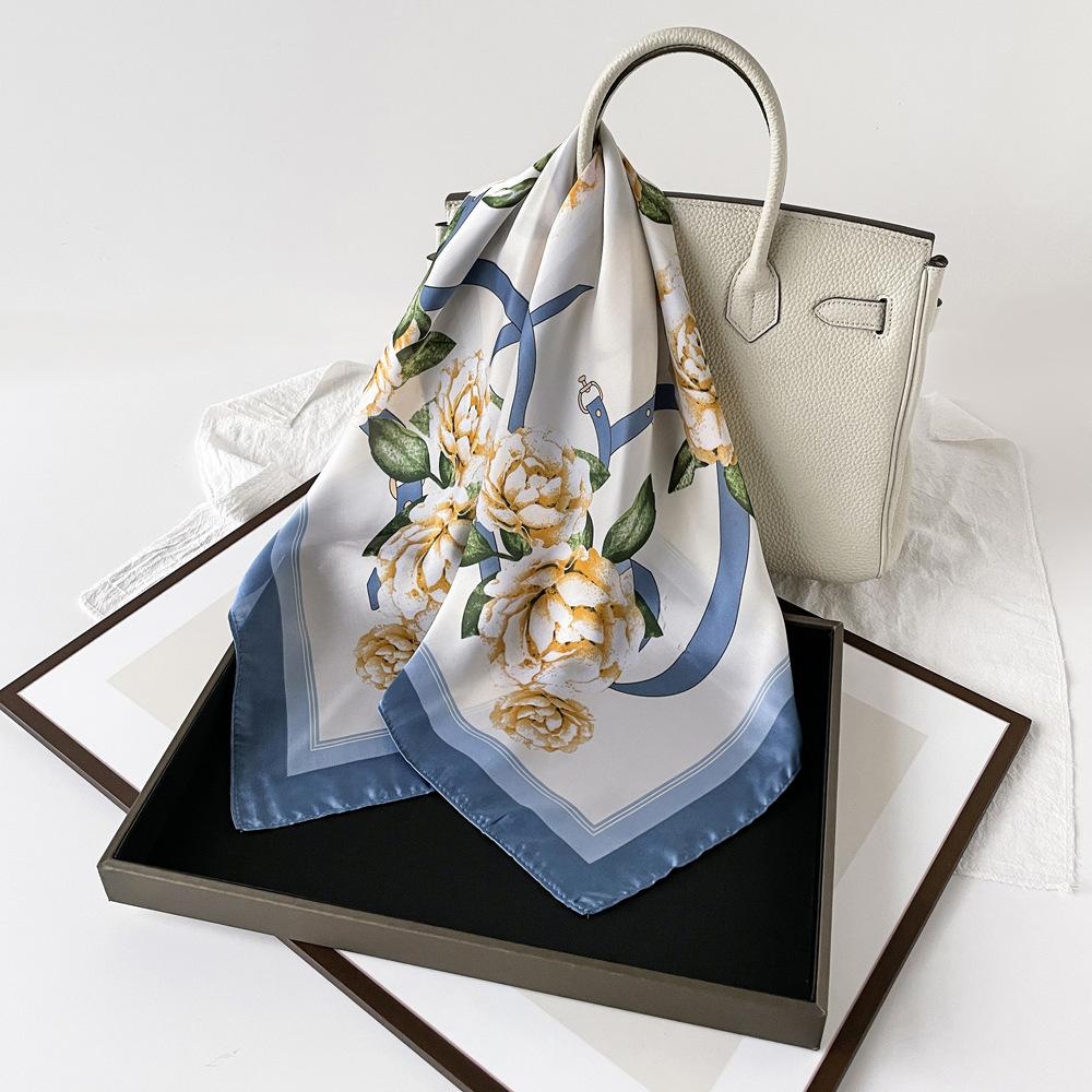 Nuevo Pañuelo de Flores de Seda Imitación Satén para Mujer Estampado Colorido de Flores Pañuelo Cuadrado Pequeño Delgado Pañuelo para la Cabeza Banda para el Cabello Venta al por Mayor