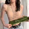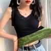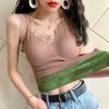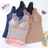 Chaleco térmico de encaje con cuello en V para mujer, forrado de vellón, con almohadilla en el pecho, corte ajustado, elástico, interior grueso, con tirantes, camisa básica