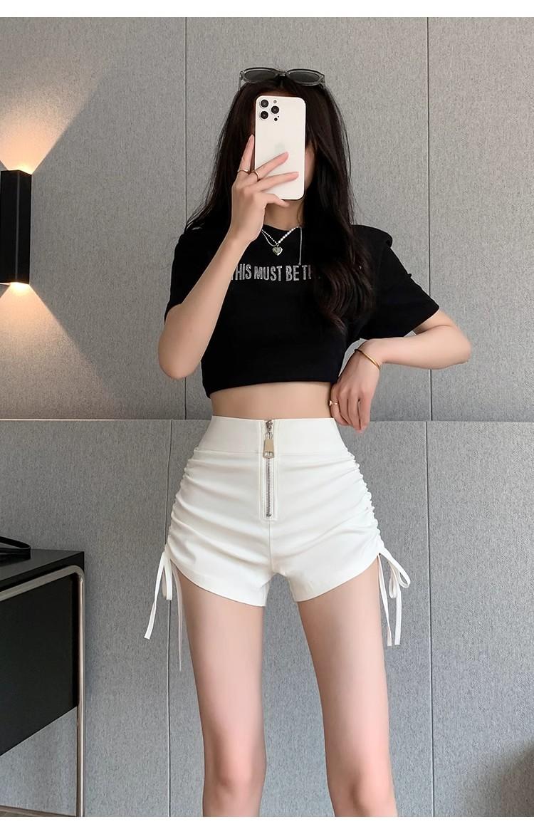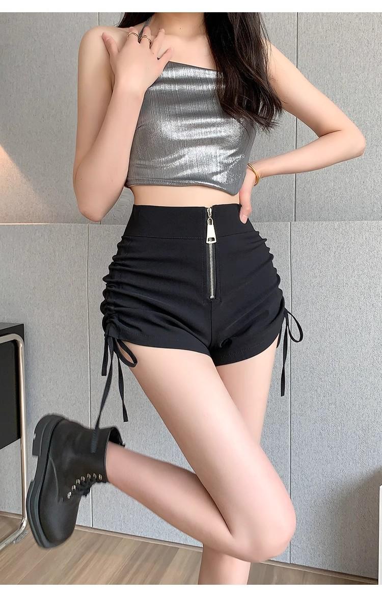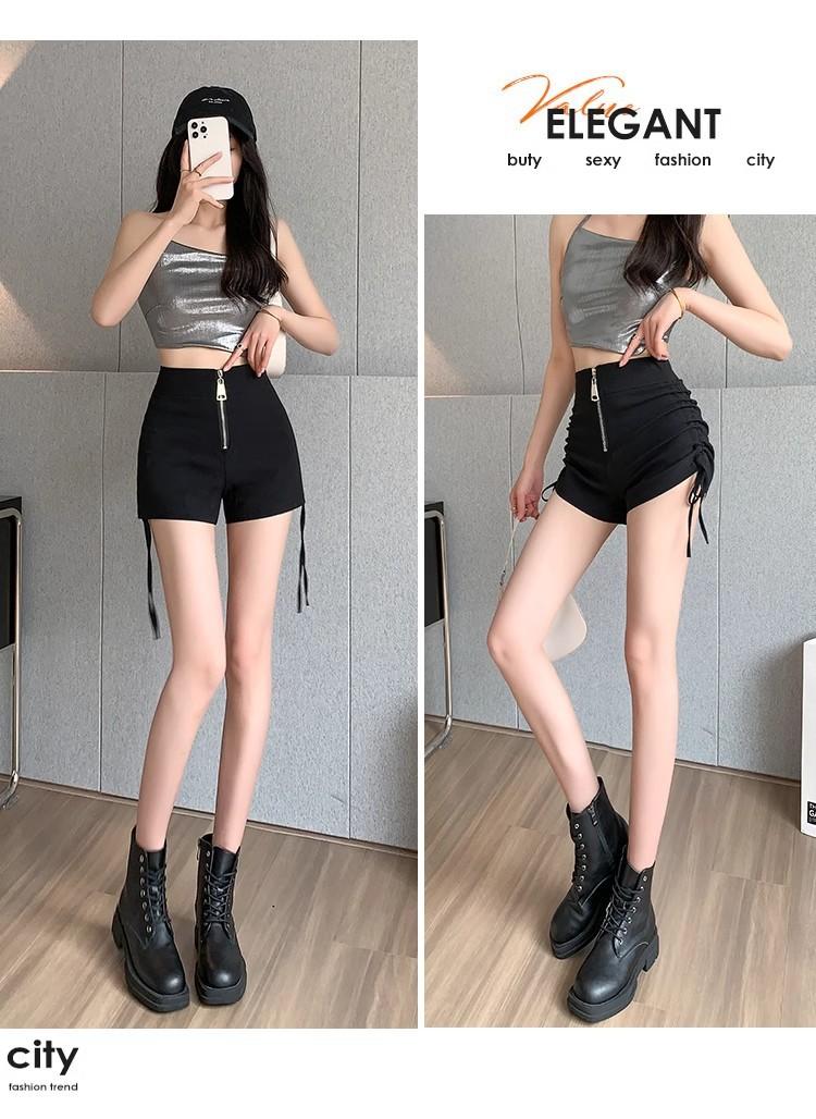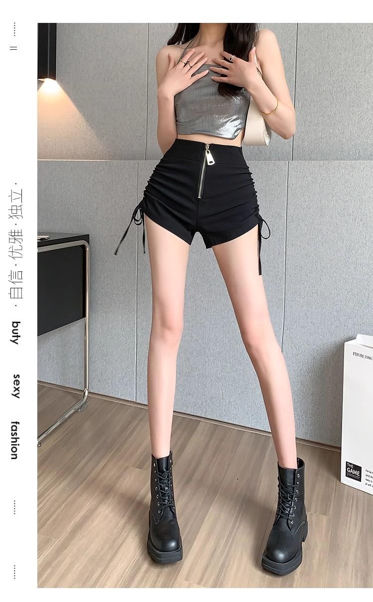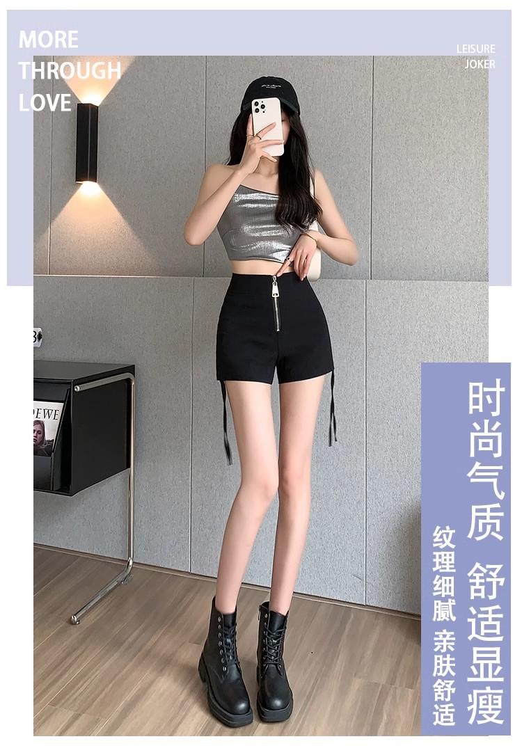 Pantalones anchos de talla grande para chica gordita, novedad de verano 2024, pantalones cortos adelgazantes de cintura alta con cremallera, pantalones cortos casuales negros