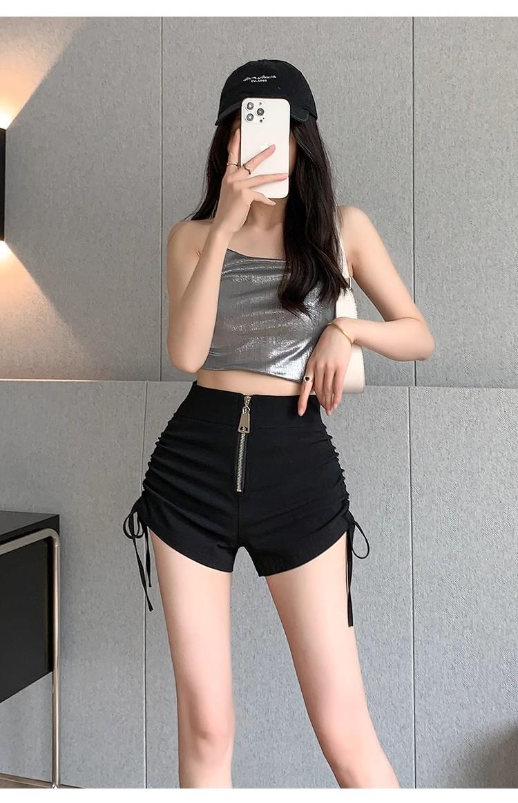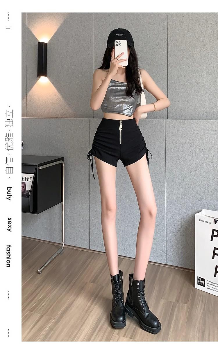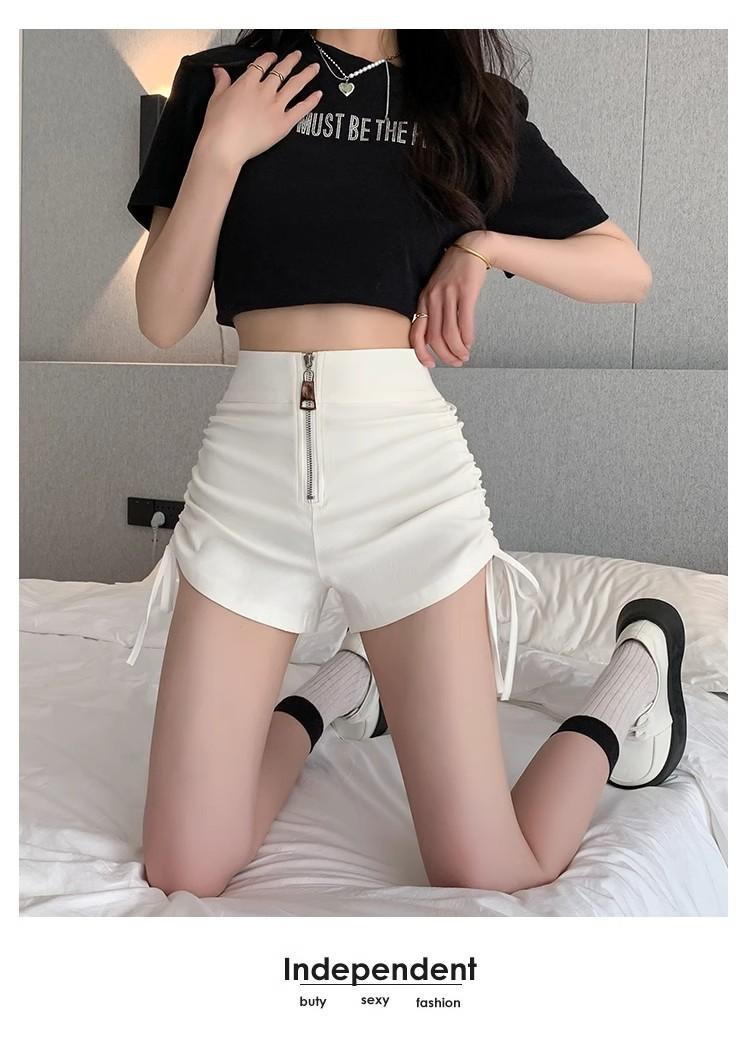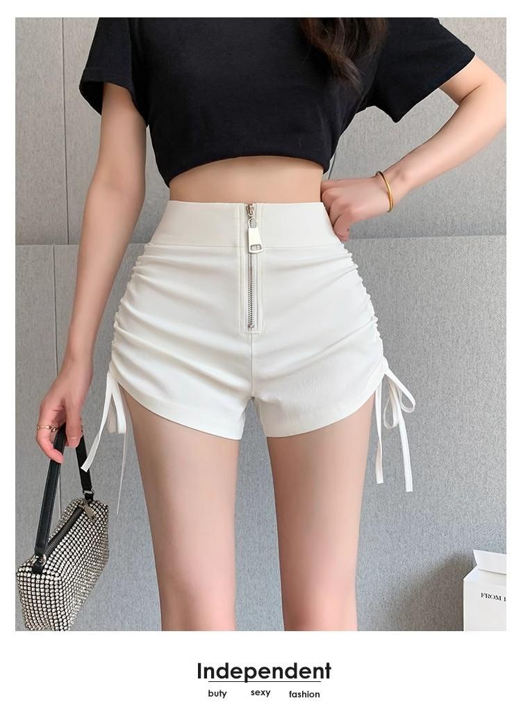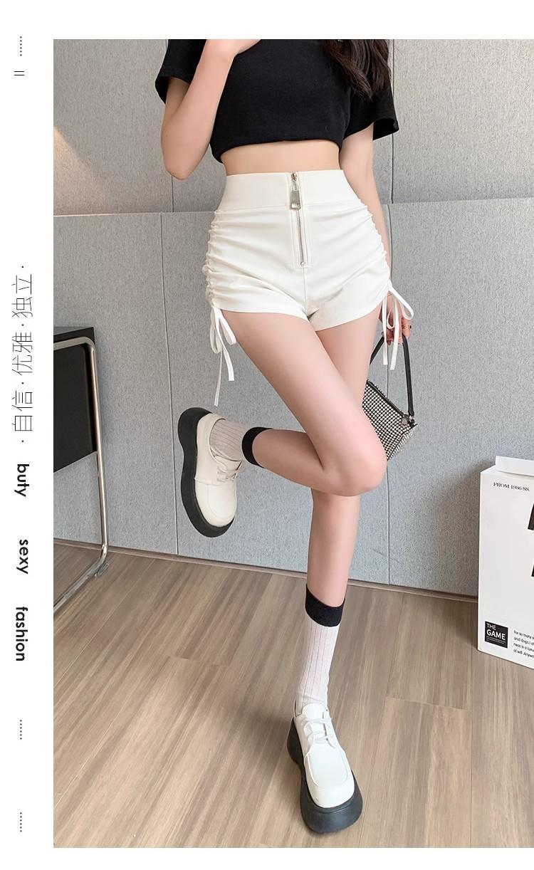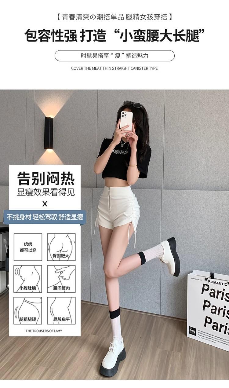Pantalones anchos de talla grande para chica gordita, novedad de verano 2024, pantalones cortos adelgazantes de cintura alta con cremallera, pantalones cortos casuales negros