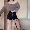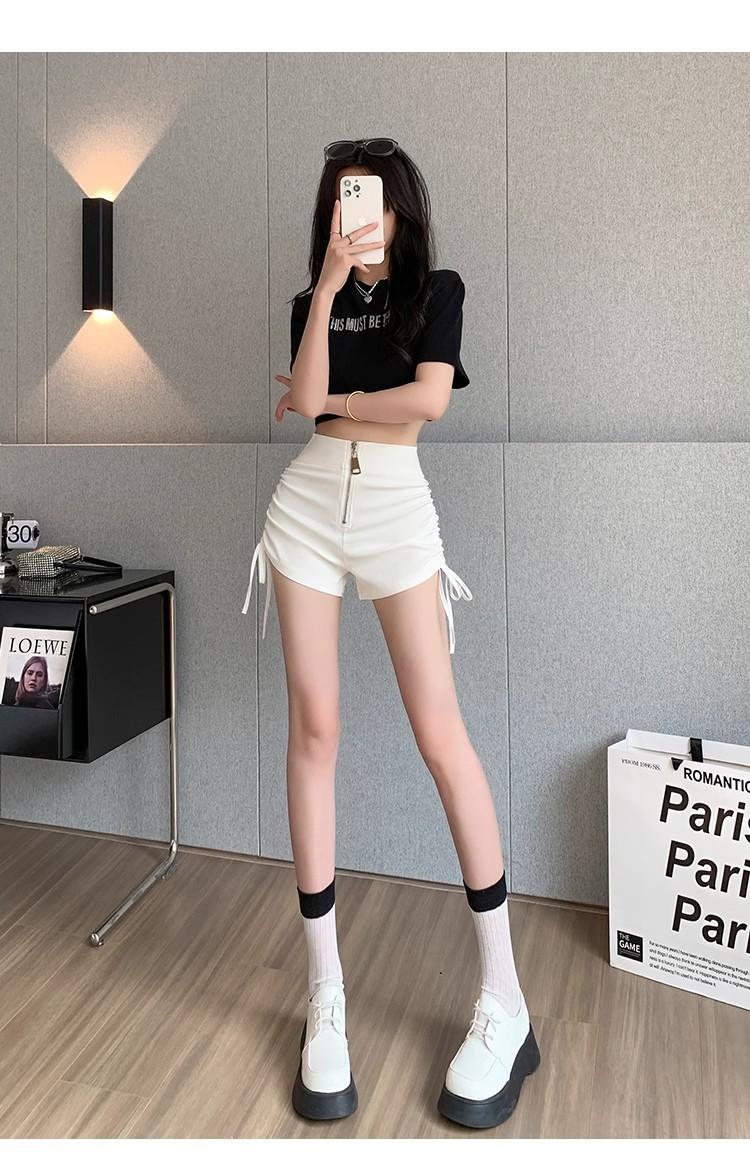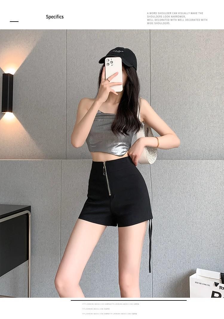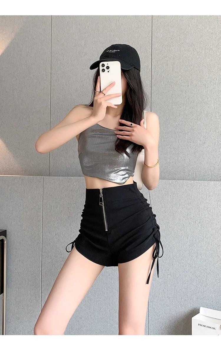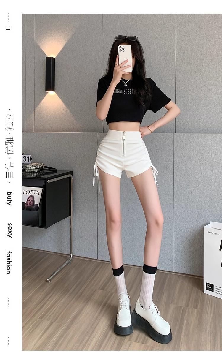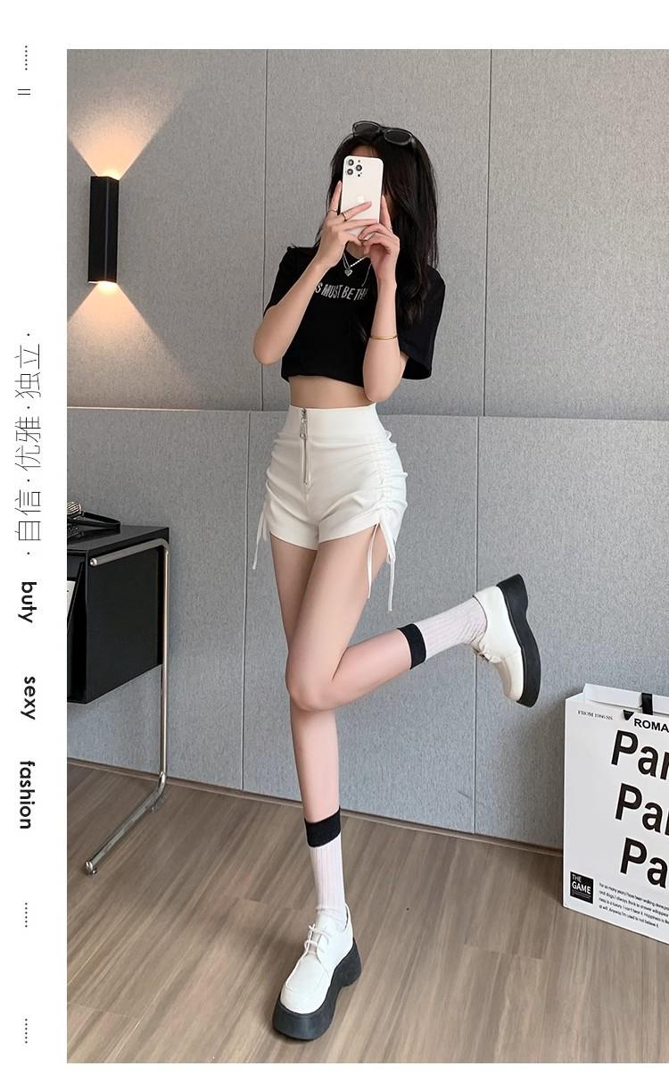 Pantalones anchos de talla grande para chica gordita, novedad de verano 2024, pantalones cortos adelgazantes de cintura alta con cremallera, pantalones cortos casuales negros