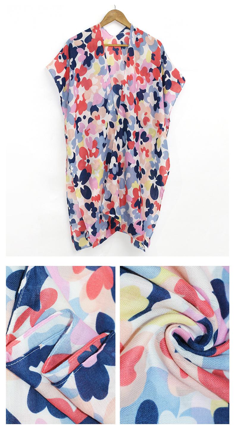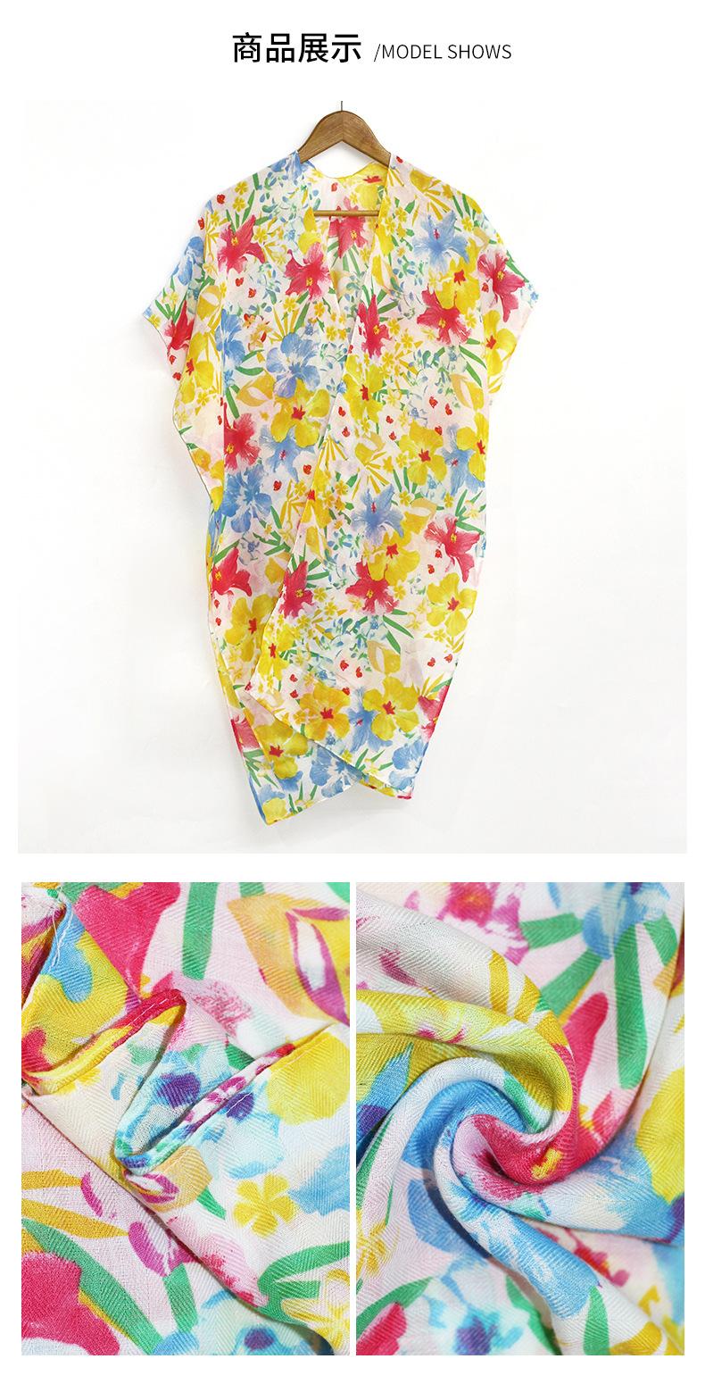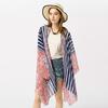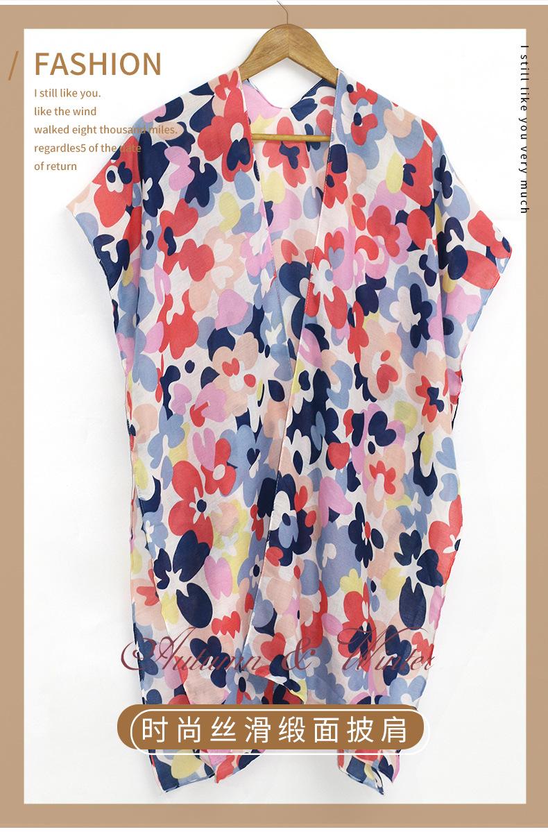 Toalla de playa romántica de color contrastante con flores para mujer 2023 primavera y verano nueva delgada chal de protección solar para vacaciones junto al mar al por mayor