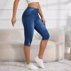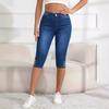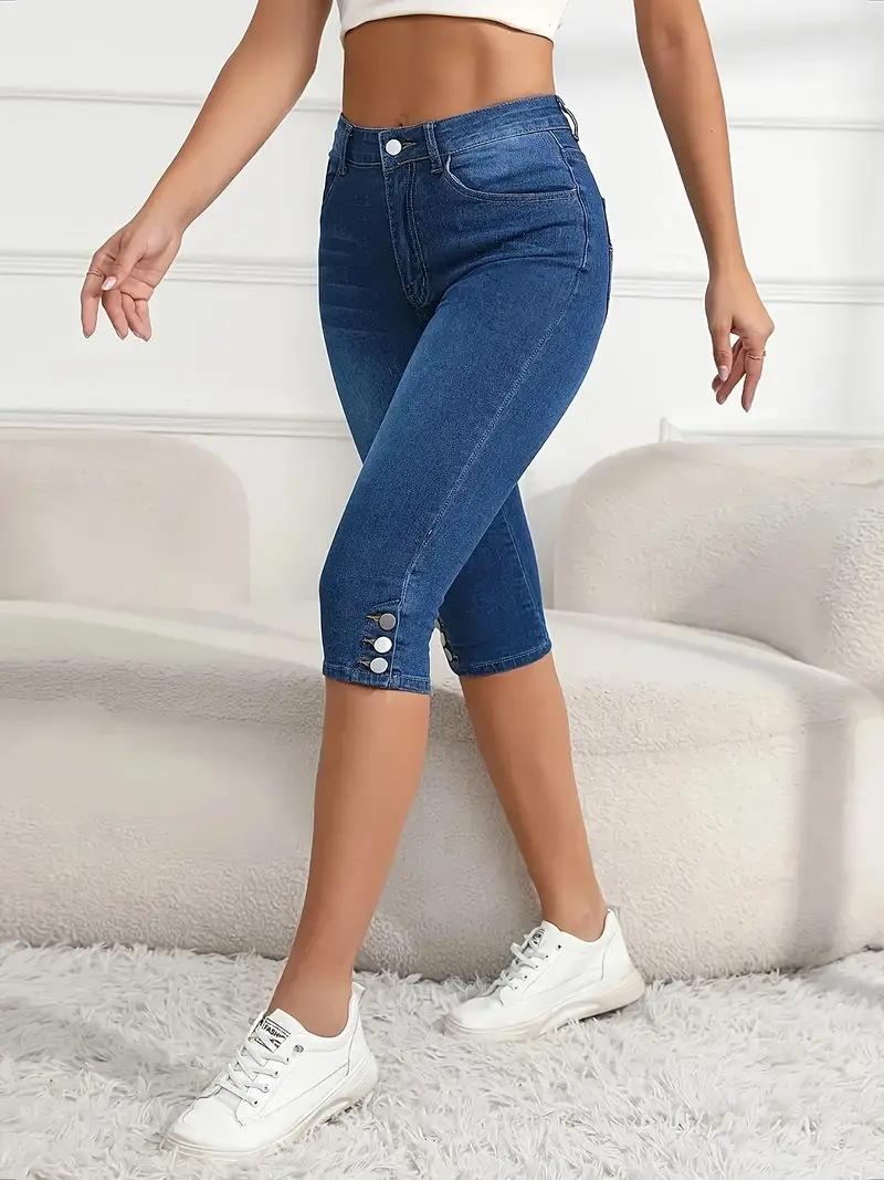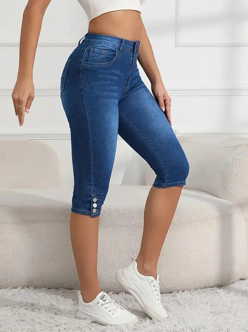 Jeans de Verano para Mujer de Talla Grande con Diseño Abotonado Color Sólido Elásticos Moda Urbana Cintura Alta Casual Ajustados Pantalones Cinco Cuartos
