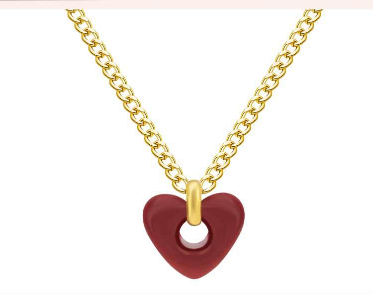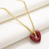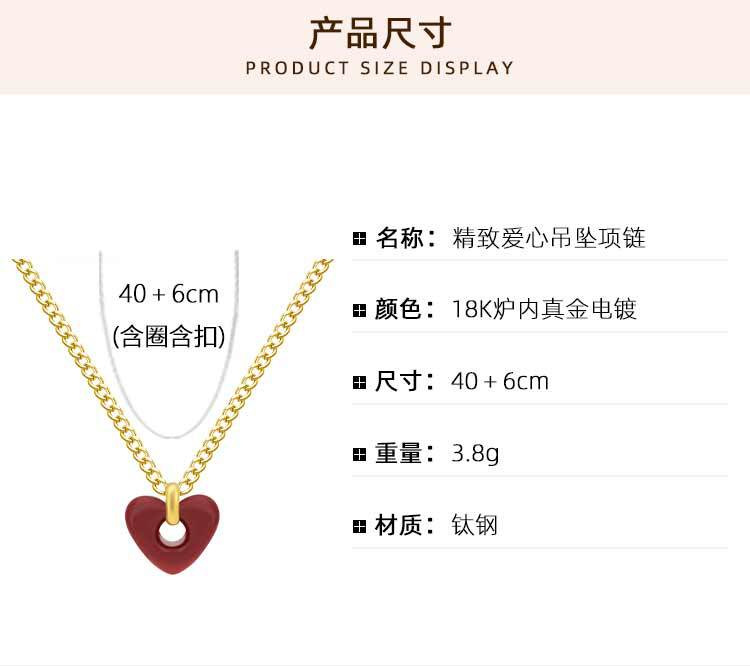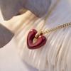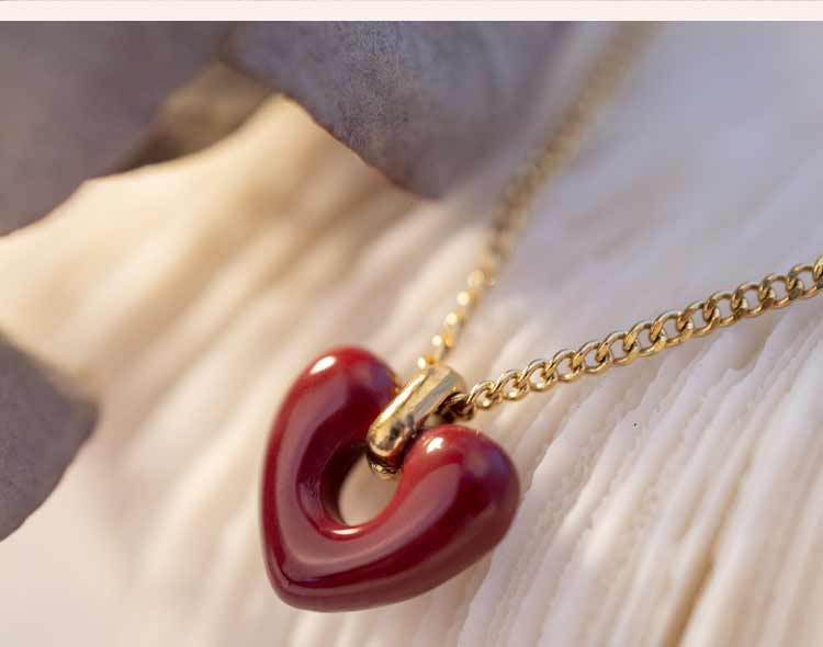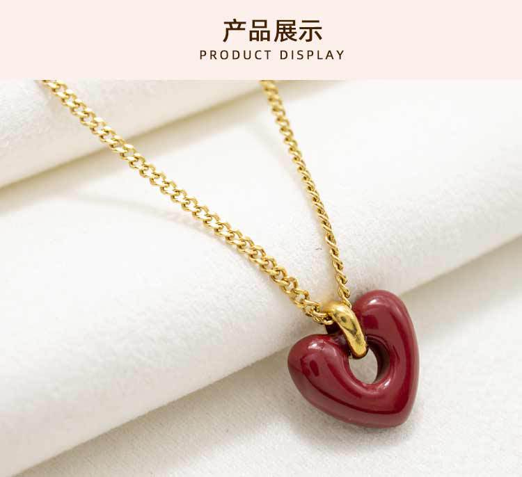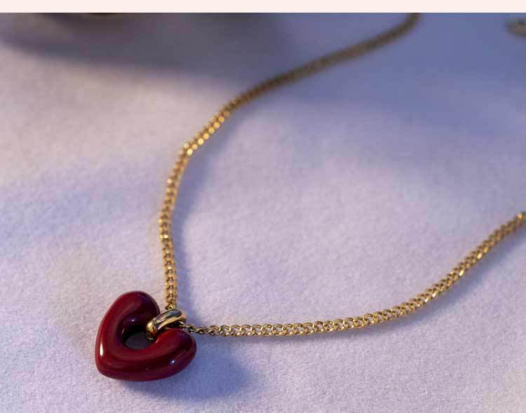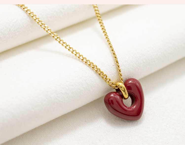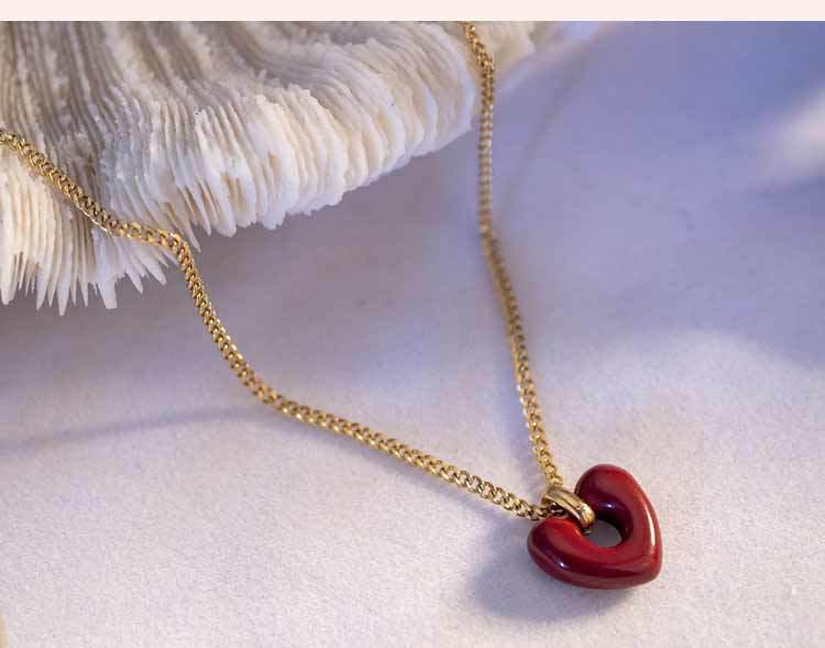 Collar con colgante de corazón rojo de red para mujer, de acero de titanio, estilo retro, bonito y dulce, con forma de corazón, cadena de clavícula de acero inoxidable a juego.