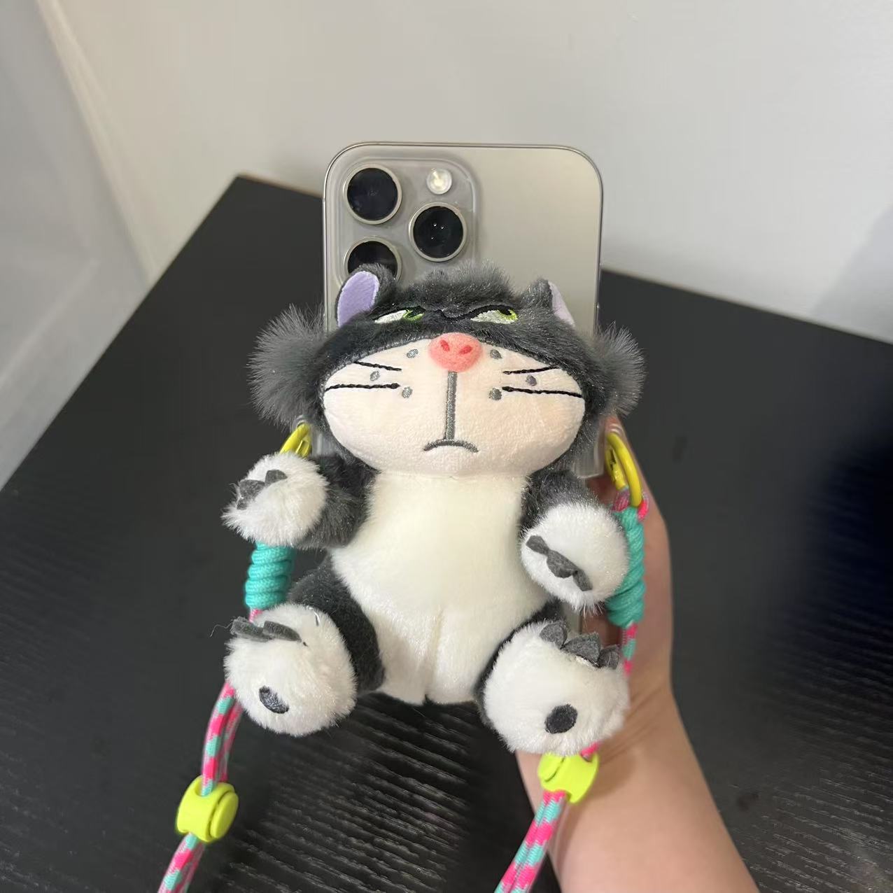 Dibujo animado Lucy gato francés clip trasero para teléfono móvil cadena bandolera cordón puede volver Muñeca Muñeca ajustable portátil regalo