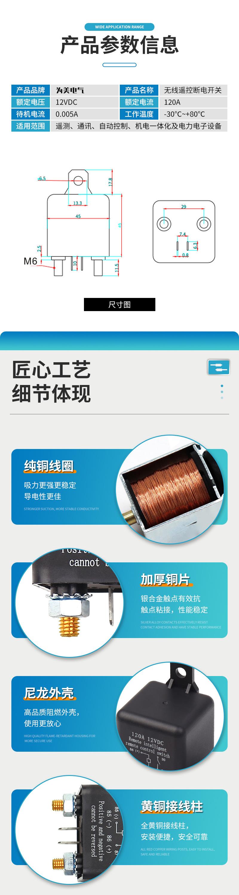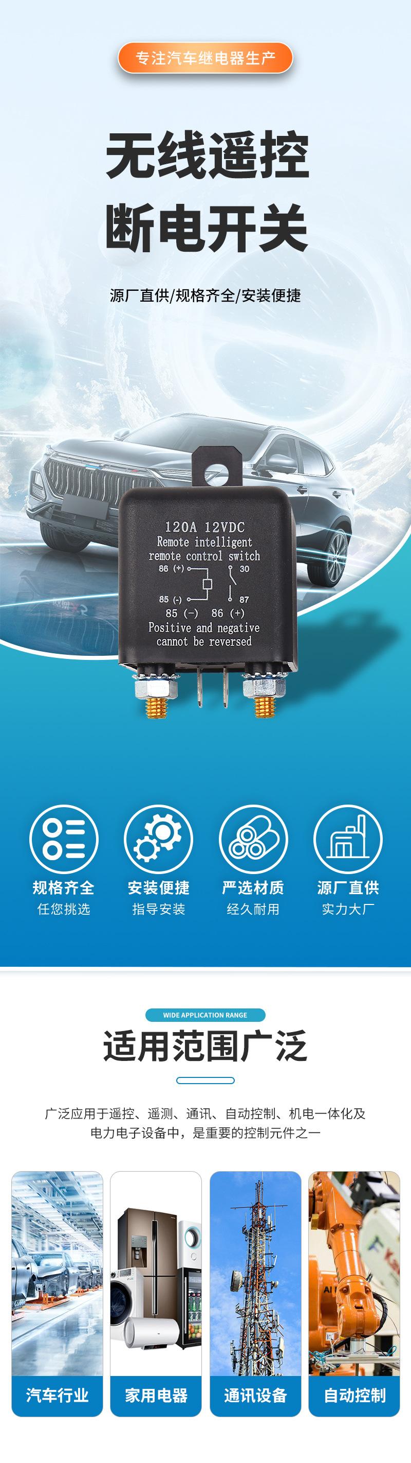 Interruptor de control remoto inalámbrico 12 V CC 120 A, protección de energía remota, interruptor de control de falla de energía, relé de automóvil