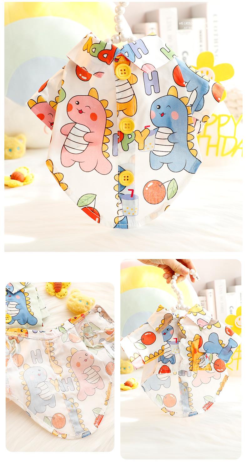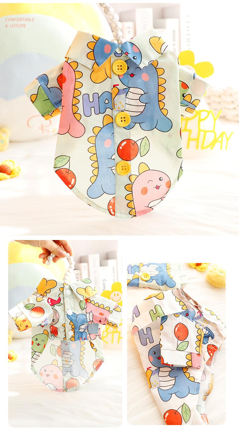 Ropa para perros primavera/verano, camiseta fina con diseño de gato, dinosaurio de dibujos animados, perro pequeño y fresco, osito de peluche para mascota 5684