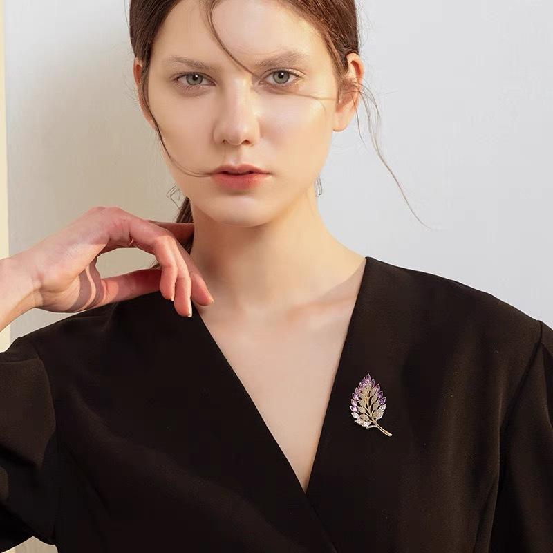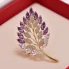 Broche de hoja violeta con degradado retro de moda para mujer, ramillete de hojas con diamantes de imitación huecos, elegante, combina con todo, ropa de moda