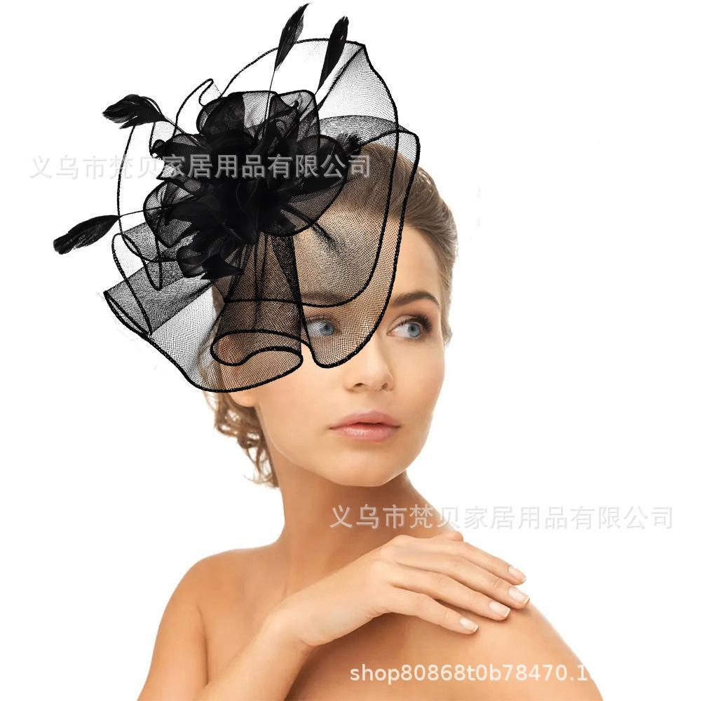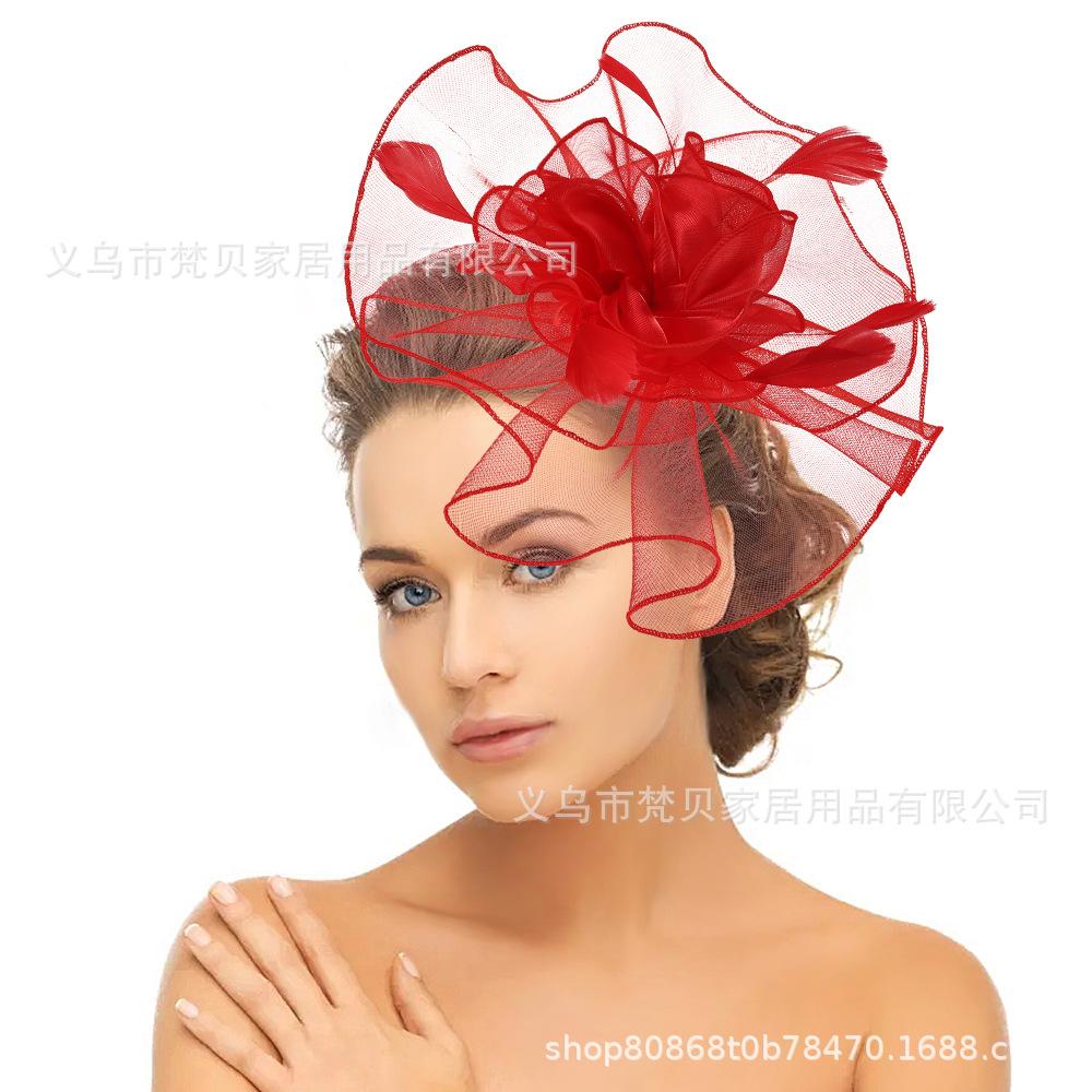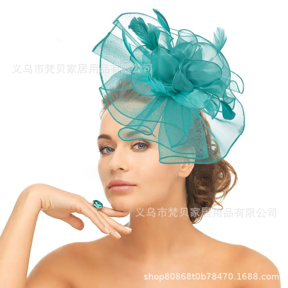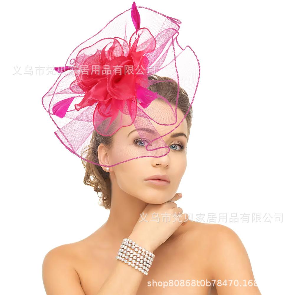 AliExpress Transfronterizo Flor para la Cabeza de Mujer Día de Carreras de Caballos Vestido de Disfraz Tocado Pluma Exagerada Iglesia Boda Nupcial Adorno Accesorios para el Cabello