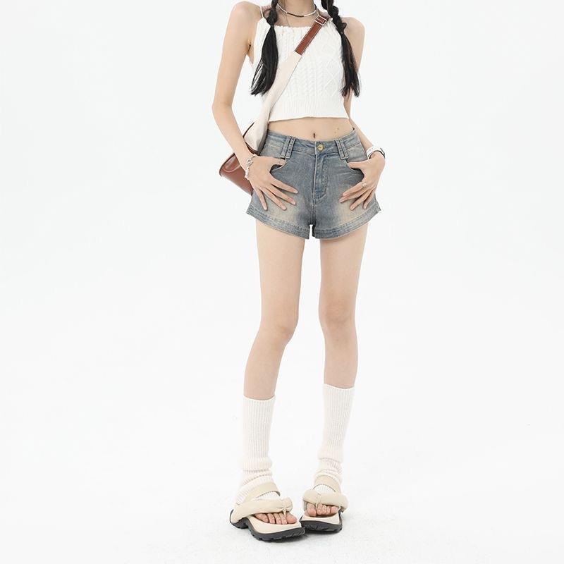 2023 Nuevos pantalones cortos vaqueros elásticos retro de estilo americano para mujer, de verano, de cintura alta, sexys, ajustados a la cadera