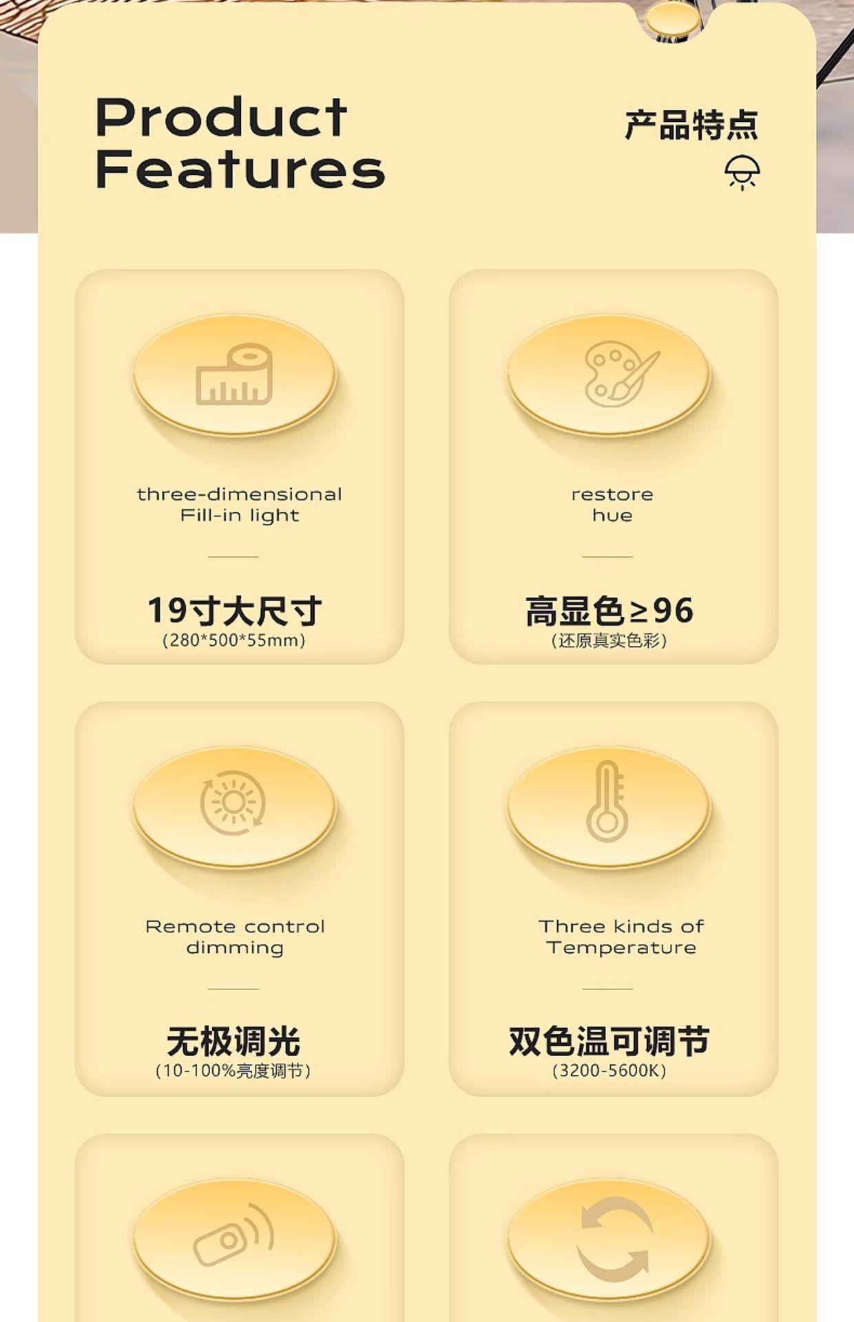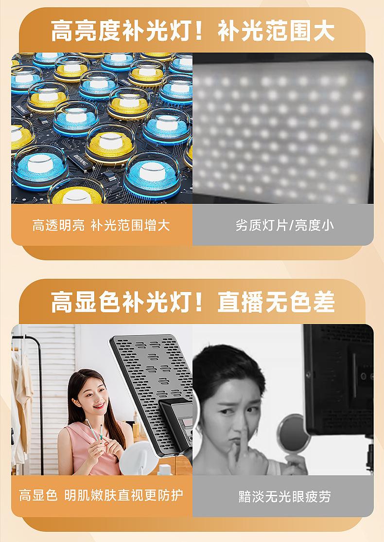 Venta al por mayor Beiyang Transmisión en vivo Cabello Luz suave Profesional Plano Luz de relleno para transmisión en vivo Ancla Escritorio Iluminación cenital Luz
