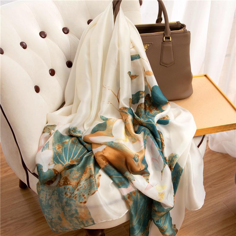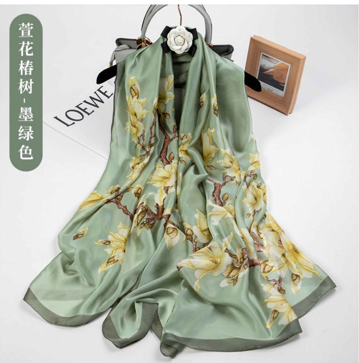 Bufanda de seda 2024 nueva para mujer primavera y otoño regalo para mamá mediana edad y anciana chal estilo nacional bufanda de seda artificial delgada
