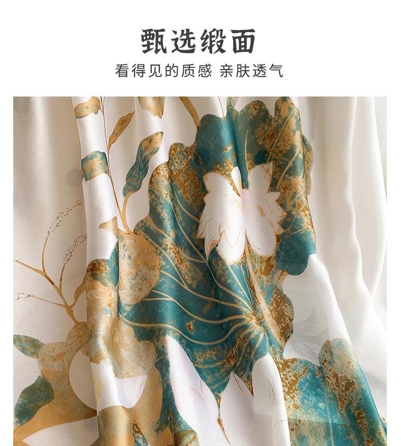Lotus branches and vines-beige (popular and popular), Light Dream lotus pond-light blue, Ink Printing-white an...