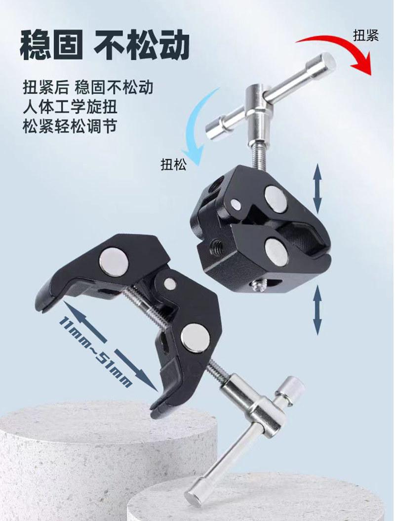 |  Soporte para transmisión en vivo de selfies para teléfono móvil, trípode de escritorio, trípode para cámara SLR, proyector, mini soporte de metal ¥7.00  Compre ya |  Placa de liberación rápida 132C para cámara SLR, adecuada para el estabilizador de cardán DJI Zhiyun, placa de liberación rápida tipo L para fotografía vertical. ¥15.00  Compre ya |  Abrazadera fuerte multifuncional, abrazadera de guisante, cámara micro SLR, fotografía, video, luz de relleno, monitor, abrazadera de cangrejo de mano mágica ¥43.00  Compre ya |  Placa de liberación rápida Hummingbird, asiento de liberación rápida, teléfono móvil, micro cámara individual, soporte para cámara deportiva GoPro, base, adaptador de metal ¥10.00  Compre ya | ||
